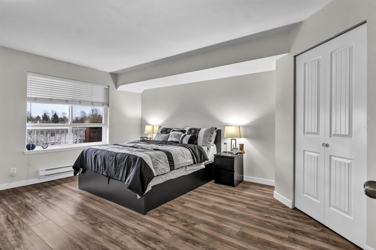 Spacious top-floor residence located on the quiet side of the building, steps away from Scott Road. This approximately 995 sqft unit features 2 bedrooms plus a den, along with 2 full washrooms. Enjoy a large balcony with a delightful view of green space to soak up the sun. The open floor plan encompasses a cozy living room, sizable master bedroom, and includes 2 side-by-side parking stalls, visitor parking, and recreational rooms. Other amenities include in-suite laundry and storage. Centrally situated within walking distance to various amenities, public transit, Gurudwara, Save-On-Foods, Walmart, restaurants, and schools. Rentals are permitted in this building. Schedule your private viewing.