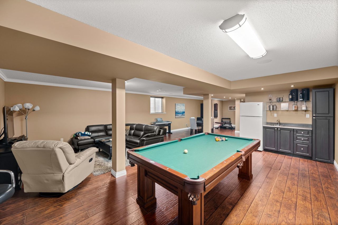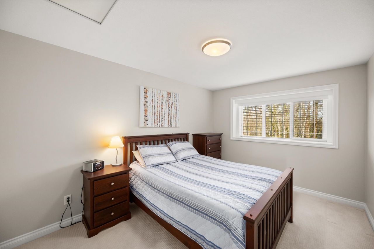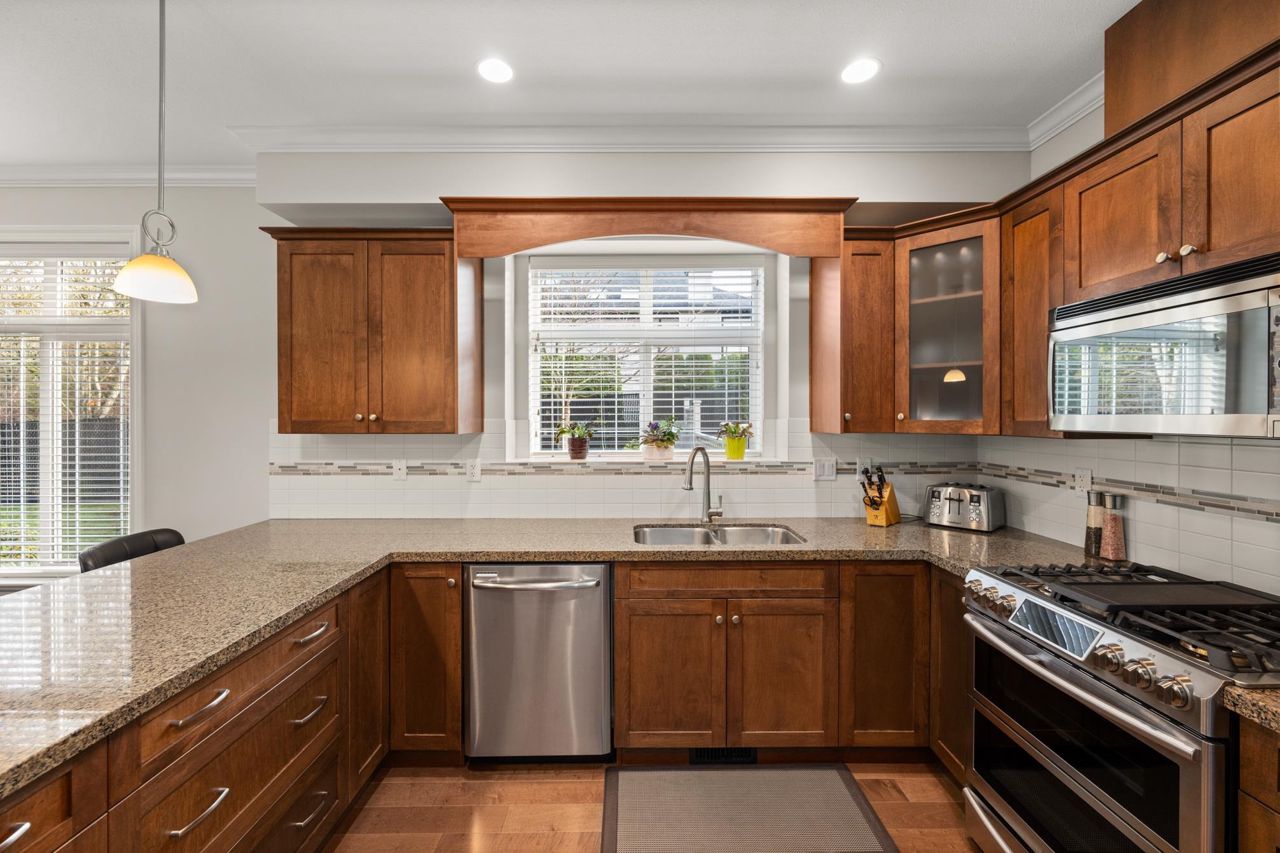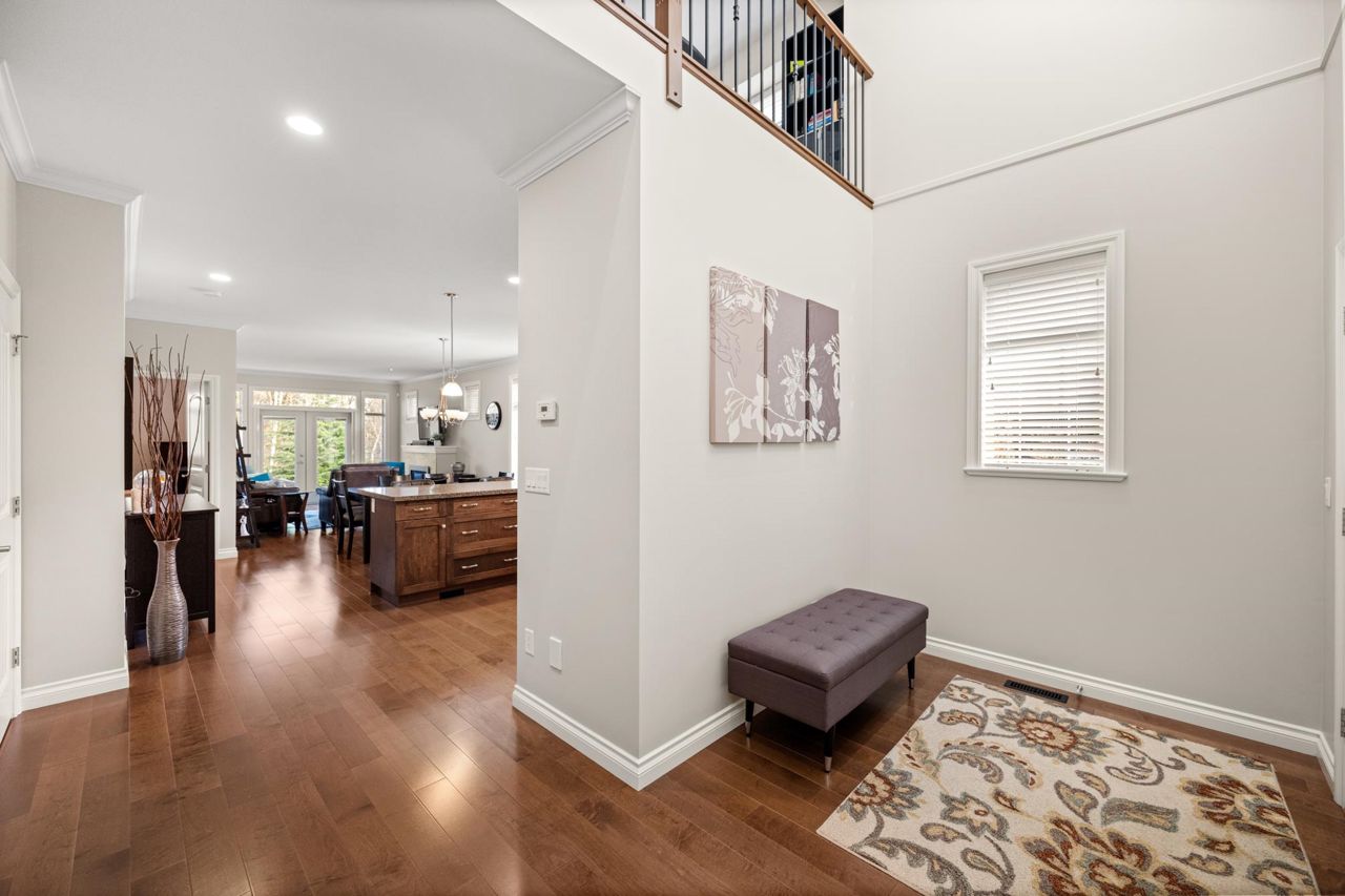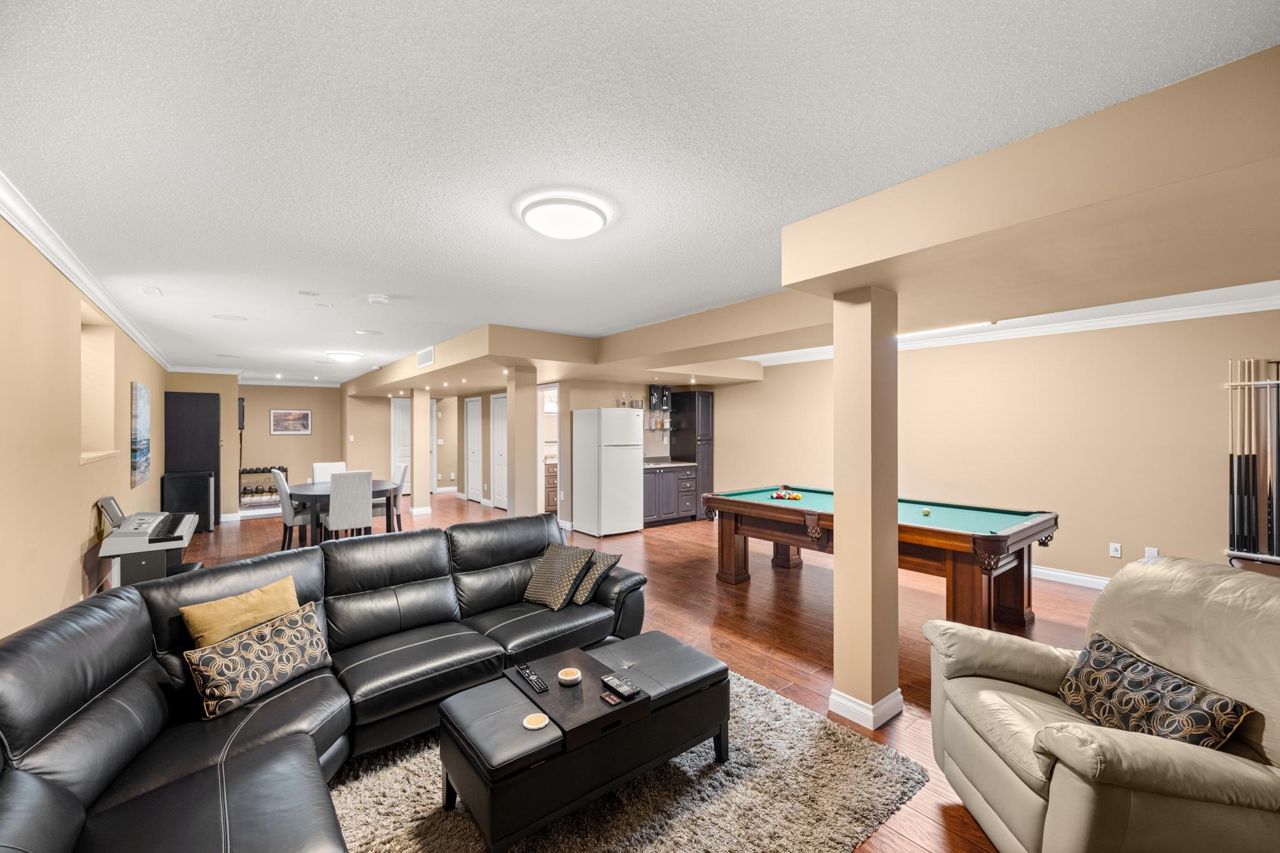 Executive end-unit townhome with a PRIMARY BEDROOM on the main floor in the prestigious 'Charlton' complex. Backs onto a serene protected greenbelt providing unparalleled privacy. Walk into an impressive 17’ high foyer before entering the beautiful open concept kitchen with wood cabinets, granite countertop & stainless-steel appliances & dual fuel range. Bright great room w/ gas fireplace & French doors w/ an incredibly private outlook. Exceptionally wide 50’ YARD fully fenced w/ large patio w/ 2 gas hook up & landscape lighting in a gorgeous setting. Upstairs are 2 large bedrooms + open concept den/home office. Fully finished basement w/ entertainment sized rec room down, wet bar & room for a pool table. Forced air natural gas heating & AC + electrostatic air cleaner. 4 PARKING SPOTS