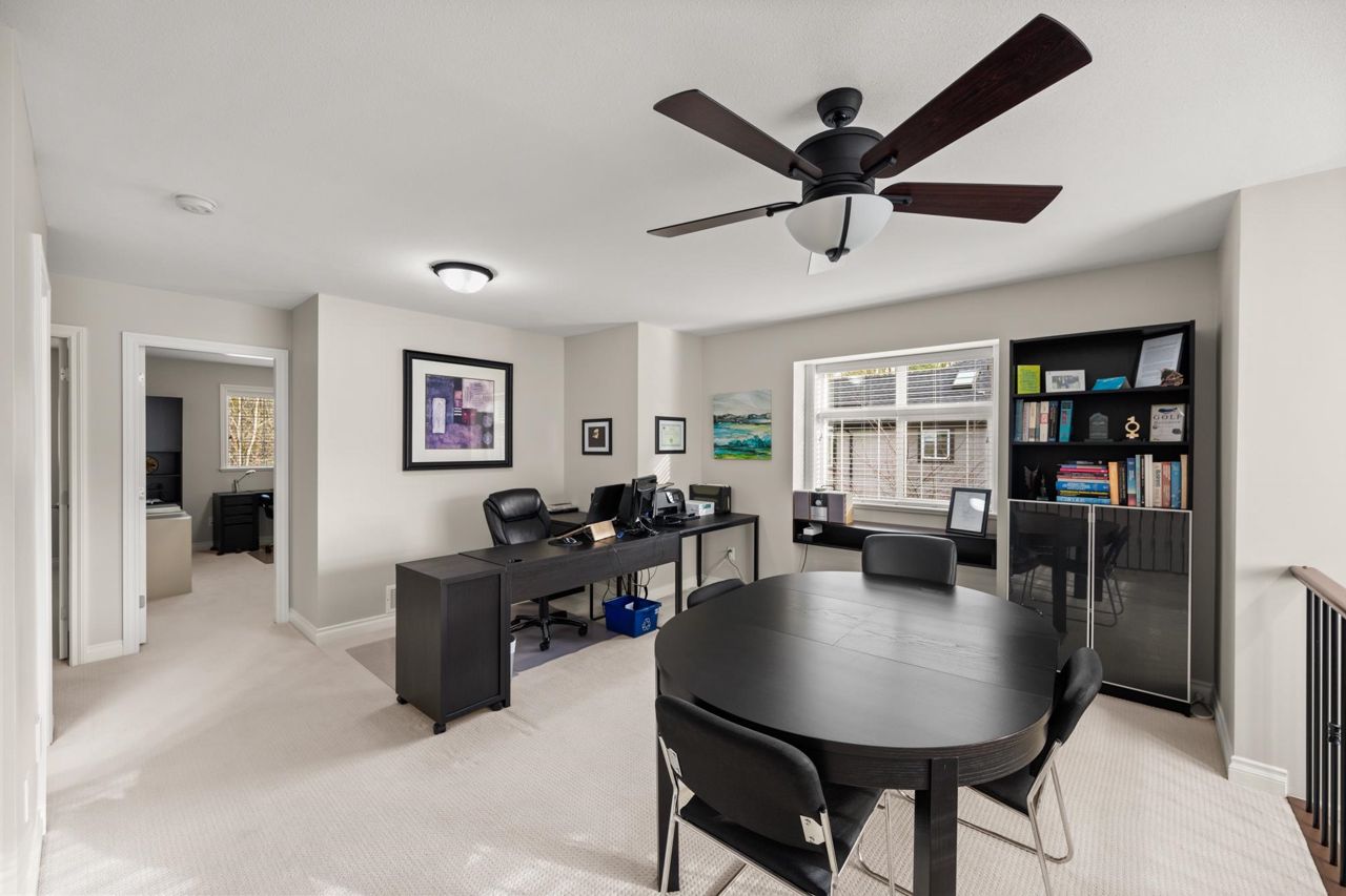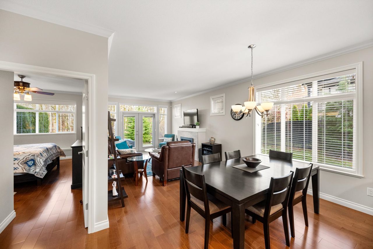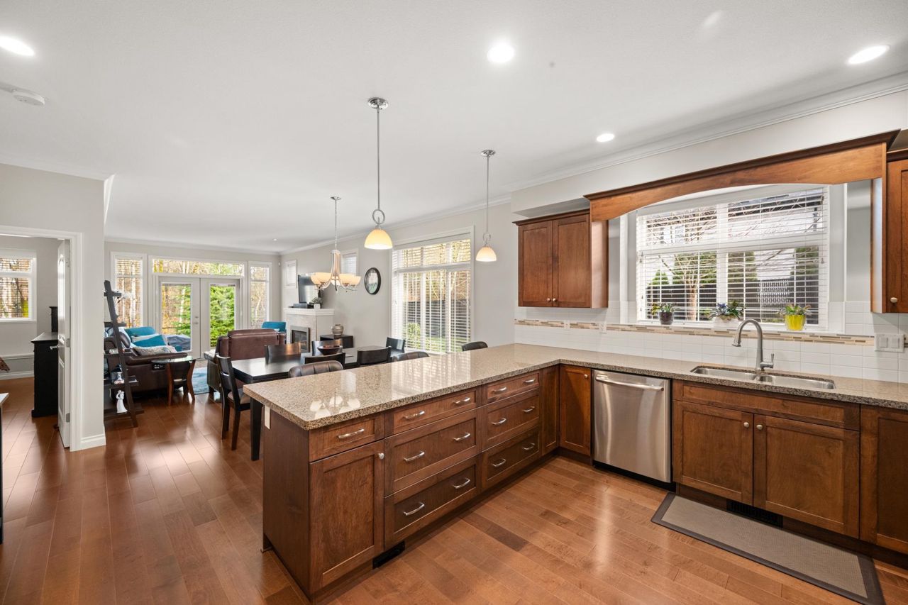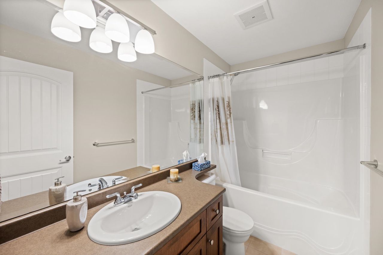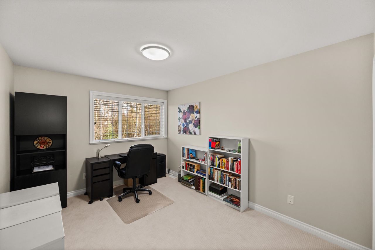 Executive end-unit townhome with a PRIMARY BEDROOM on the main floor in the prestigious 'Charlton' complex. Backs onto a serene protected greenbelt providing unparalleled privacy. Walk into an impressive 17’ high foyer before entering the beautiful open concept kitchen with wood cabinets, granite countertop & stainless-steel appliances & dual fuel range. Bright great room w/ gas fireplace & French doors w/ an incredibly private outlook. Exceptionally wide 50’ YARD fully fenced w/ large patio w/ 2 gas hook up & landscape lighting in a gorgeous setting. Upstairs are 2 large bedrooms + open concept den/home office. Fully finished basement w/ entertainment sized rec room down, wet bar & room for a pool table. Forced air natural gas heating & AC + electrostatic air cleaner. 4 PARKING SPOTS