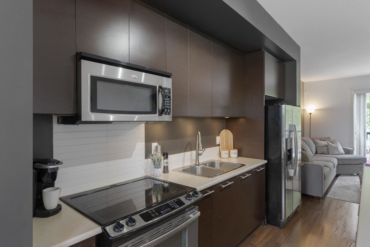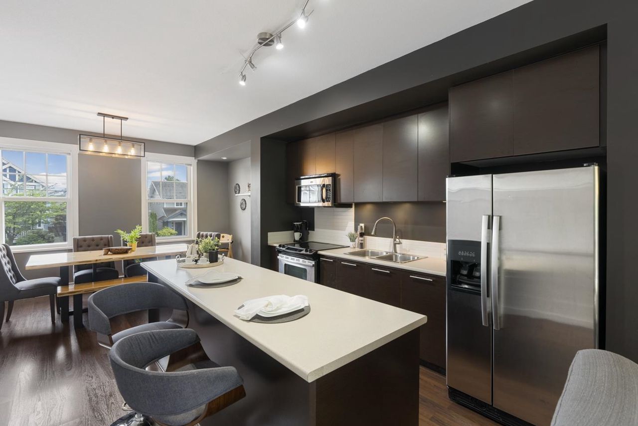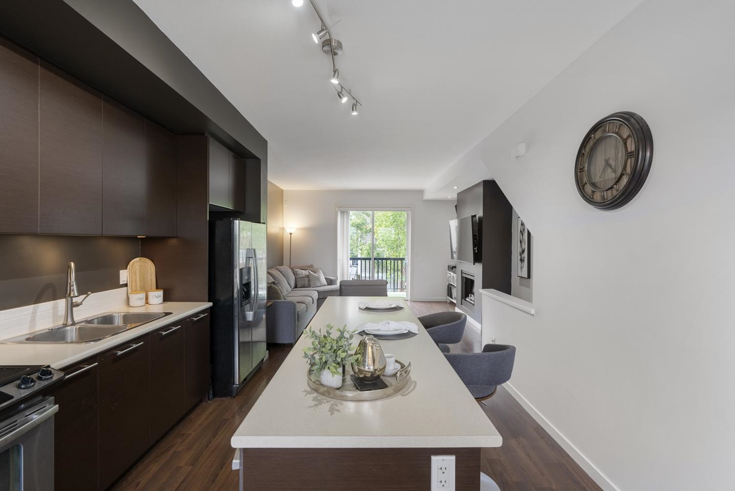 Beautiful 2BD+Den 2BTH 3-storey townhome in highly desirable Clayton Heights. Found along a quiet, tree-lined street, this luxurious 1,322sqft residence welcomes you in with a generous den that easily converts to an enviable home office, play area or craft room. Guests can step out onto the spacious balcony or relax before a cozy fireplace while you prepare delicious meals in the gourmet kitchen with stainless steel appliances, large island & chic cabinets. Upper level is reserved for naturally well-lit bedrooms with generously sized primary bedroom boasting his & hers closets & well-appointed ensuite. Situated in Surrey’s creme de la creme, The Tate by Mosaic is steps to both levels of schools, bus stops & parks with grocery, shopping, restaurants & Fraser Highway a few short blocks away.