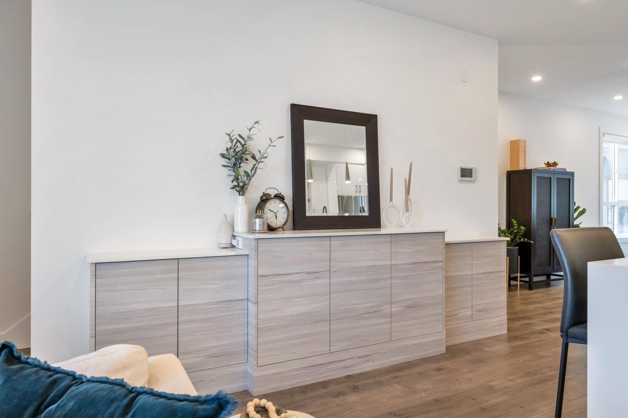 UPGRADES GALORE & BEST VALUE IN CLAYTON HEIGHTS HANDS DOWN! Welcome to this stunning corner unit in Aloha Estates boasting over $50,000 in custom upgrades including built in shoe cabinet, custom built in shelving/cabinets throughout main level, built in fireplace, floating shelves, built in speakers on all floors, entire home networked, feature wood panel wall in primary, smart controllers throughout, A/C & pet friendly turf in fenced yard. This 4 bed/4bath featuring 1903 sq ft of prime living space has tons of windows for natural light, open floor plan for entertaining and views of Mt. Baker. Double car garage & custom designed laundry for organization. Kitchen boasts gas range with huge center island and pull out drawers. This home is immaculate and one of a kind.