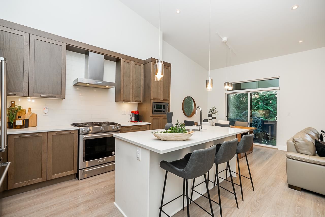 Welcome to “The Links” at the prestigious luxury complex just off the 18th Green of Guildford Golf Course. Open Concept Unit offers 4 Beds + DEN/Office + Lounge, 4 baths, High Vaulted Ceilings, a Double Garage with Driveway and a Private Yard overlooking Serene GREENBELT! The Gourmet Kitchen is an Entertainers Dream, with High-End Appliances, Quartz Island & an adjoining Dining Area with Protected Green Space. The MASTER on the main floor with Spa-like 5pc Ensuite w Heated Floors and Spacious WIC. Upper floors offer a Great Lounge Area with 2 Spacious Beds, Media Area & Provisions for a wet bar (Roughed in) on Lower floor. Enjoy Summer in the backyard with A/C. A yearly GOLF Membership 50% OFF DISCOUNTS to Links residents. Centrally Located close to Guildford Mall & Parks nearby. Call NOW!