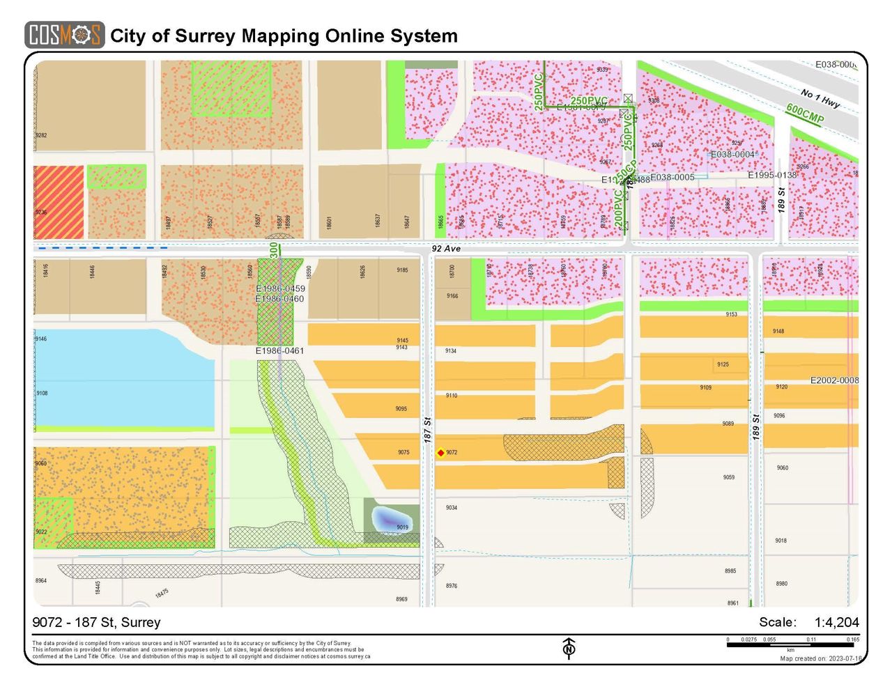 An excellent opportunity to purchase this clean park-like development 5 Acres (254’ x 853’) parcel, existing residential acreage zoned, not in ALR and no creek, with approved NCP – stage 2 in the Port Kells / Annideale-Tynehead neighborhood. This property has been zoned recently now BUSINESS INDUSTRIAL PARK development by City of Surrey. At present basement entry 2300 sf home with double car garage with lots of parking. Central location to Langley & Cloverdale shopping, parks, recreation, elementary school, library and the proposed future Harvie Road/88th Ave commercial core. Great TEMP TRUCK PARKING possibility, conceptual plan attached. Check with City to confirm. Close access to TransCanada Hwy# 1 and Hwy #17 and Golden Ears bridge.