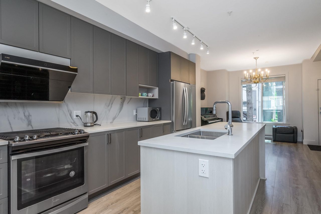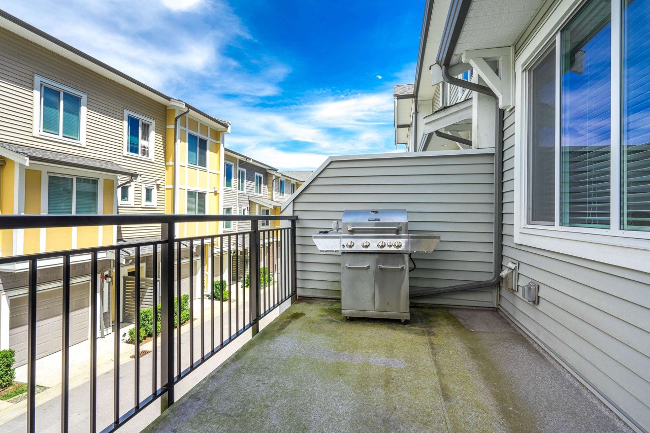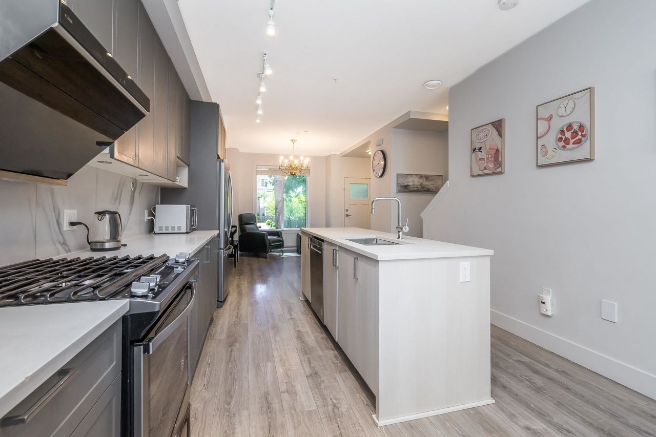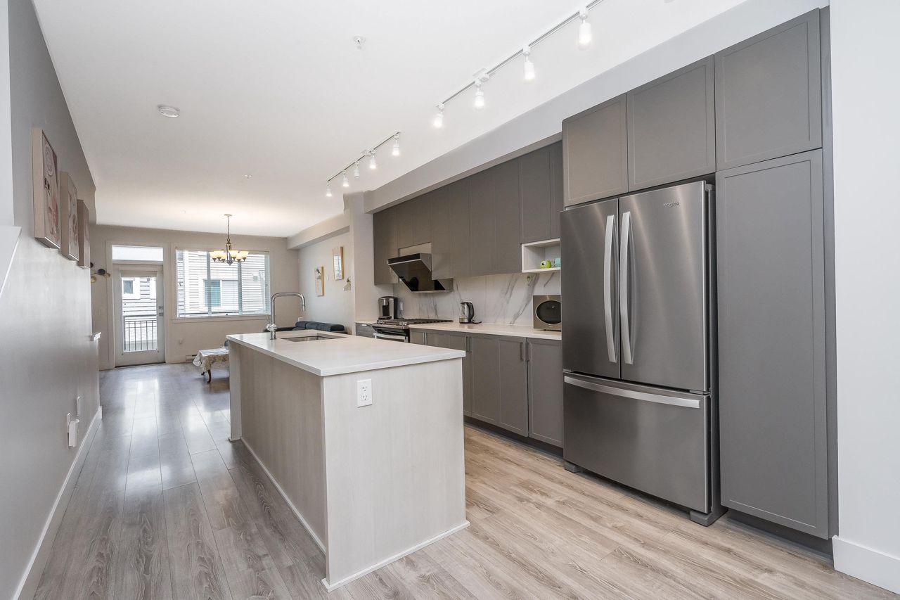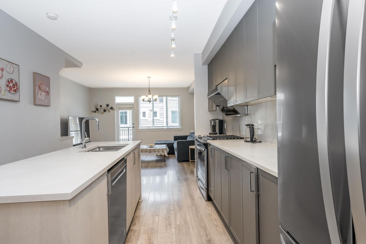 Desirable4 bedroom 3 full bathroom townhome overlooks serene greenery and one of the BEST unit at Canopy Tynehead. This move in ready 4 bed 1787 sq. ft. home has a modern, open concept main floor with island ideal for entertaining. Today's necessities such as stainless steel appliances (GAS RANGE), quartz countertops & laminate floors. Spacious master with luxurious ensuite & glassed in shower plus double sinks. Big bedroom & bathroom on ground level ideal for visitors/extended family. Desirable side/side garage & huge deck. Close to the club house which has a small gym. Walk to transit, schools & not far from the mall & Surrey Memorial & just minutes to the highway. Trees, nature & peace.