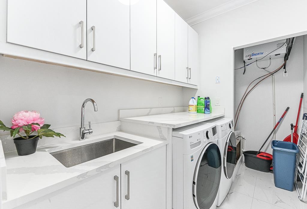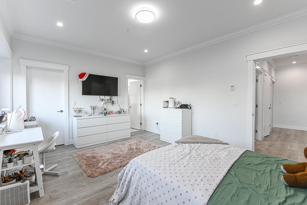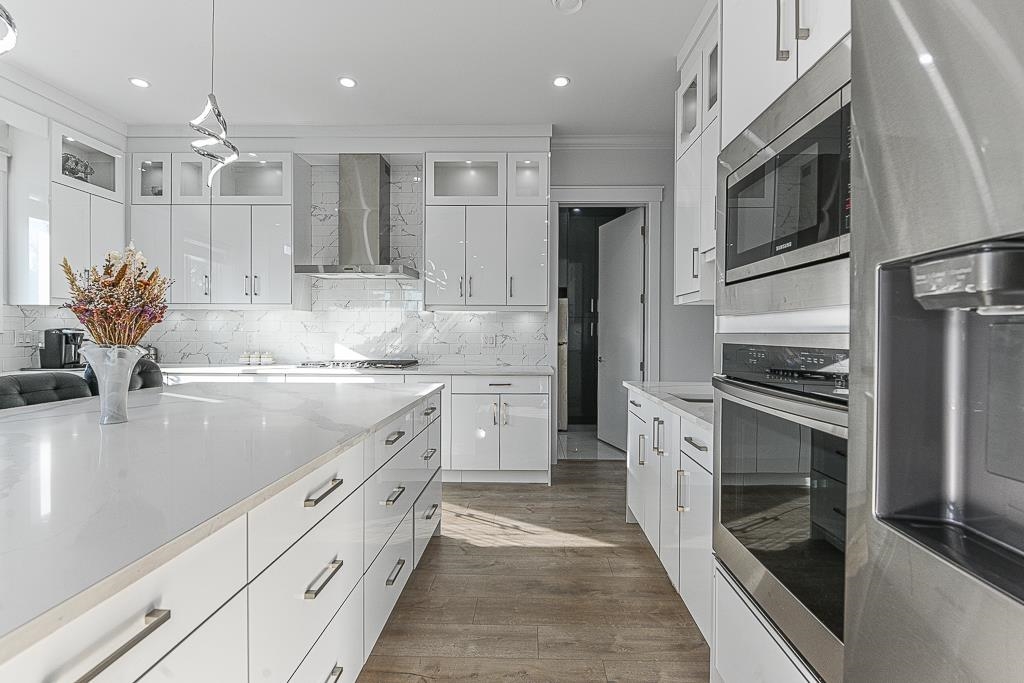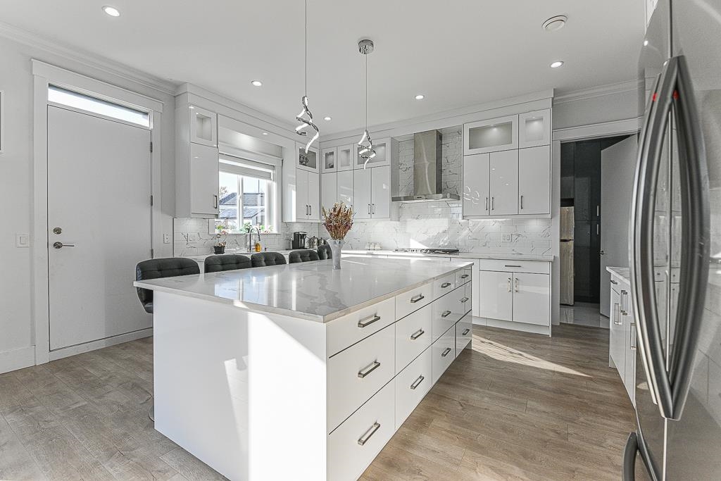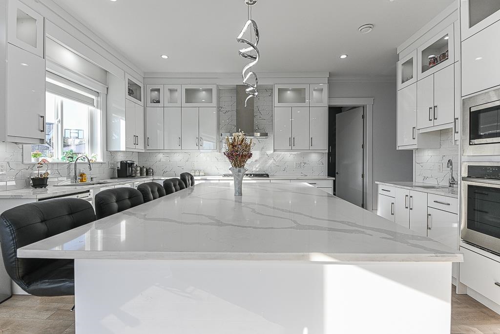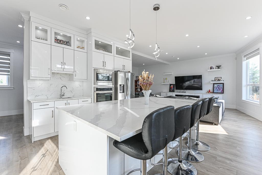 Perfect home on a quiet cul-de-sac in Fraser Heights! This 10 bed + 9 bath home is equipped with A/C, radiant floor heating on all 3 floors, HRV system, central vac, video security, DOUBLE garage with EV Charger. Main floor features open living room & dining area, family room across a dream kitchen and spice kitchen. Quality fixtures, Tile & laminate flooring, top notch design cabinets with quartz counter tops. Main floor has a large 2 bdrm with ensuite roughed in for possible 3rd suite. Upstairs features 2 master and 2 bedroom with shared bathroom. Lower level features a media room with full bathroom, 2 bedroom legal suite and 2 bedroom authorized suite with shared laundry. Close to school. Use Postal Code for GPS address V4N 4L3. Open House cancelled.