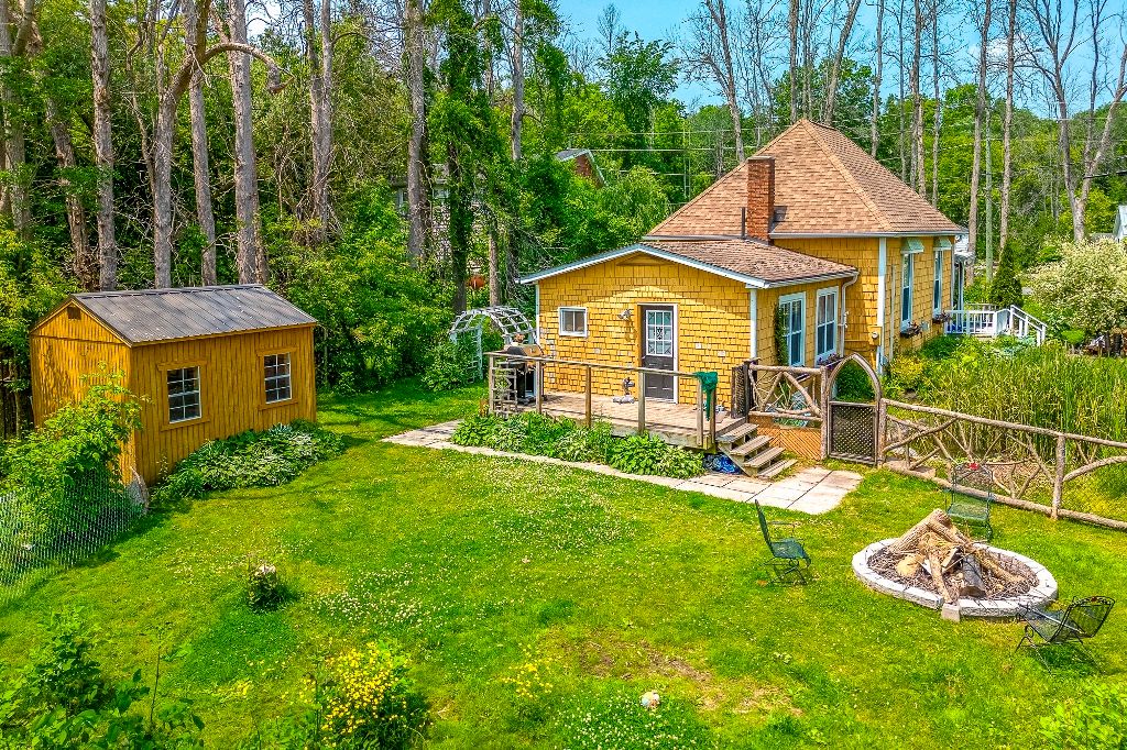 This fantastic property is just steps to beautiful Georgian Bay. Perfect for downsizers, first time home buyers, cottagers & investors alike! This unique home offers a great opportunity for someone who loves to live near marinas, golf courses & the Trans-Canada Trail right across the street. The original structure with all of its wooden charm, was built by the Georgian Bay Lumber Company in 1878 with the intentions of it being a Library. The main structure features original wood walls, ceilings & floors, which is a beautiful room for a living area. The home features a natural gas furnace, an eat-in kitchen, main floor laundry, gas fireplace, a 4-pc bathroom & an enclosed 3 season front porch. The 0.88 acre lot is delightful with manicured landscaping, koi pond & small bunkie . Only a 2 minute drive to Highway 400 & only 90 min from the GTA. Whether for year-round living, or as your oasis from the city, this beautiful home or cottage is just a short drive from the shores of Georgian Bay***Interboard listing: The Lakelands Association of Realtors***