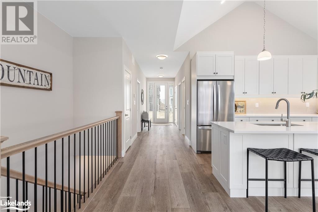 Spectacular Lambert Model, in the sought-after ‘Windfall’ community minutes from the Orchard lifts at Blue. Ready for entertaining, this home features a chef’s kitchen with stainless appliances. Oversized breakfast bar to accommodate your après ski in style. Open concept great room features a fireplace, 16 ft cathedral ceilings, with oversized windows that let in an abundance of natural light. The primary bedroom boasts a luxurious spa bathroom with a double sink, a gorgeous glass shower and freestanding tub. Another bedroom, and laundry room complete this level. The basement while unfinished basement contains the space for 2 more bedrooms, a recreation room, lots of extra storage, and a 3-piece bath rough-in. This house is filled with a ton of luxurious high-end finishes, with no detail overlooked. Move in and enjoy the incredibly warm community at Windfall complete with walking trails, ponds, and ‘The Shed’ featuring pools, green space, and party room. **DRIVEWAY & SOD COMPLETE** (id:22211)