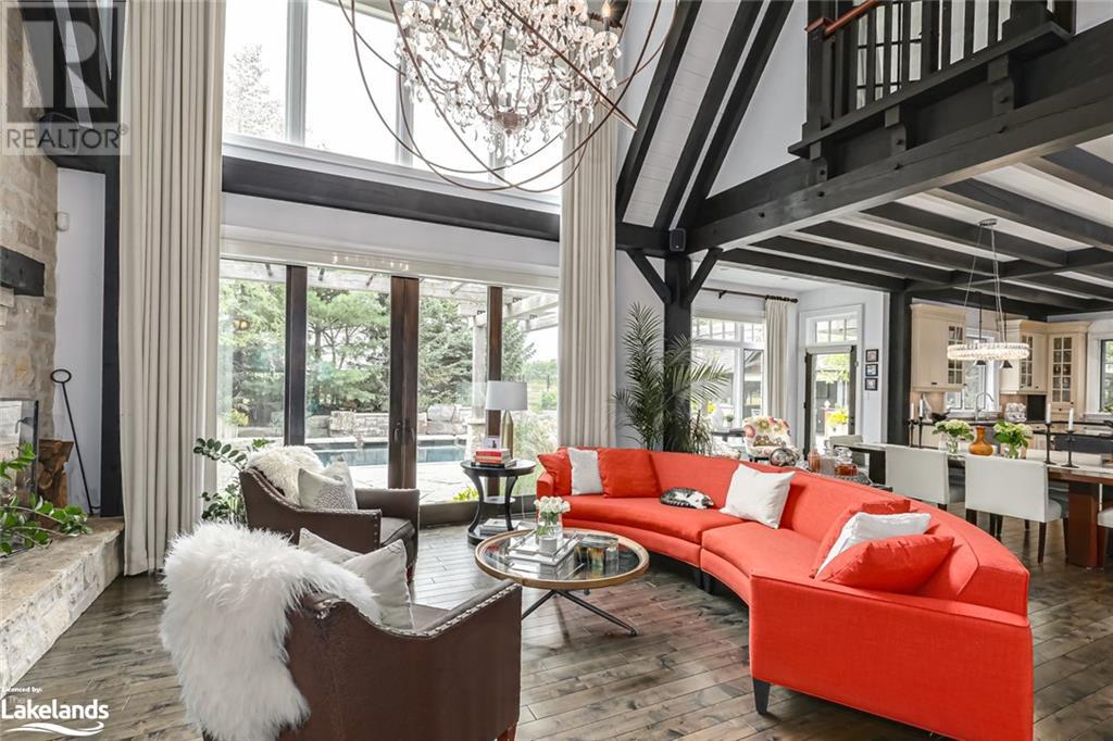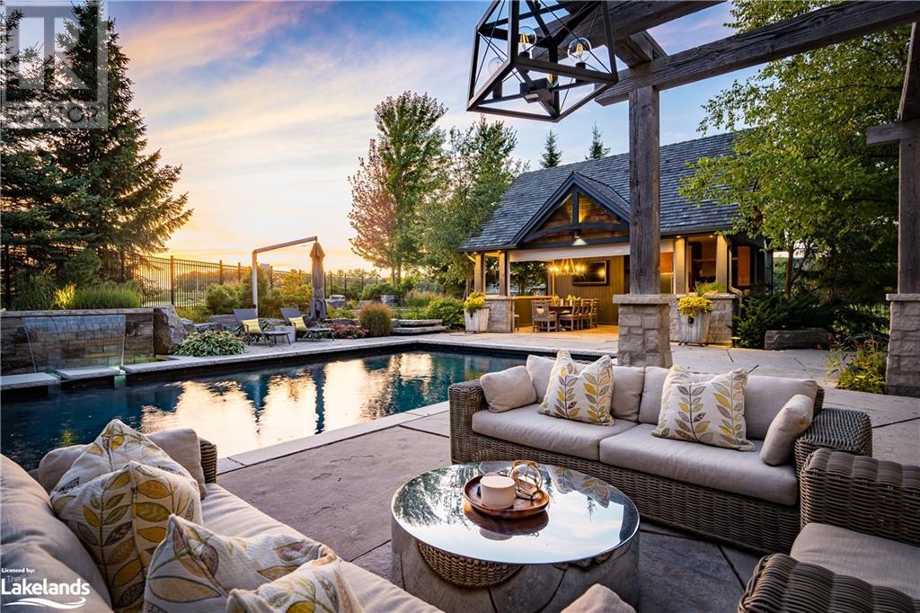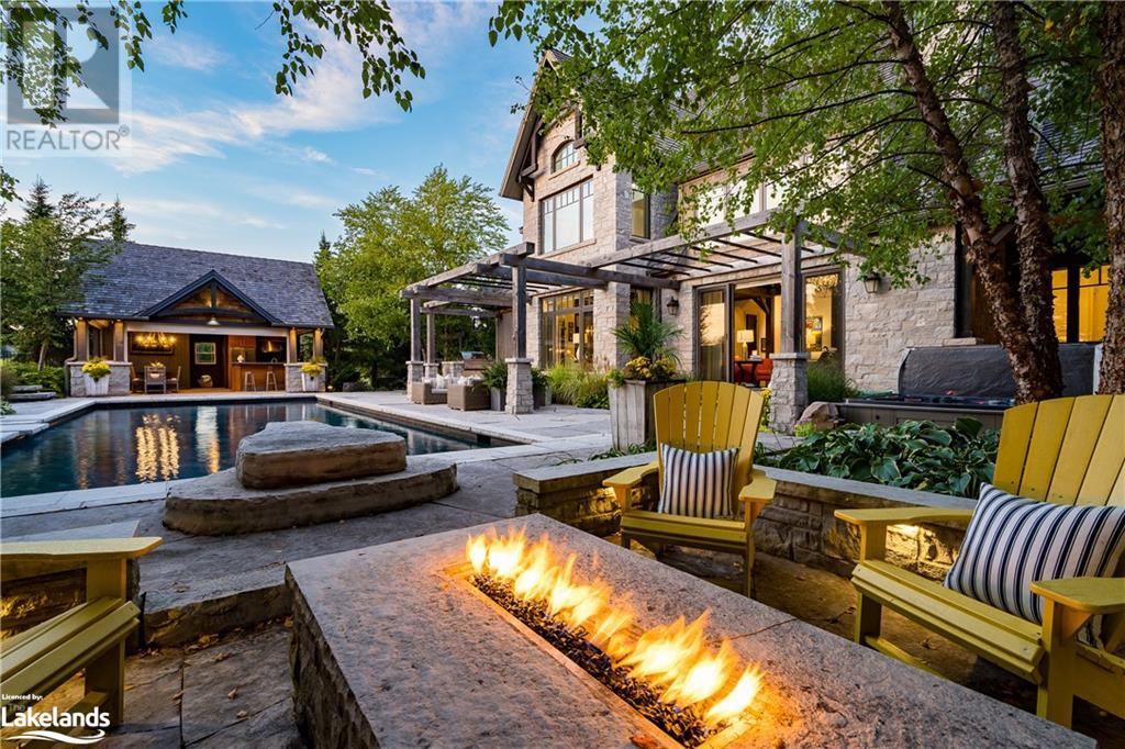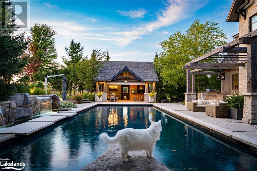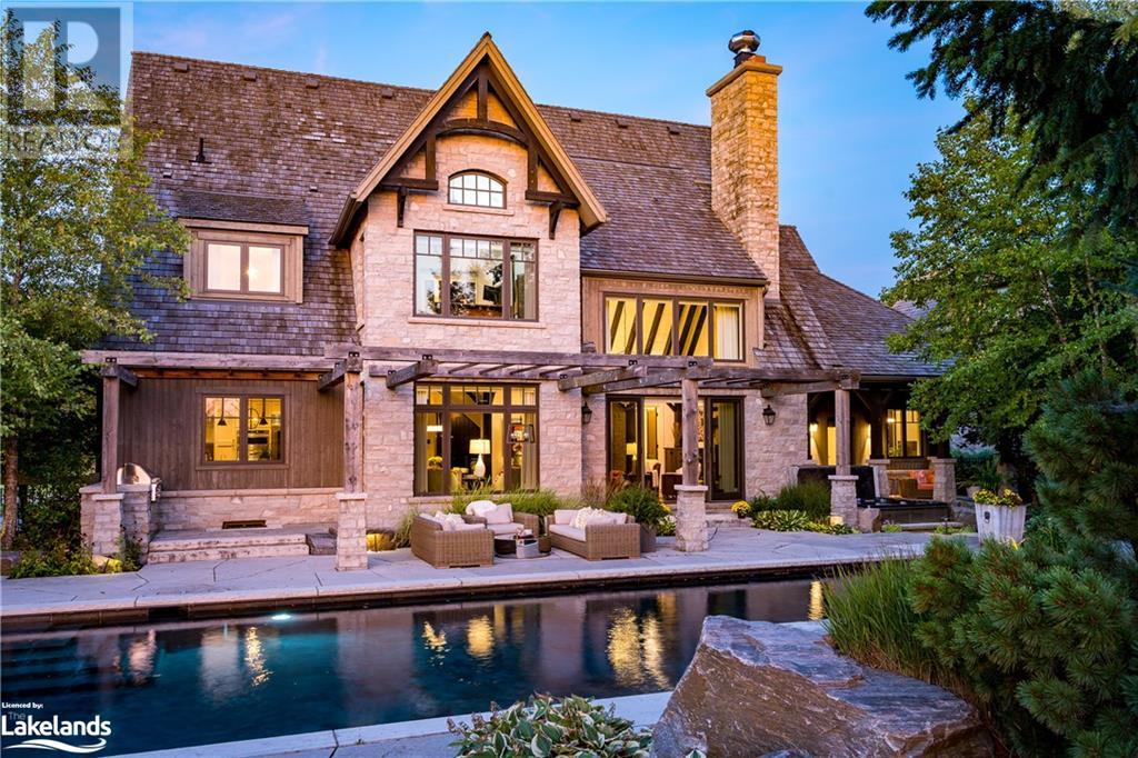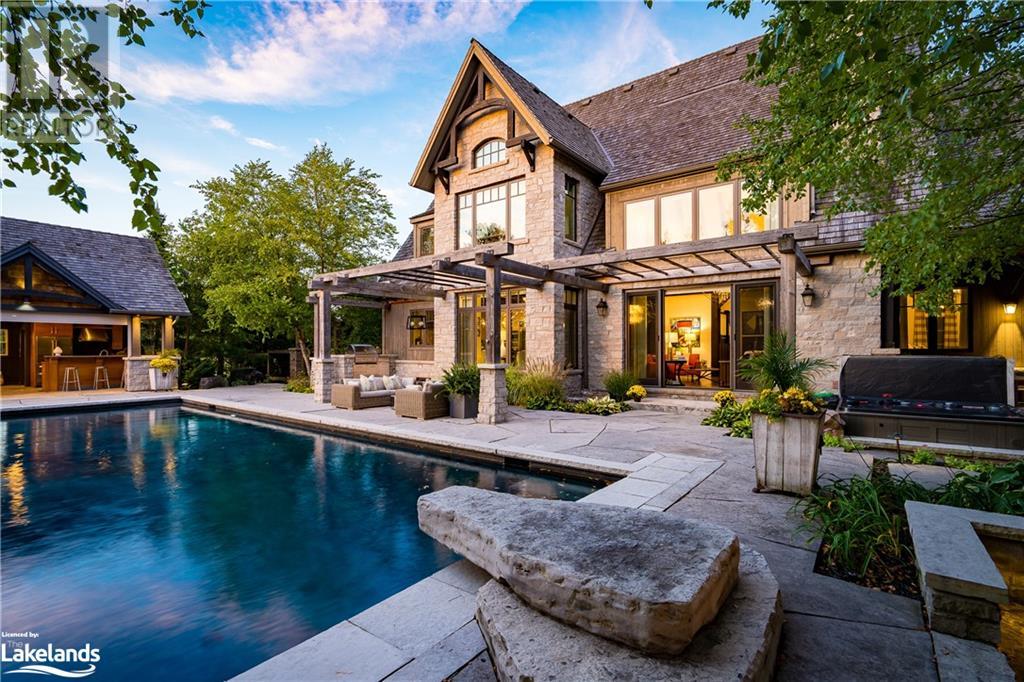 MONTHLY, SEASONAL OR LONG TERM LEASE! Minutes to GEORGIAN PEAKS and resting on the edge of the 11th fairway at the renowned Georgian Bay Club, this exceptional 4 Season property features luxury living at its finest. The back garden offers a landscaped pool, fire pit, hot tub & fully equipped outdoor kitchen & dining in the cabana and multiple perennial gardens all created by the award winning Landmark Group. The custom built chalet, on the exclusive and private Timber Leif Ridge, is constructed of stone and wood with a classic cedar shake roof. Quality and inspired design is evident throughout the property. Enter the grand foyer and make your way through to the great room featuring 25' vaulted post & beam ceiling and wood burning fireplace with a walk out to the back garden. The expansive gourmet kitchen built for a true chef or entertainer offers 5 burner gas stove, SubZero glass fridge, and an oversized island. The second level offers a bright office overlooking the 11th fairway and green with wet bar and Juliette balcony stepping out over the great room. The primary bedroom with ensuite and walk-in closet and across the hall 2 spacious bedrooms w/Jack and Jill bathroom. The fully finished basement encases a games room, entertainment area, wine cellar, wet bar, and cosy bunk room. The perfect place to gather friends & family. (id:22211)