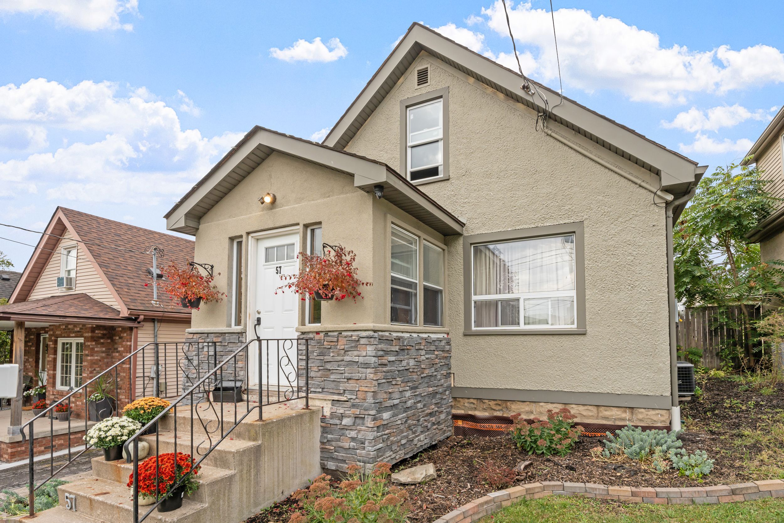 57 Carleton Street N is a remodeled 1.5-storey home in Thorold with 3 bedrooms and 2 bathrooms, perfect for the first-time home buyer! A beautiful pine foyer leads you into the home with an open concept living room and dining area, updated kitchen with granite, laminate flooring, and beautiful tile, plus pot lighting throughout. Ample windows create a bright and airy feel. 2 smaller bedrooms on the main floor, along with a powder room. The 3rd/Primary bedroom is upstairs with its own 4-piece bathroom. Almost everything is new within the last 6-7 years. The hot water heater is owned. A side entrance takes you out to the backyard patio. Minimal grass creates little exterior upkeep. Close to all amenities; downtown Thorold, shopping, College and University.