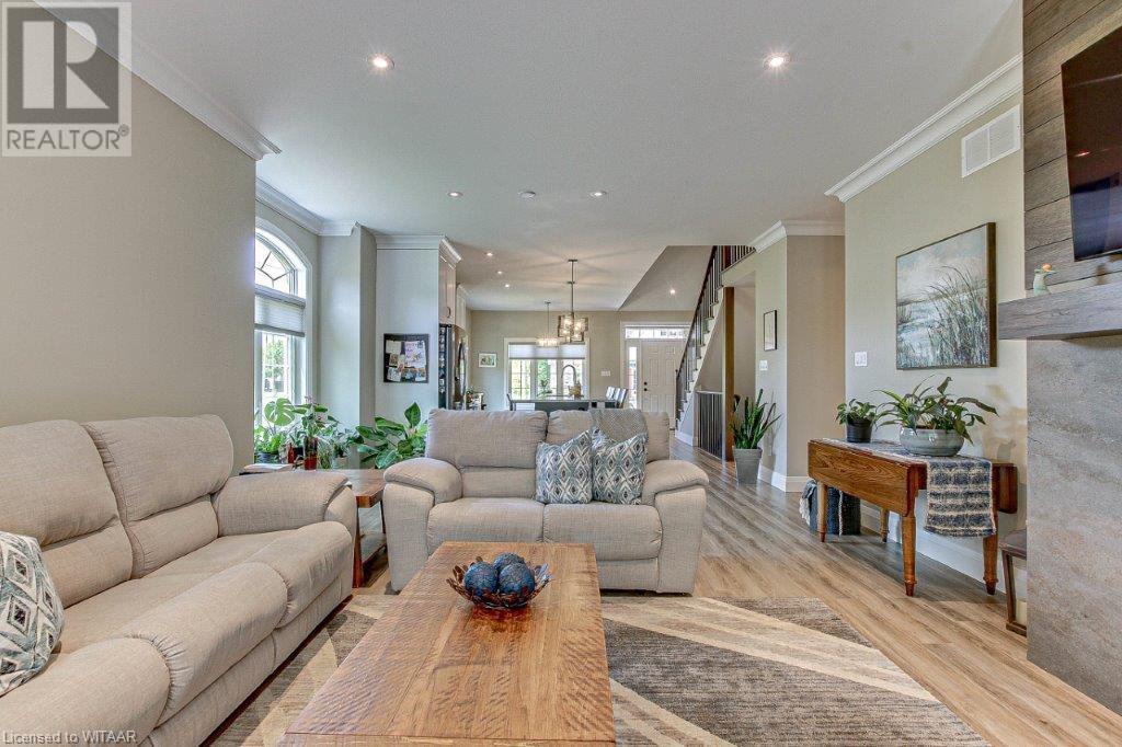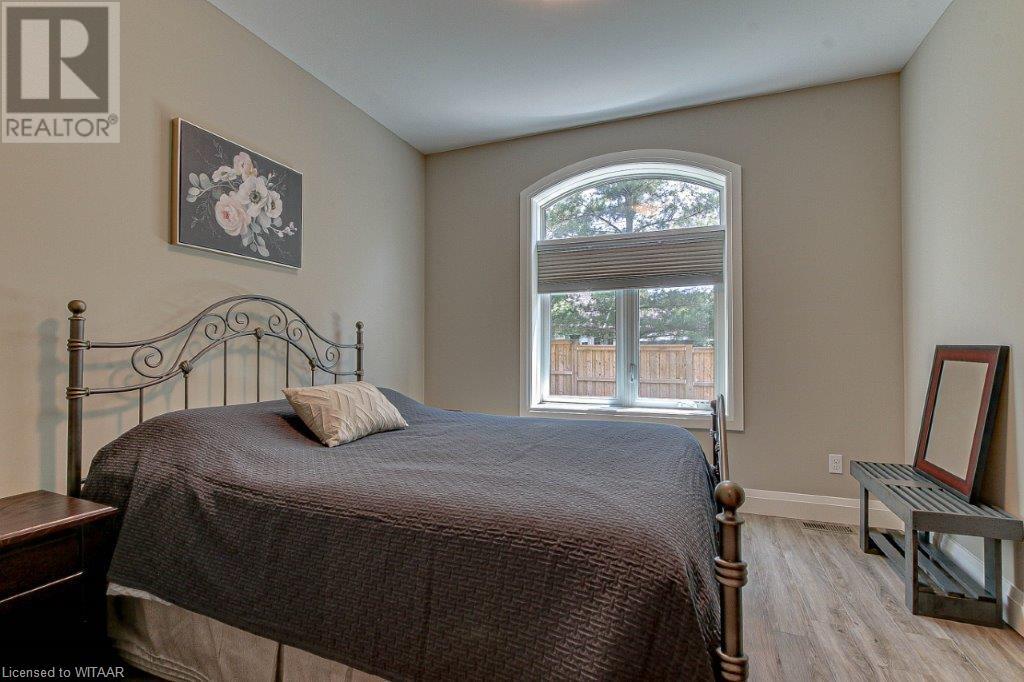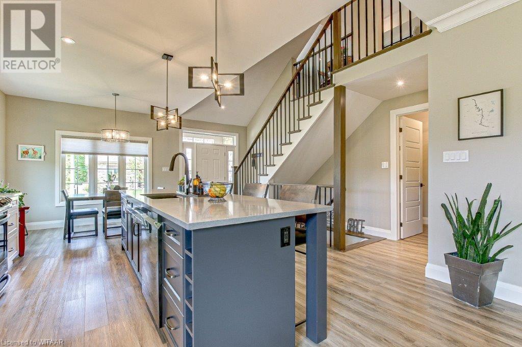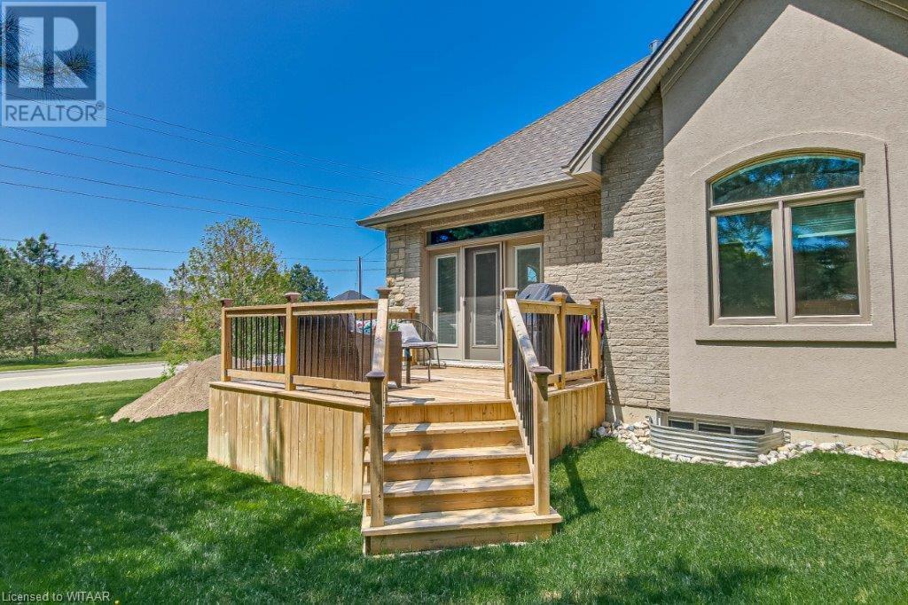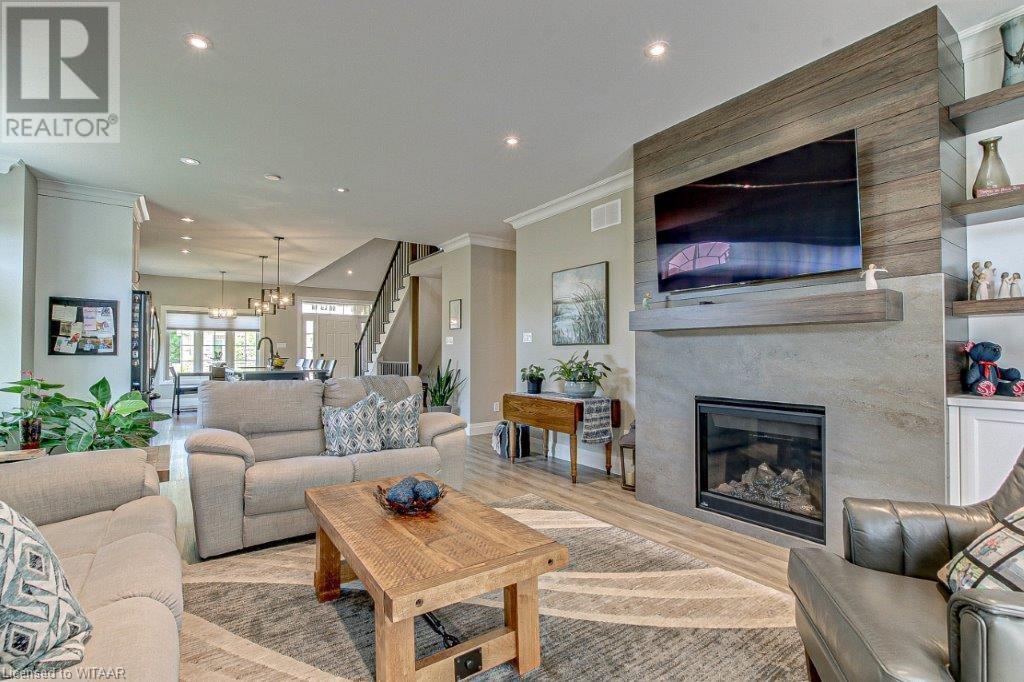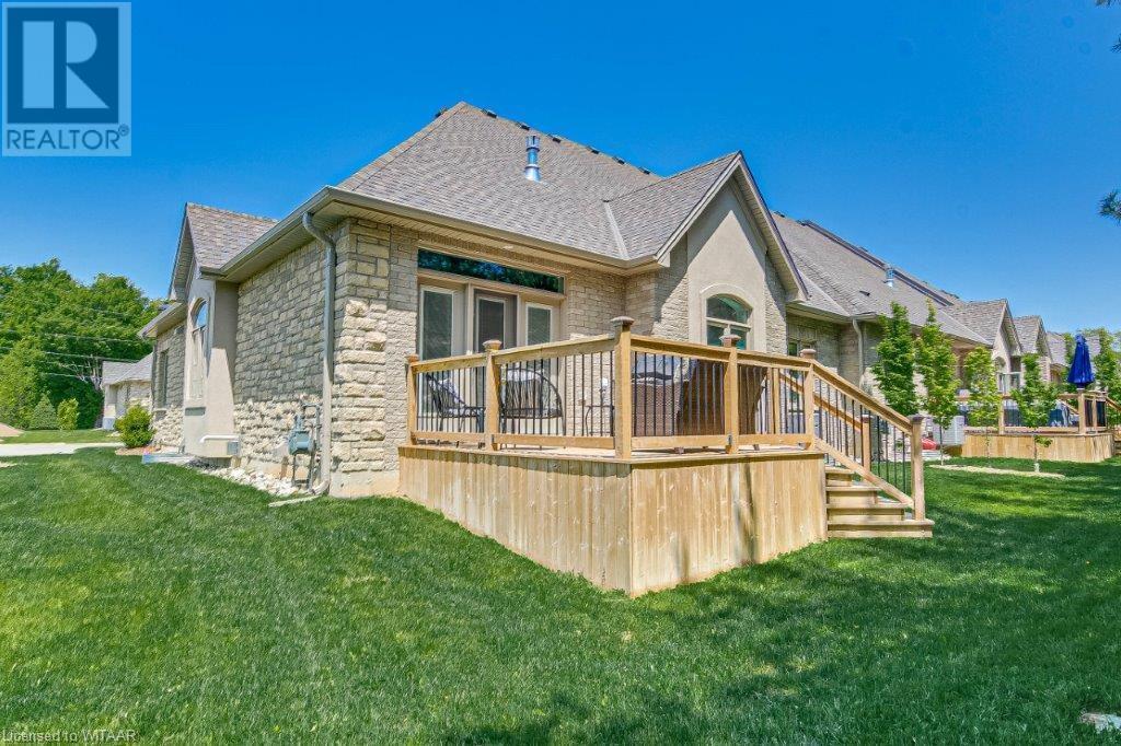 Your luxurious custom, townhouse condominium awaits your arrival. This 3-year old, 3 bedroom, 3 bathroom, Meritage Model is absolutely awesome. High-end finishes including: high ceilings, custom gourmet kitchen, quartz countertops, finished loft and basement, two stunning Hickory Wood gas fireplaces, spacious master with walk-in closet and ensuite with heated ceramic tile floors are just a few of the unique features of your upgraded insulation, energy star, forever home. Low maintenance high-end flooring throughout. The triple French doors leads to a private deck overlooking your backyard oasis. The main floor laundry room opens into your double car garage and through to your double wide private driveway adorned with French cobblestone. Enjoy your stress free passive leisure time as your condo fees cover the landscaping, sprinklered lawn and snow removal maintenance. Just minutes from the Bridges Golf Course, walking trails, beautiful downtown Tillsonburg and the Hospital. (id:22211)