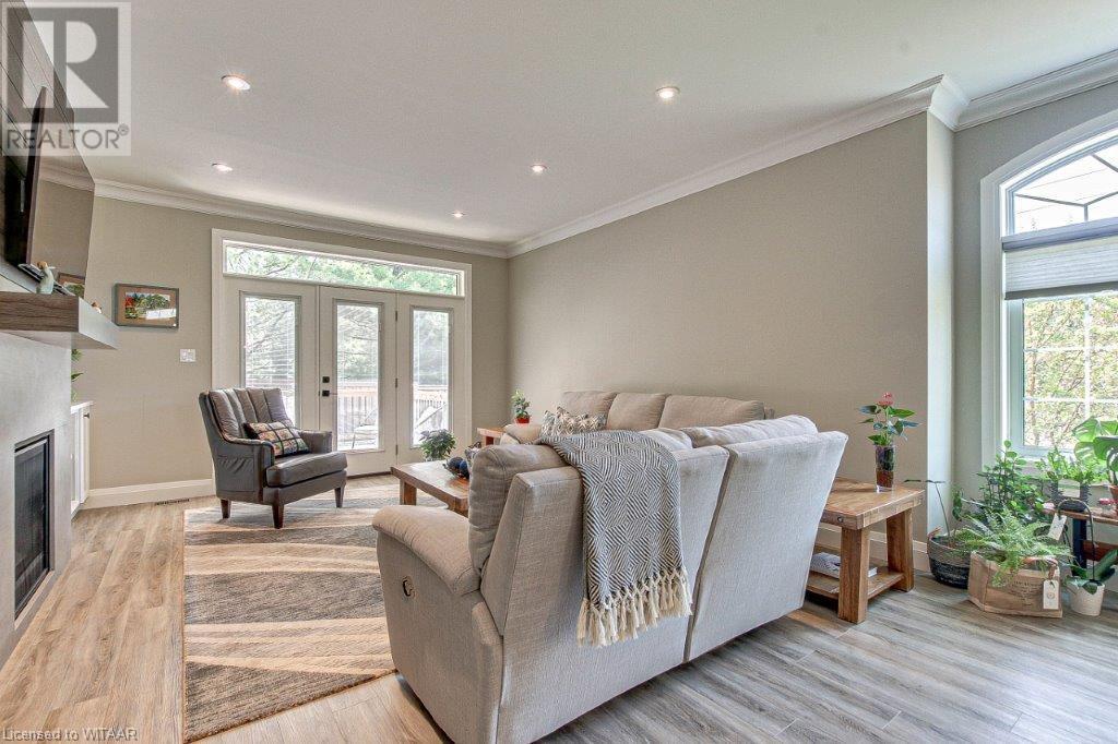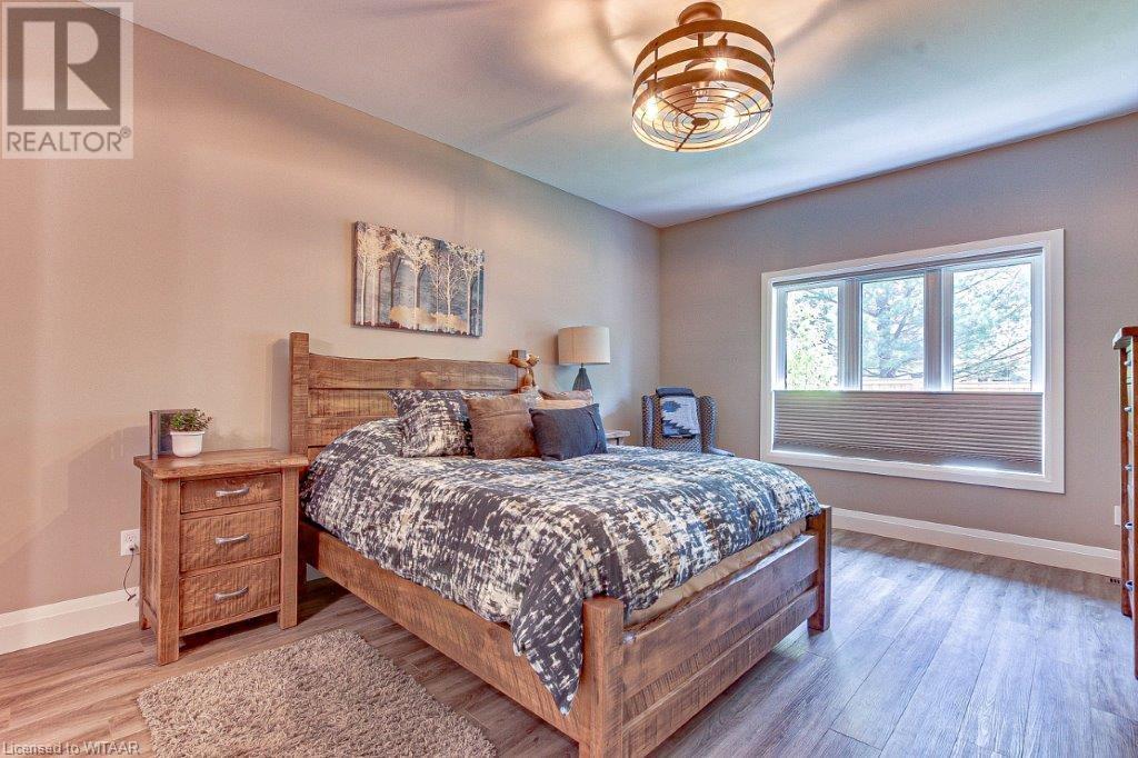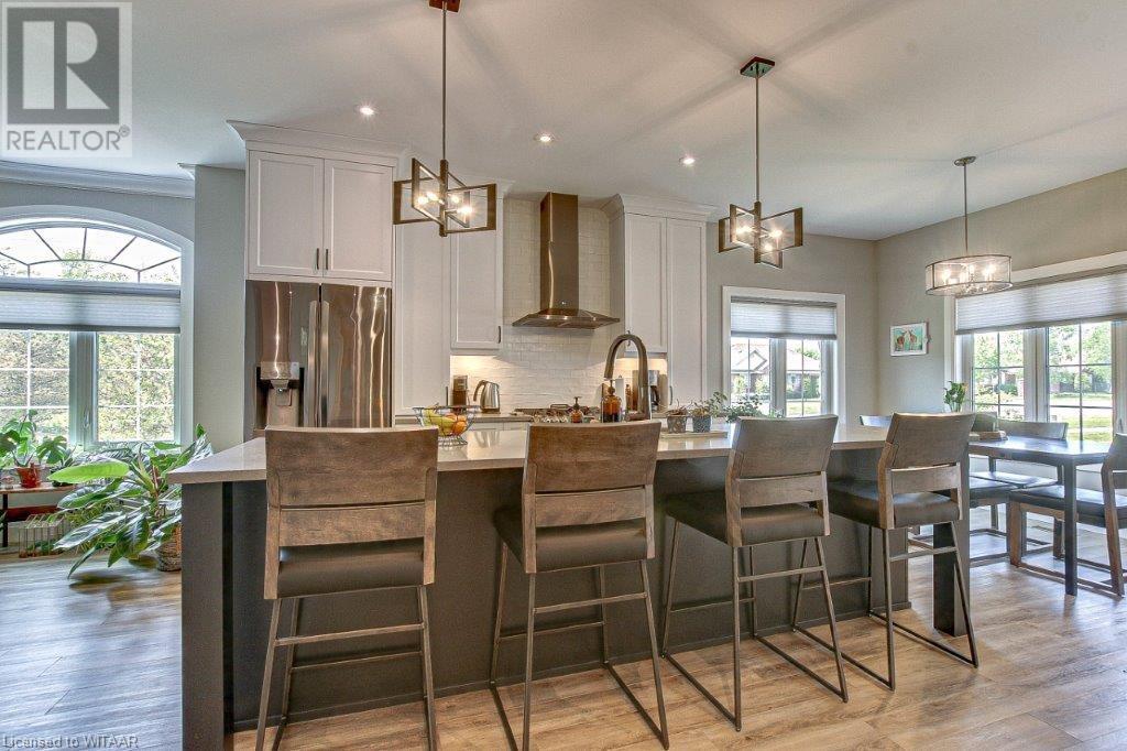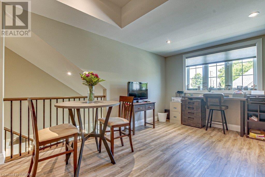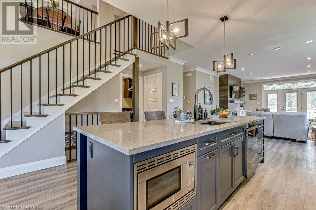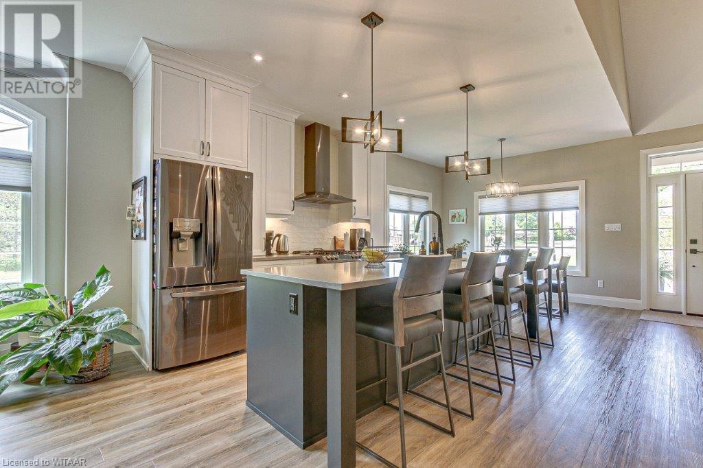 Your luxurious custom, townhouse condominium awaits your arrival. This 3-year old, 3 bedroom, 3 bathroom, Meritage Model is absolutely awesome. High-end finishes including: high ceilings, custom gourmet kitchen, quartz countertops, finished loft and basement, two stunning Hickory Wood gas fireplaces, spacious master with walk-in closet and ensuite with heated ceramic tile floors are just a few of the unique features of your upgraded insulation, energy star, forever home. Low maintenance high-end flooring throughout. The triple French doors leads to a private deck overlooking your backyard oasis. The main floor laundry room opens into your double car garage and through to your double wide private driveway adorned with French cobblestone. Enjoy your stress free passive leisure time as your condo fees cover the landscaping, sprinklered lawn and snow removal maintenance. Just minutes from the Bridges Golf Course, walking trails, beautiful downtown Tillsonburg and the Hospital. (id:22211)