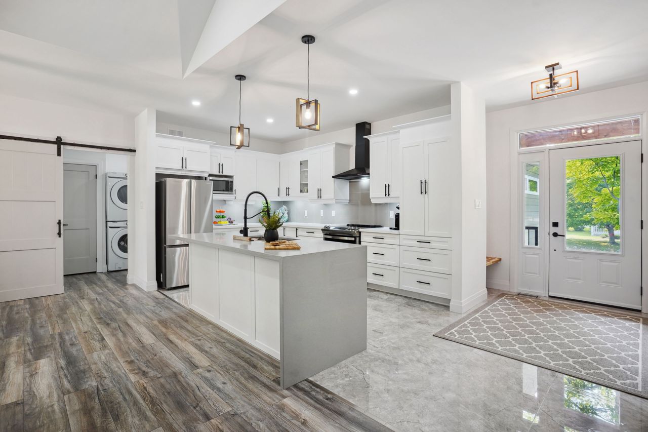 Executive 1700+ sq ft Bungalow minutes to three beachfronts at Cove/Ishpaming Beaches. Cathedral ceiling w wood beams lit with pot lights creates an elegant ambiance. Plenty of natural sunlight streams through the LG transom windows. For the chef enthusiasts, you will not be disappointed in the designer staggered depth/height of the upper cabinetry, custom pots/pans drawers, 2X4 porcelain tiles accented by stunning quartz countertop and waterfall edged island. Prim. bdrm boasts an ensuite with a W/I shower featuring a water tower, soaker tub, double sink with a quartz countertop! Inside access to an extra deep, 19X24 ft garage that will fit your full-sized truck! Unspoiled basement includes a LRG cold cellar. BBQ under the LRG, covered deck illuminated with the soffit pot lights. Some unique features to share, strategically placed bench to remove your footwear, two linen closets, two large closets for outerwear, exterior pot lights, covered rear deck, stone exterior, cold cellar!True pride in construction and a must see forever home!