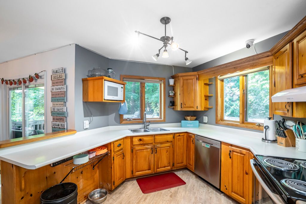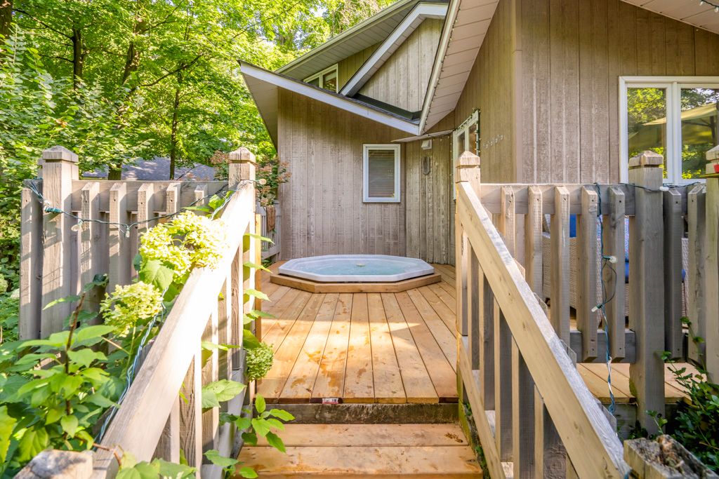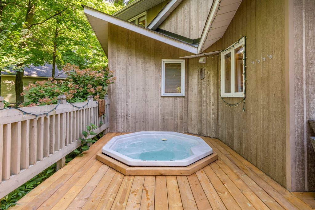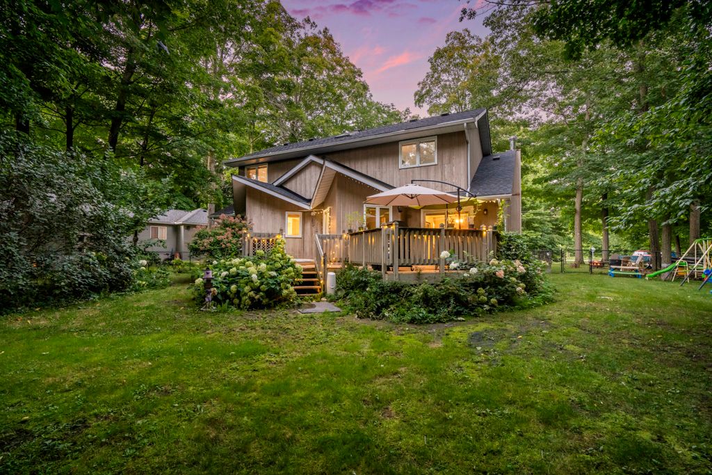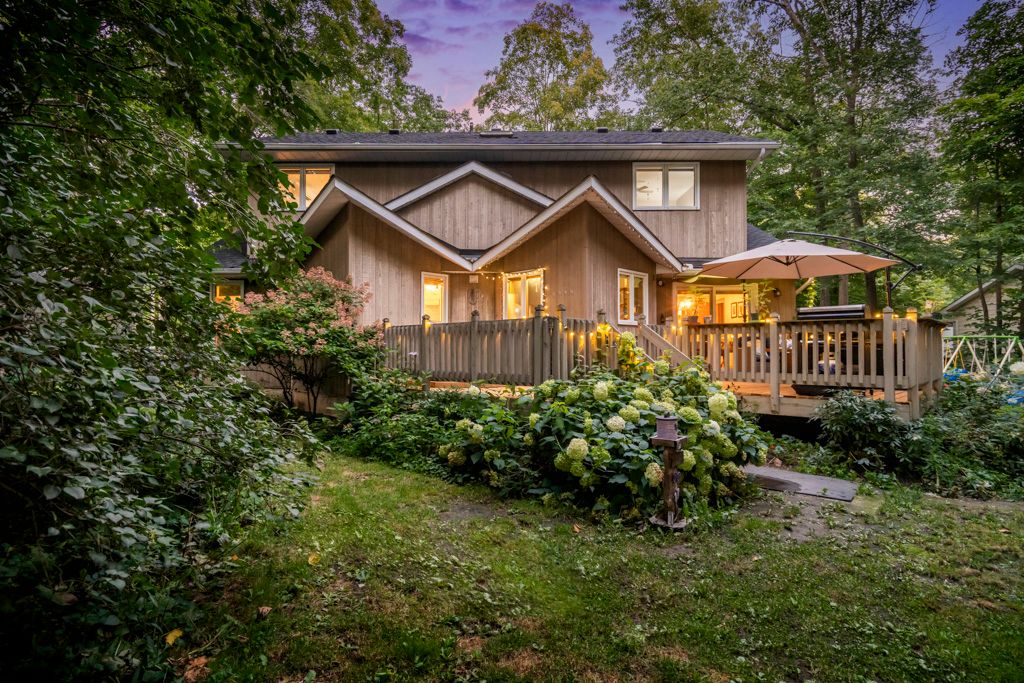 Sawlog Bay Beauty! Enjoy spacious living in this desirable neighbourhood along the shores of Georgian Bay. The welcoming open layout, bright kitchen, cathedral ceilings and warm wood finishes make this home perfect for your families day to day living or entertaining. With five spacious bedrooms your family or guests will have all the space they need to feel at home. Outside enjoy your private backyard retreat with an expansive deck featuring a comfortable seating area and a built-in hot tub. Large trees and mature floral bushes make relaxing here a breeze. Explore nearby Awenda Park, beautiful in all seasons, or walk down to one of the many access points to beautiful Georgian Bay beaches. *Updates include: New roof 2020, newer appliances, Generac generator, new rear deck 2023, new skylights, bathroom counter tops, primary bedroom ensuite bathroom renovation with an accessible shower*
