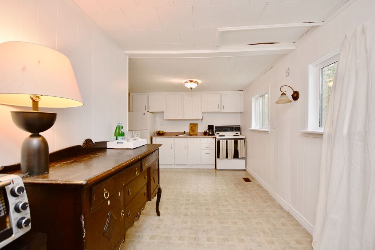 Welcome to this extraordinary opportunity nestled in the tranquil area between Allenwood Beach and Woodland Beach. This charming residence, whether as a serene getaway or a permanent abode, boasts immense potential. Situated discreetly from the road, it occupies a secluded, lush 70 x 175-foot lot enveloped by mature trees. Upon entering, you're greeted by generously proportioned rooms on the main floor, flooded with natural light pouring through numerous windows. Picture yourself unwinding to the soothing melody of waves from the deck adjoining the master bedroom. The untouched basement, with a separate entrance, eagerly awaits your creative touch, offering limitless possibilities to customize to your liking. Freshly painted and brimming with promise, this gem is poised to transform into your dream home or an idyllic retreat. Recent investments include a $30,000 upgrade to the septic system, ensuring modern convenience and peace of mind. Additionally, the property is serviced by gas and features an 80-foot drilled well. Embrace the allure of the nearby beach, just a short stroll away, where a public access point beckons you to explore paradise. Although the provided images were captured on an overcast day, stay tuned for additional photos showcasing the property's full splendor when the sun graces the sky. Nestled just beyond the hustle and bustle of Wasaga Beach, this enclave offers the best of both worldsproximity to ample shopping and dining options, yet far enough to bask in uninterrupted tranquility. Experience affordable living amidst serene surroundingstruly a dream come true.Niced sized shop with separate door in the lower level, path to the lake just down the road, some furniture and tools - please inquire, new septic installed 2023 - documents are available