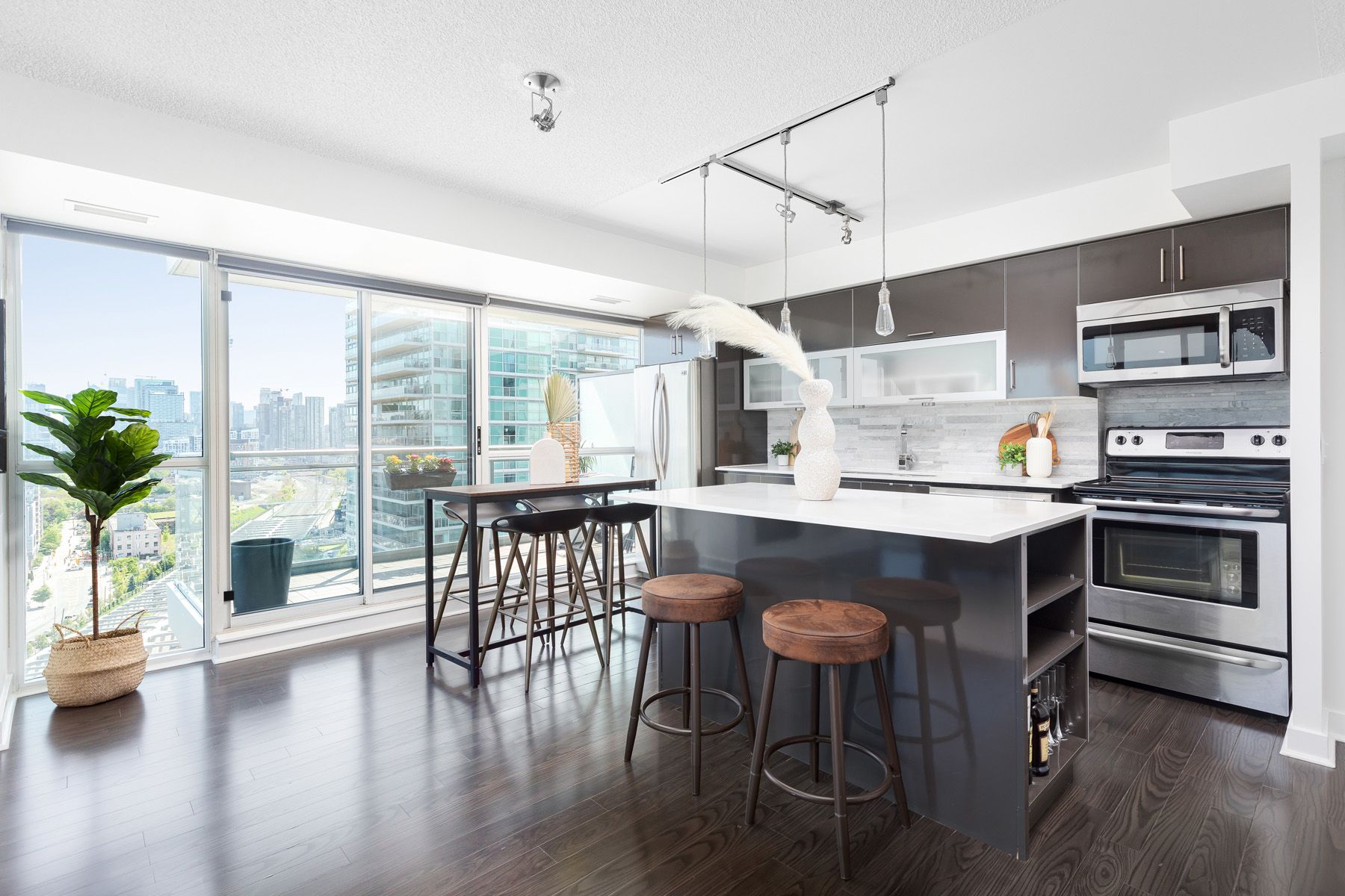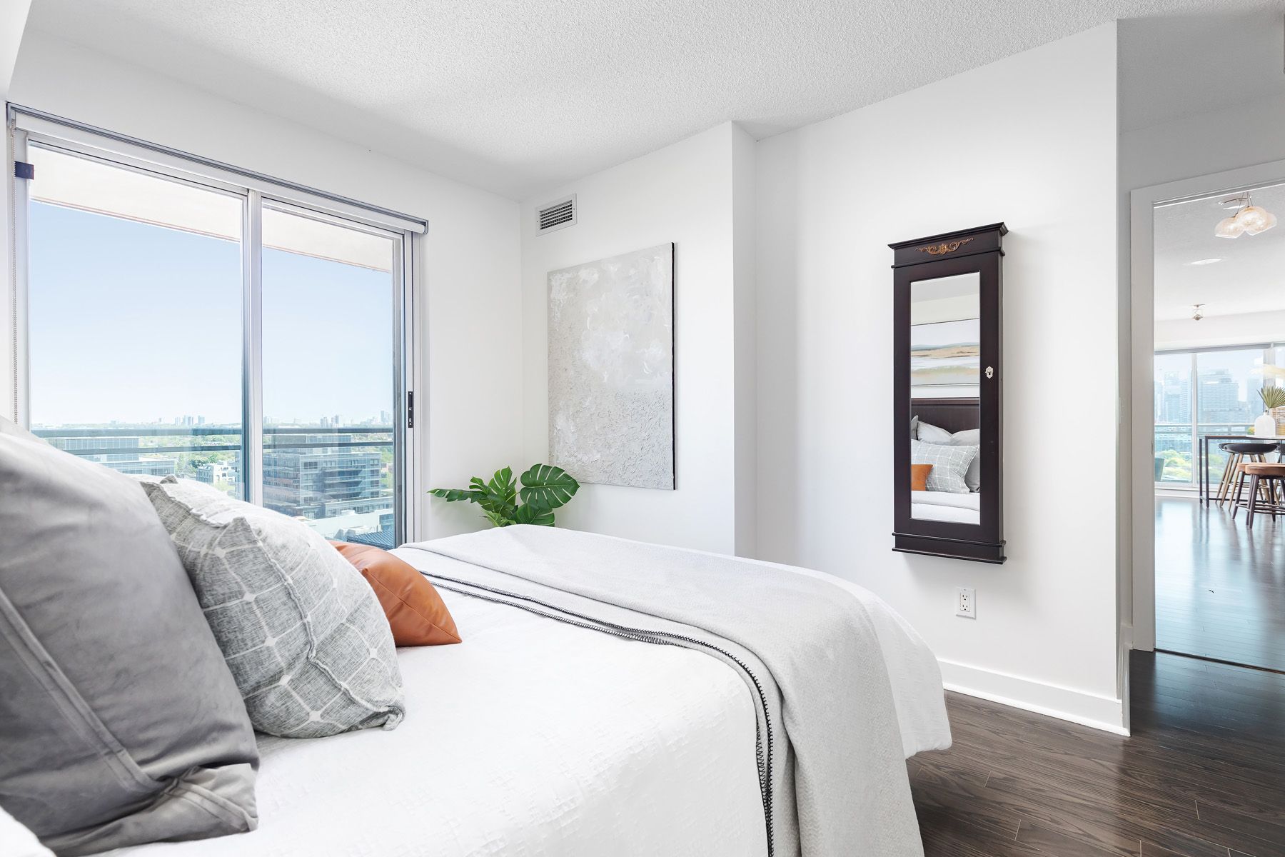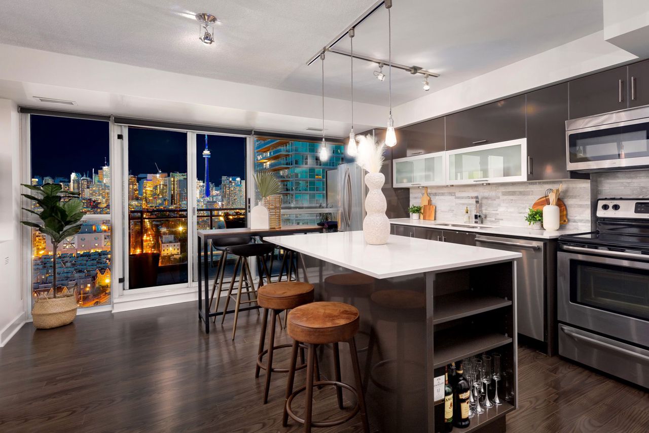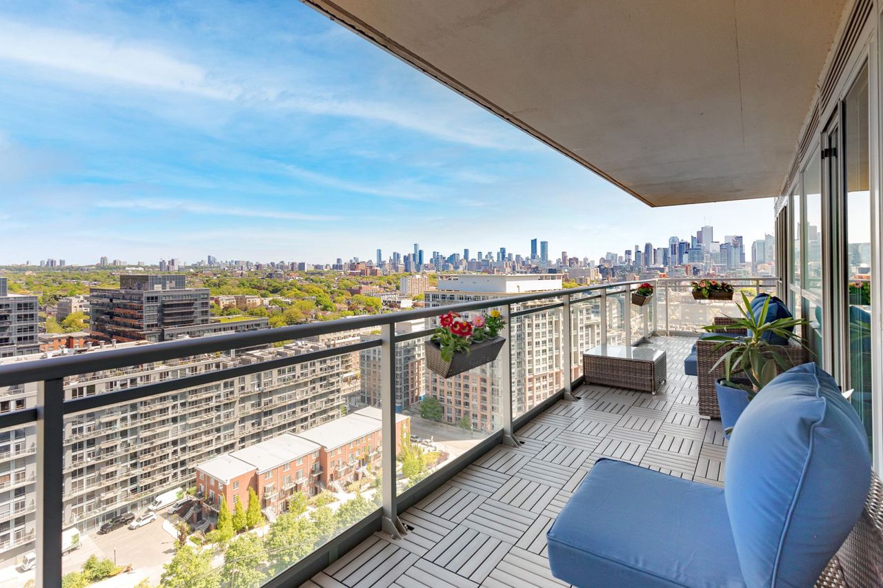 Welcome to the Vibe Building in the Heart of Liberty Village! This rarely offered 2 bedroom, 2 bathroom Corner Unit is a must-see. With not One, but Two balconies you'll have over 200 sq ft of outdoor living space with Balcony Access From Every Room. Wake up to stunning city views then enjoy your morning coffee while savouring the Million Dollar CN Tower Cityscape Views. Unwind & Cozy up by the fireplace and soak in all the modern finishes this condo exudes. The open concept living space shows off its Style with a sophisticated Kitchen, offering Full Sized Stainless Steel Appliances, an Island with ample Space for seating & dark gleaming floors throughout. You'll be spoiled with the convenience of ensuite laundry, your very own privately Owned parking space with Bike Rack and an Owned locker... providing ample storage. Here's Your Opportunity to Embrace the Liberty Village lifestyles and call one of Toronto's most sought-after neighbourhoods home.King / Liberty Bridge is literally right at your front door! So King St is just a few steps away. Plus all of Liberty's vibrant local pubs, bars, restaurants, Budweiser Stage, BMO Fields & Exhibition Station/Fairgrounds in your backyard