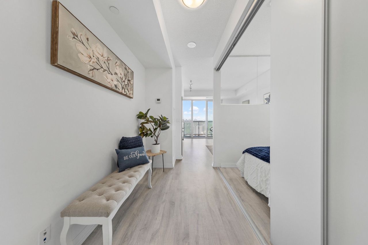 Welcome to Yonge and Eglinton, where luxury and convenience meet in the heart of the city. This elegant 1-bedroom, 1-bathroom condo offers a stylish and comfortable living space in one of Toronto's most sought-after neighborhoods. Kitchen W/Integrated Appliances, Quartz Counters & Backsplash, 9 Ft Ceiling, Laminate Flooring Throughout, Mirrored Closets, And A Spacious Balcony W/Unobstructed Sw Views. Incredible Amenities: Roof Garden W/Infinity Pool, Gym, Yoga Studio, Movie Room, Billiards, Party Room, Bbq, Guest Suites, Visitor Parking And Concierge.Built In Stainless Steel Appliances (Fridge, Cooktop, Dishwasher, Microwave), Quartz Counter Top, Washer And Dryer, Custom Roller Shades And Builder's Light Fixtures