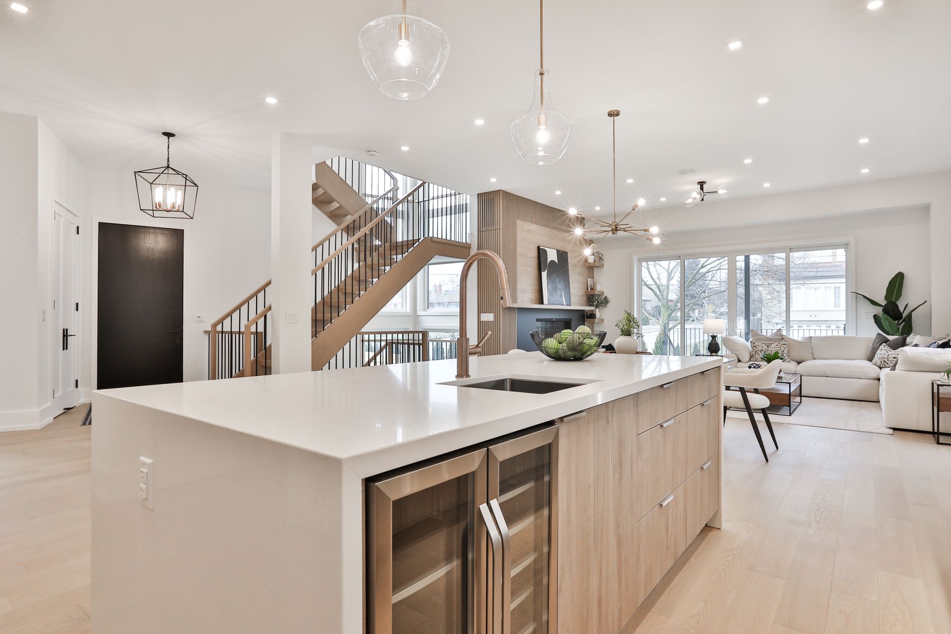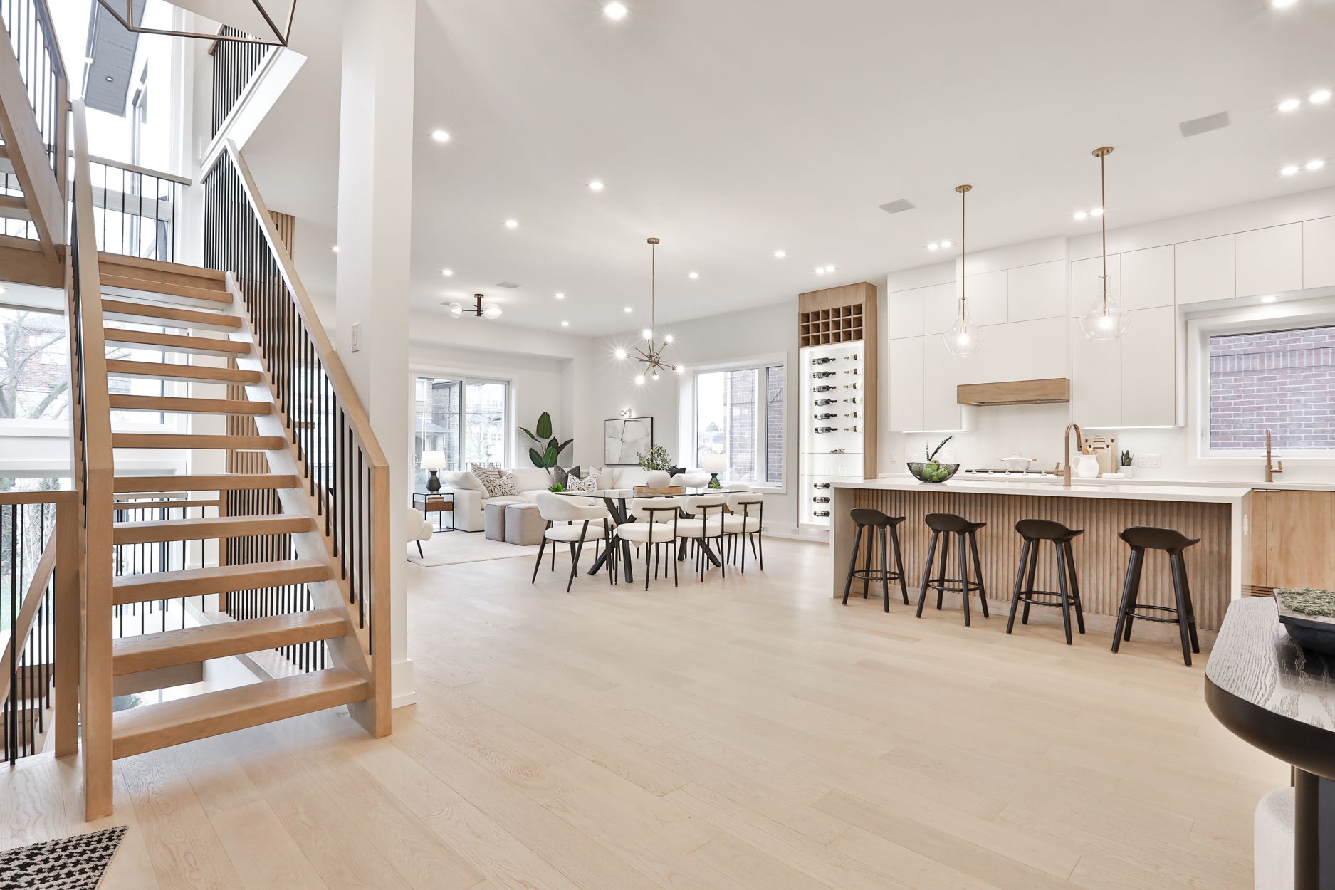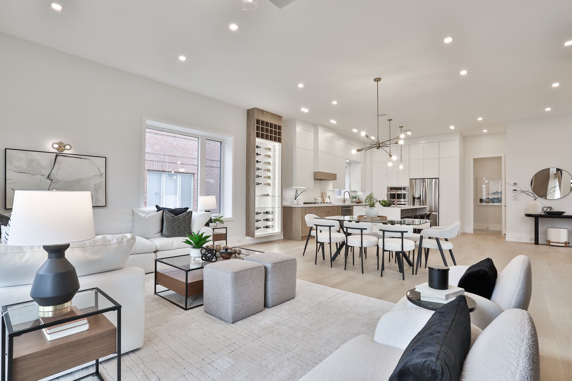 Luxurious custom home in a desirable neighbourhood. This stunning custom-built residence offers over 4,500 square feet of luxurious living space, thoughtfully designed and flooded with natural light. A true showpiece of impeccable craftsmanship and timeless style, this home presents an extraordinary opportunity for discerning buyers. Step inside to over 10-foot ceilings and an open-concept layout, perfectly tailored for modern family living. The gourmet chefs kitchen features a large centre island with breakfast bar, quartz countertops and a custom-built wine cabinet accent wall. Flow effortlessly into the spacious dining area, which overlooks the impressive family room. Anchored by a stunning gas fireplace with an elegantly crafted fluted wood surround, this space provides a seamless walk-out to the private terrace and landscaped yard. An oversized main floor office doubles as a formal sitting room, adding versatility to the main level. The second floor offers a serene primary retreat, complete with a spa -inspired ensuite and a generous walk-in closet plus three additional well-appointed bedrooms, 2 beautiful bathrooms and the convenience of an upper-level laundry. The lower level is designed to impress with exceptional ceiling heights, a full second kitchen, and a sprawling space ready for endless possibilities - perfect for a home theatre, gym, or multi-generational living. Thoughtfully designed with a side entrance, rough-in for an additional laundry, and direct access to the three-car garage (including double-height ceilings for a car lift), this level adds unparalleled functionality and luxury. Nestled in a highly sought-after location, this home offers unmatched convenience near schools, major highways, public transit, and serene parks. A true designer masterpiece, this residence effortlessly combines elegance, comfort, and practicality - perfect for today's modern lifestyle. Seller can add privacy fence and/or create lower level bedroom if desired by Buyer.