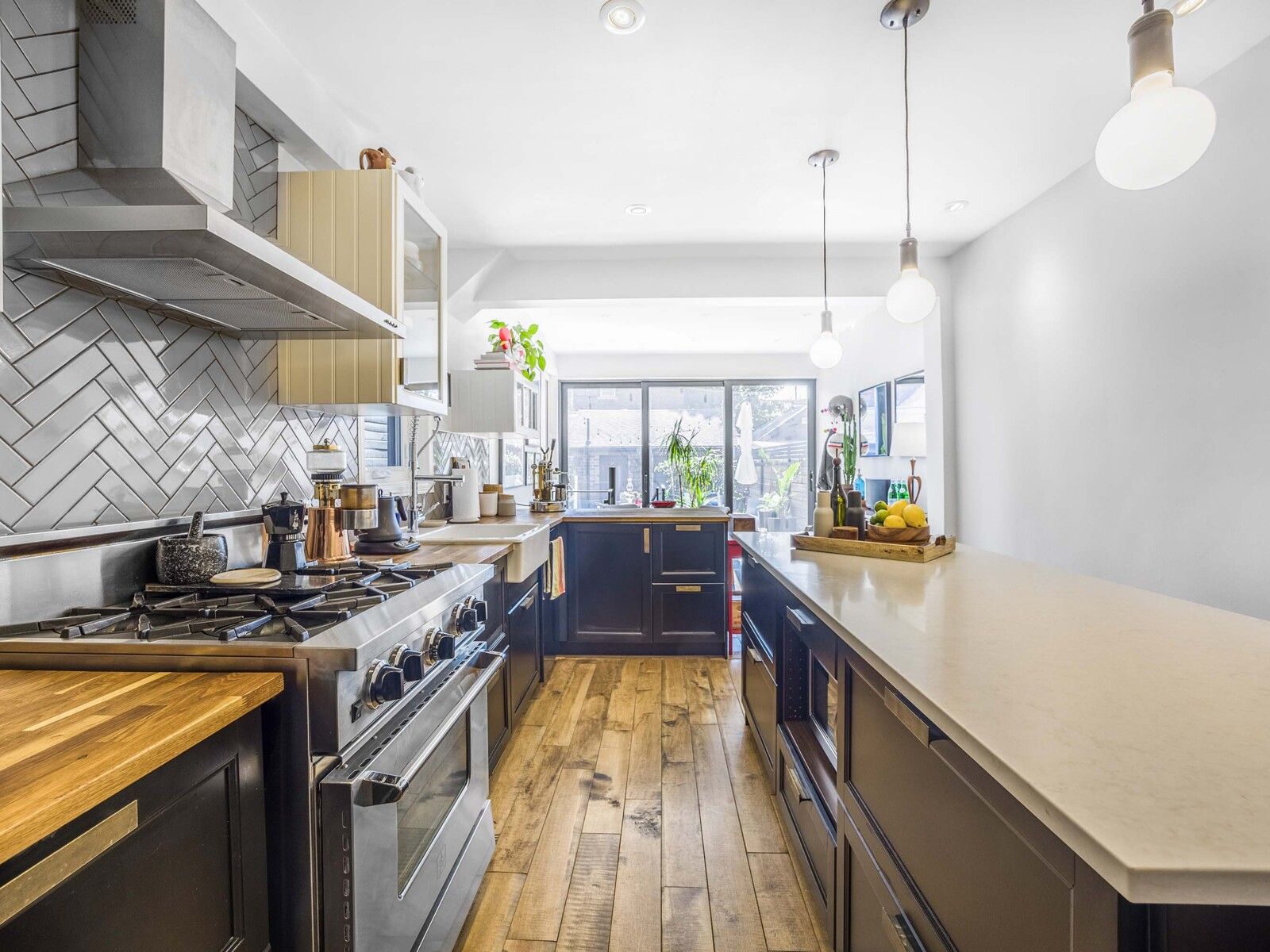 This fully renovated Victorian-style home blends timeless charm with modern sophistication. Featuring soaring 10-ft ceilings, thoughtful design upgrades, and a seamless indoor-outdoor flow, the main living space opens to a breathtaking 14-ft floor-to-ceiling glass wall/patio door that frames the lush backyard and private terrace. Completely renovated in 2020 including the basement with new roofing throughout and a newly replaced garage roof (2024), this home offers peace of mind and move-in-ready convenience. The lower-level in-law suite includes a private separate entrance, full kitchen, and dedicated laundry, providing exceptional flexibility for potential rental income or extended family living. Located steps from some of the best restaurants, shops, and cafes in the West End, and just a 2-minute walk to the UP Express be downtown in 10 minutes or at Pearson in 20. The home includes completely updated electrical (2016), rough-in ready for secondary/separate laundry room, and a large double garage with laneway home potential. Enjoy a luxe, spa-inspired main bathroom with a clawfoot tub, oversized glass shower, and elegant finishes. Spacious bedrooms, rich natural light, and thoughtful details throughout make this a rare opportunity in one of Toronto's most vibrant and connected neighborhoods.