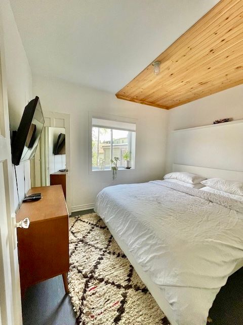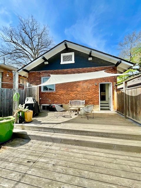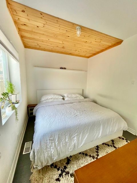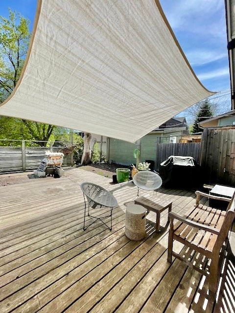 Welcome to your perfect condo alternative! This charming home features one plus an enclosed den or small bedroom, complete with a comfortable king bed in the primary bedroom. The open-concept main floor offers seamless flow and functionality, while the recently renovated main floor bathroom adds a touch of modern luxury. Fully furnished and upgraded with modern amenities, this residence effortlessly combines charm with convenience. Step outside to the south-facing backyard with a beautiful deck, perfect for relaxation and entertaining, while the gardener's dream front yard adds to the home's curb appeal. Street parking with permit is available for added convenience. Available only for a short time stay, this home welcomes tenants from August 1st to October 1st, offering a cozy retreat in a desirable location. Experience the comfort, character, and convenience of this delightful abode during your stay!Enjoy laundry in the basement & street parking w/ a permit. Located across from Cassels Playground & just a 4-minute walk to Norway Jr. P.S., it's also close to The Beach's shops, restaurants & amenities including Woodbine Beach Park.