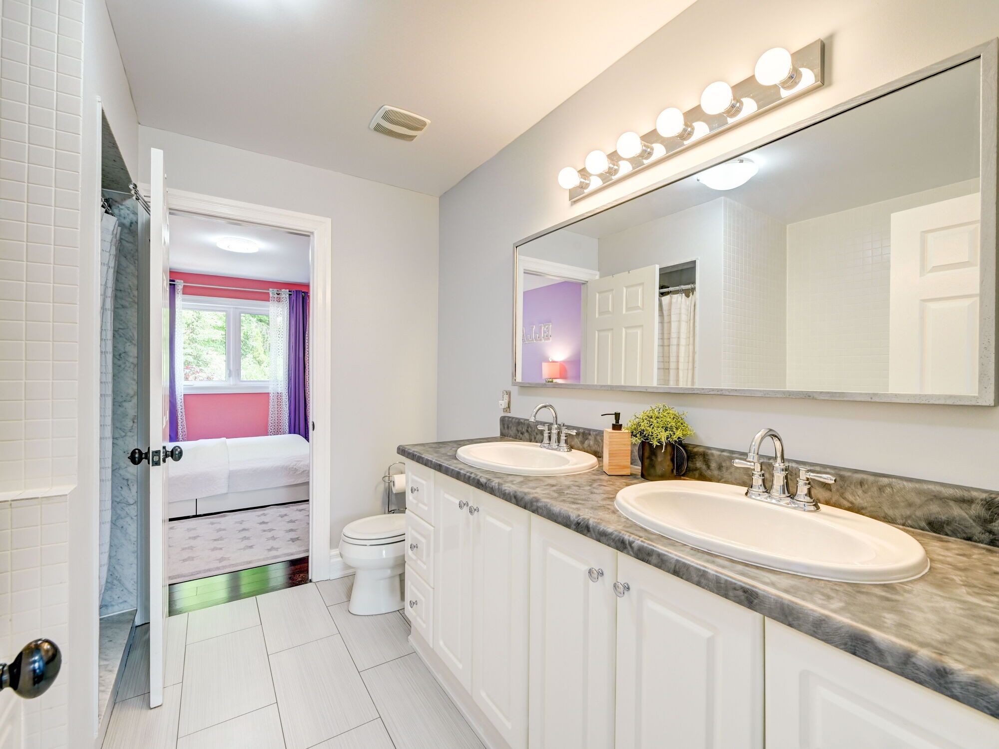Gorgeous 5 Bedroom Detached Home In South Sunnylea! Bright & Spacious Main Floor Offers 2900 sqft w/9' Ceilings & Hardwood floors, Large Living Room Combined w/ a sitting area w/ Gas F/P. Gourmet Kitchen w/ Quartz Counter, Gas Stove & B/I Appliances, Breakfast Bar. Open Concept Formal Dining Room, Spacious Sun Room w/ Walk-out to large Deck w/ a private Yard. Over 350 Sqft Primary bedroom w/ a Spa-Like bath! 2 Bedrooms w/ semi-Ensuite Bath, 1 Bedroom converted to a dream walk-in closet, 2nd floor laundry! Finished basement w/ large Rec Room & Play area, 3 pc bath, 1 bedroom & kitchenette. 1 car garage & parking for 5 cars on Driveway.Walk to lake Ontario, Steps to schools & Jeff Healey Park, well rated school district, transit & Doorsteps. Reno kitchen & baths, Newer Main & garage doors, newer hdwd floor & tiles, upgraded new fireplace, newer patio doors & deck & more