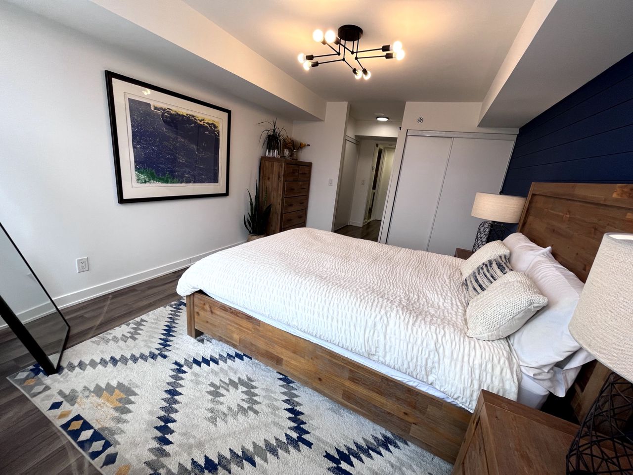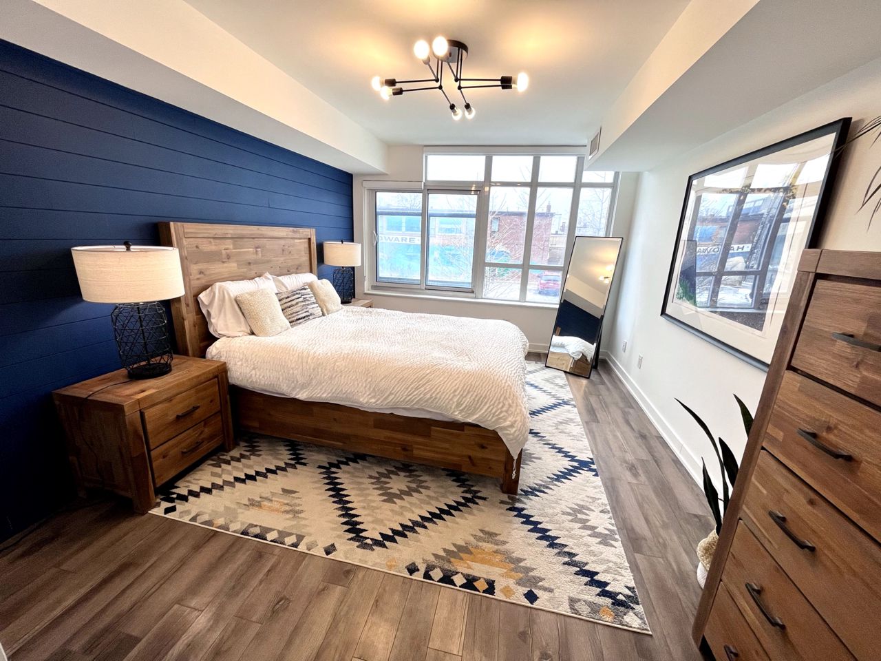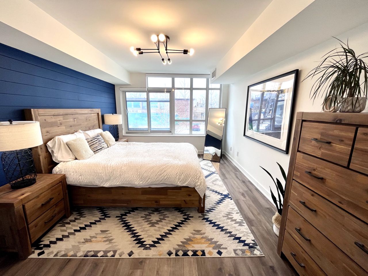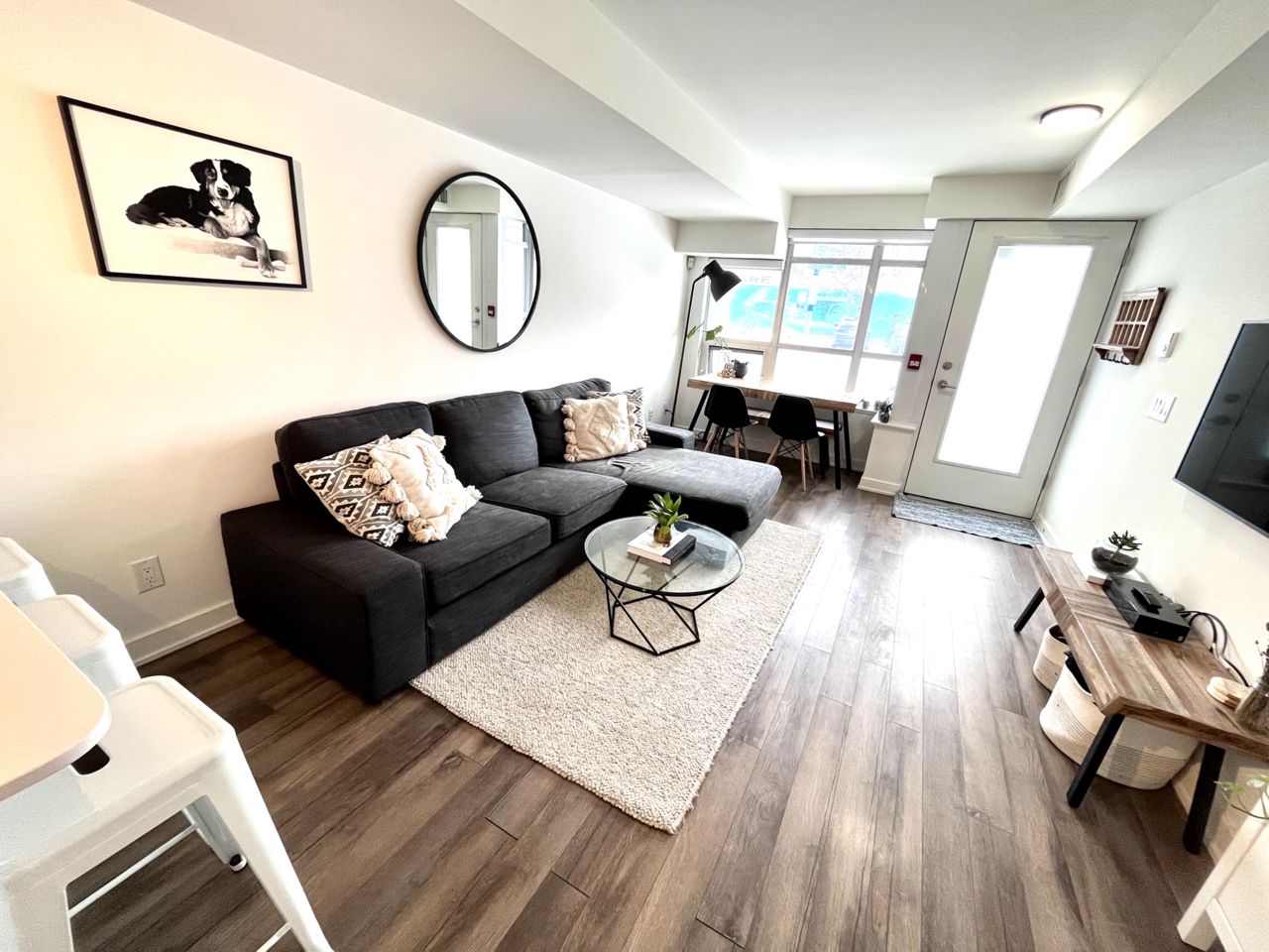 Welcome to this stunning 2-storey townhome in the heart of Mimico, where urban lifestyle meets a serene retreat. Only steps from the lake, you will fall in love with the location and convenience this property offers. Hop on the streetcar line out your front door or take a 10-minute walk to Mimico Go Train to connect directly to the center of downtown Toronto.With an open concept design, this beautiful 946 sq. ft. townhome offers 2 bedrooms, 2 updated full bathrooms, and luxury finishes throughout. The large primary suite features a 3-piece ensuite with glass shower, two double closets, and a stylish accent wall. Entertain friends and family in the modern open concept kitchen and living space, or lounge atop the roof terrace and BBQ area with striking views of the lake, marina, and city skyline.This property is ideally located west of the city close to the airport, major highways, Mimico Go Train, TTC streetcar line, Lake Ontario trails, lakeshore shops and restaurants, San Remo Bakery, and much more! Enjoy both the vibrancy of city living and the picturesque natural surroundings of a family-friendly neighbourhood. Additional features include one underground parking space, an owned locker, personal bike storage, and convenient ensuite laundry. The building offers fantastic amenities such as a rooftop terrace, fitness center, party room, 24-hour concierge/security guard, and visitor parking. Maintenance fees cover most of your monthly expenses, including heat and water, making homeownership easy and stress-free. Dont miss your chance to own this incredible townhome in one of Torontos most desirable lakeside communities.