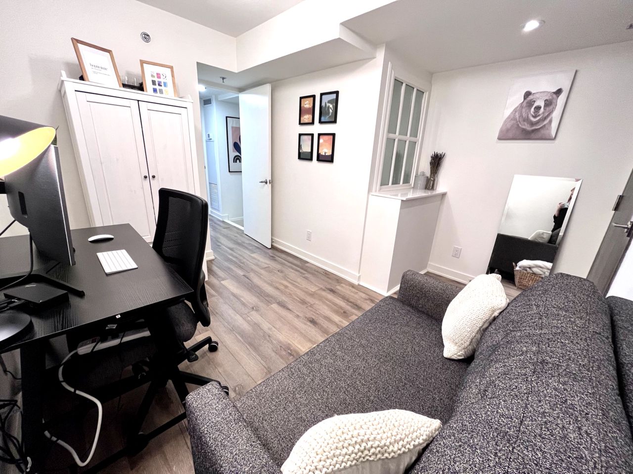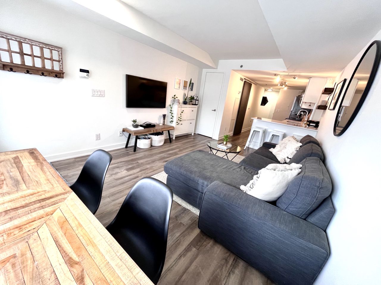 欢迎来到这个迷人的双层联排别墅,位于米米科市中心,在这里,都市生活与宁静休憩相遇。 仅需几步即可到达湖边,您一定会爱上这个房产所带来的便利和位置优势。 从您家门前的有轨电车线路出发,或步行10分钟即可到达米米科市Go火车站点,直达多伦多市中心。 采用开放式设计,这套美丽的946平方英尺的联排别墅拥有2间卧室,2个翻新的全套浴室,以及奢侈的整体装修。 主卧室宽敞,拥有3件式套间浴室、玻璃淋浴间,两个步入式衣柜和一个时尚的特色墙。 在现代化的开放式厨房和起居空间里招待朋友和家人,或者在屋顶露台和烧烤区放松身心,欣赏令人惊叹的湖泊、码头和城市天际线的景色。 该房产地理位置优越,位于城市西部,靠近机场,主要高速公路,米米科市Go火车站点,多伦多市有轨电车线路,安大略湖步道,湖滨商店和餐馆,San Remo面包店等等! 享受城市生活的活力和家庭友好社区如画的自然环境。 其他特点包括一个地下停车位,一个自有储物柜,个人自行车存放空间,以及便利的套内洗衣设施。 该建筑提供卓越的便利设施,例如屋顶露台,健身中心,聚会室,24小时礼宾/保安人员,以及访客停车位。 每月管理费覆盖了大部分的月度支出,包括暖气和水,使房主生活轻松,无压力。 不要错过在多伦多市最理想的湖畔社区拥有这套令人难以置信的联排别墅的机会。