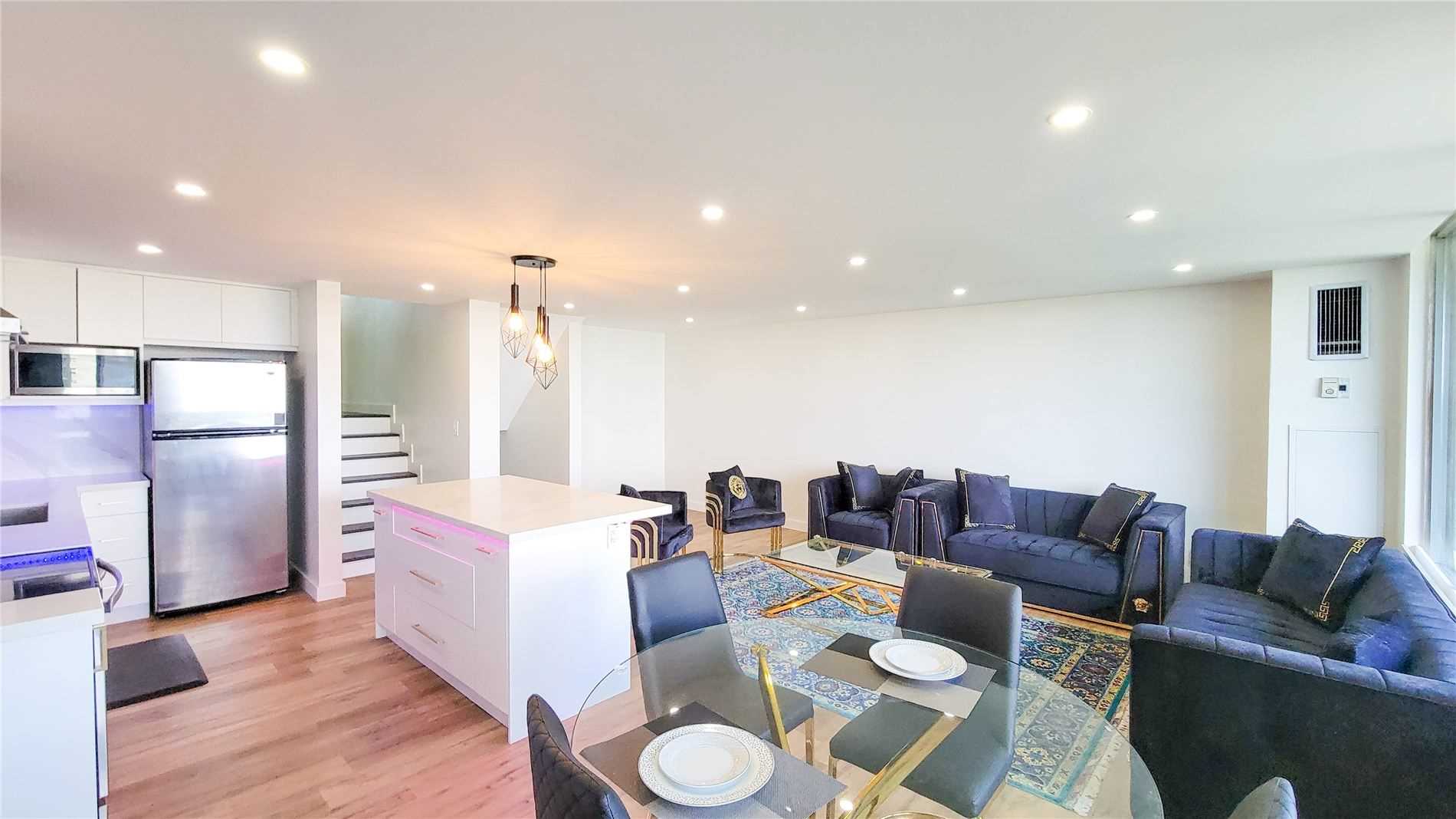Gorgeously Finished Multi-Level! 2 Bed + Den. 1 Bathroom, Just Minutes From Hwy 400/401, Close To Groceries, Restaurants, Ttc, Secure Building With Security On Site. Breathtaking Unobstructed View Of Cn Tower/City Skyline. Open Concept Main Floor For Ease Living, Upgraded Bathroom & Kitchen With S/S Appliances/ Quartz Counters/ Custom Cabinetry. Pot Lights Throughout Entire Unit! Privacy Galore = Corner/End Unit! S/S Fridge, Stove, Built-In-Dishwasher, All Elfs, Window Coverings As Shown/Seen In Pictures. Amenities Galore! Indoor Pool, Well Equipped Gym, Sauna, Billiard Rm W/2 Tables, Tennis Crt, Party Room.