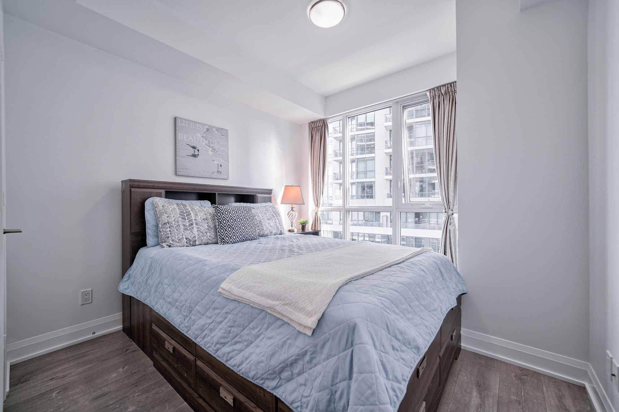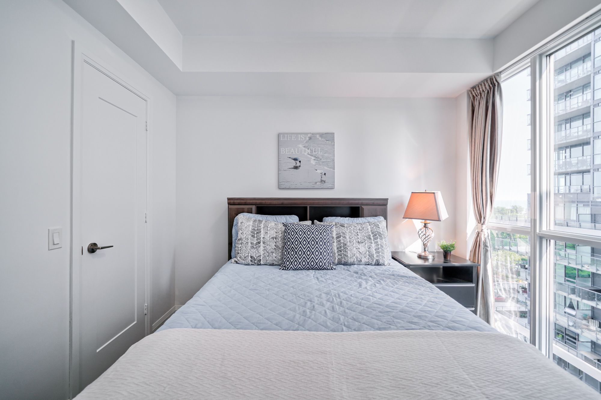Riva Del Lago Is A Monarch Built Luxury Condo In Beautiful Humber Bay Shores Waterfront Neighbourhood! Green Building, Stunning South West View Of Lake & Humber Bay & Park from Bedroom, Living Room & Balcony ! Floor To Ceiling Windows,Bright Open Concept W Natural Sunlight, Functional Layout,9 Ft Ceiling, Living & Master Room Walk Out To Spacious Balcony. Bedrooms W Walk In Closet & B/I Organizer. Upgraded Modern Kitchen W Ample Cabinet Space, Quartz Counter Top & High End Stainless Steel Appliance. Parking & Locker Included.5 Star Amenities: 2-Storey Main Lobby Facing Water, Gym, Indoor Pool, Hot Tub, Sauna, Party/Meeting Room, Billiards Room, Theatre, Games Room, Yoga Studio, Visitor Parking, Guest Suites, 24/7 Concierge. Step To Lake Ontario Waterfront, Parks, Trails, Restaurants, Metro, Shops, Public Transit. Close To Gardiner Expressway, Easy Access To HWY Qew & 427. Minutes Away From Everything In Downtown Toronto.Includes 1 Parking & 1 Locker. S/S Fridge, S/S Stove, S/S Dishwasher, S/S Microwave, Ss Range Hood, Washer And Dryer, All Elf's And Window Coverings , Closet Organizer In Second Bedroom. All Keys, Fobs & Remotes, Garage Door Opener.