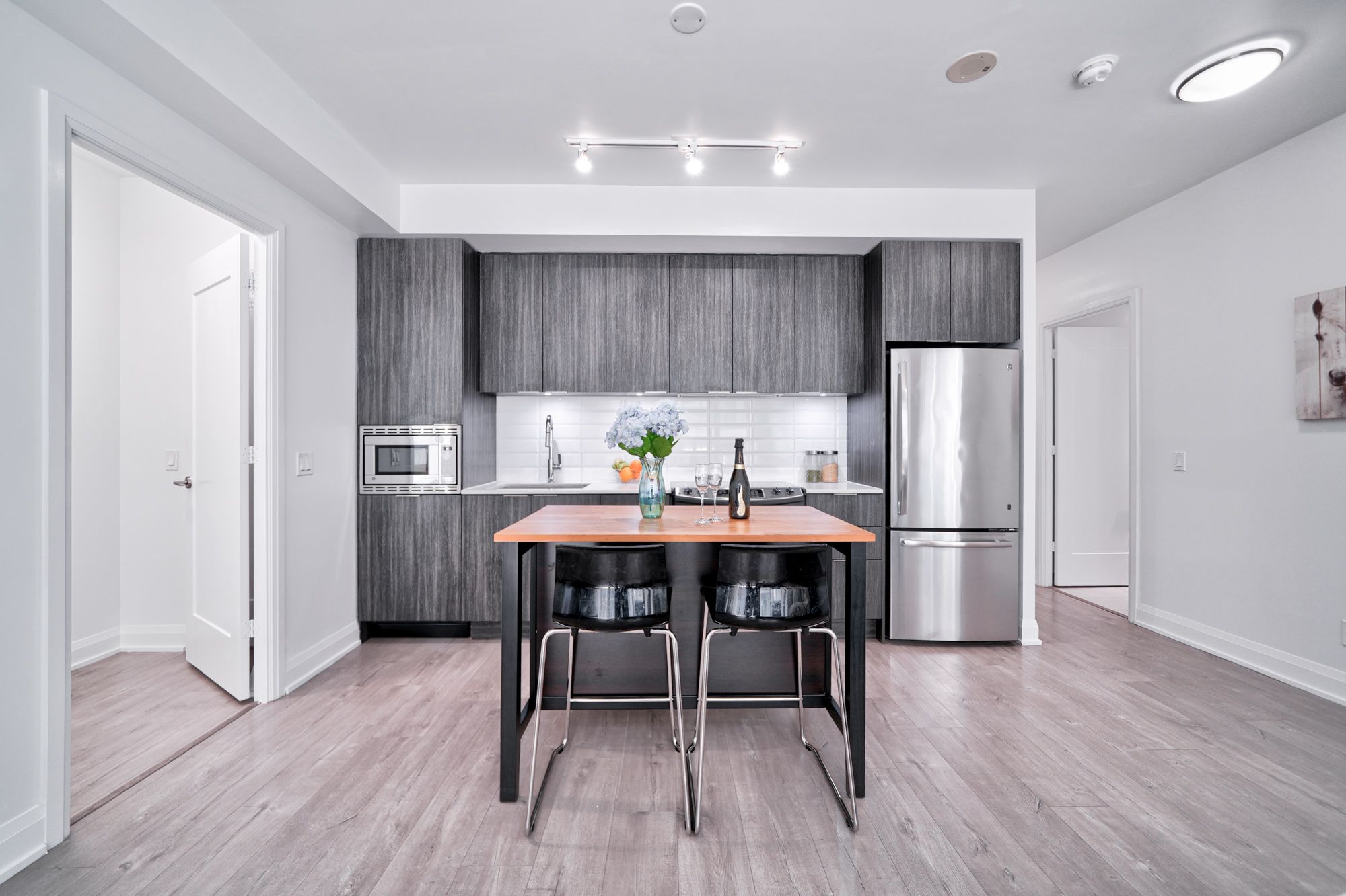 Backsplash Quartz Counter Stainless Steel Appl