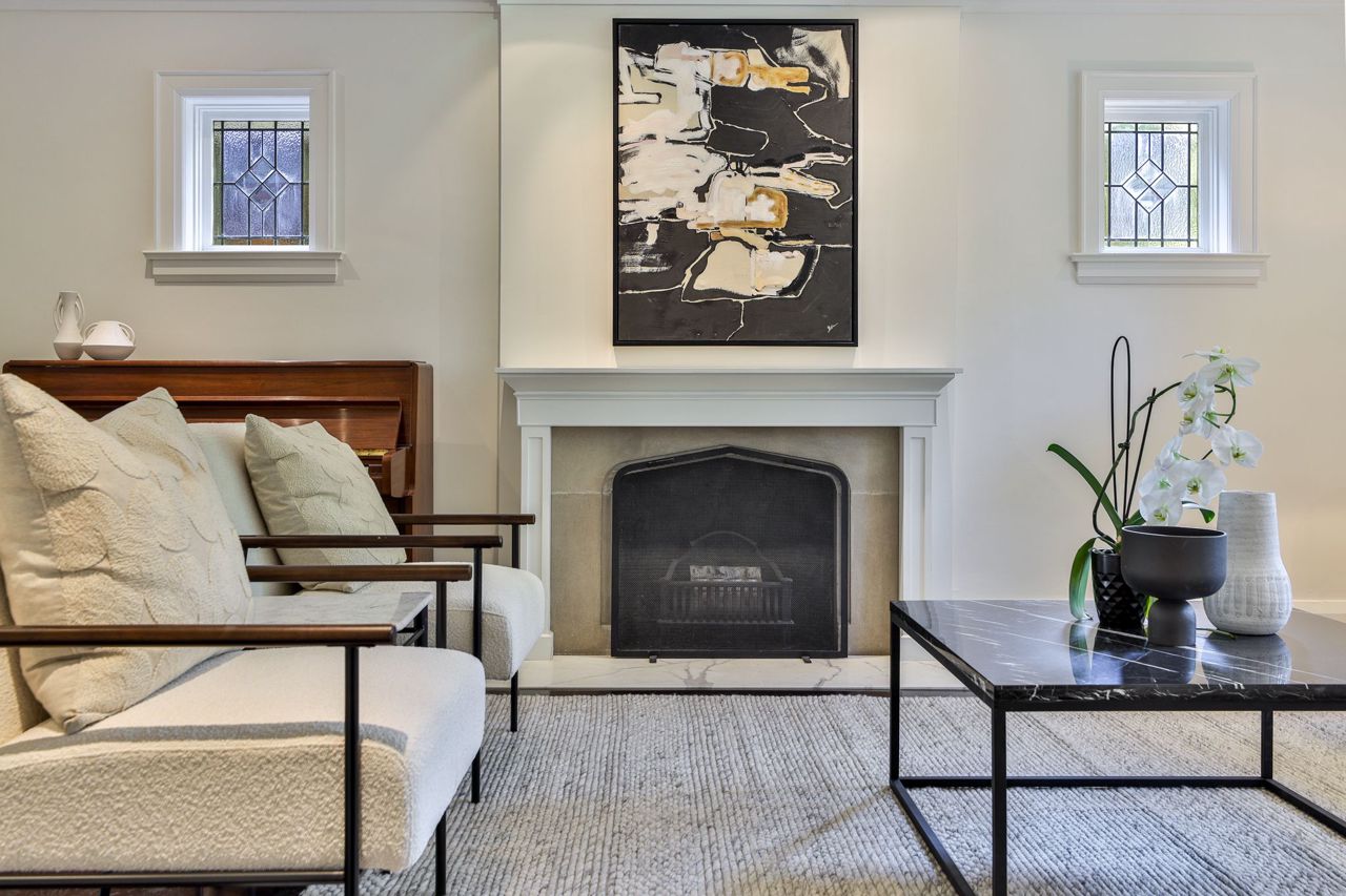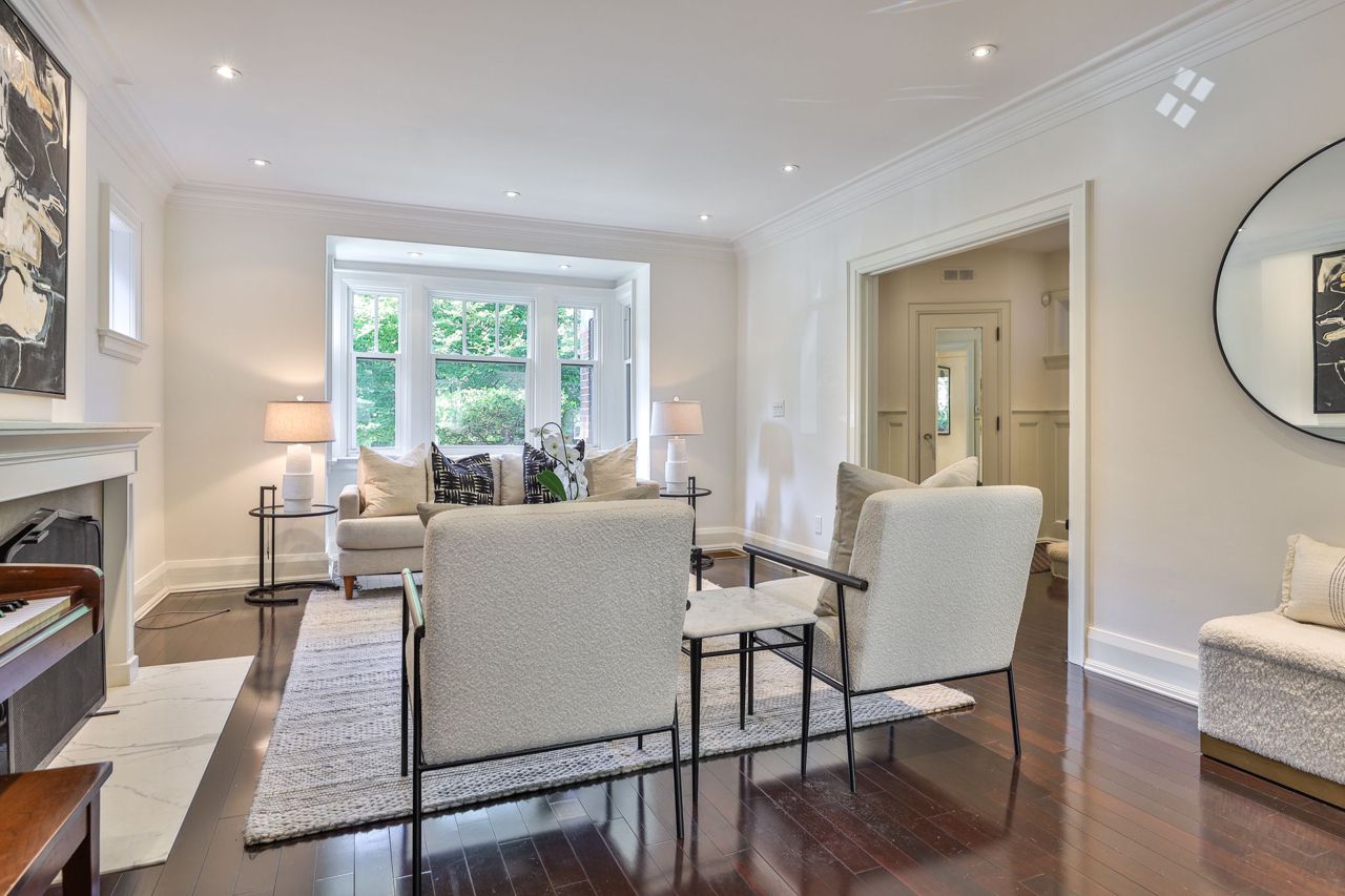 Hardwood Floor Marble Fireplace Bay Window