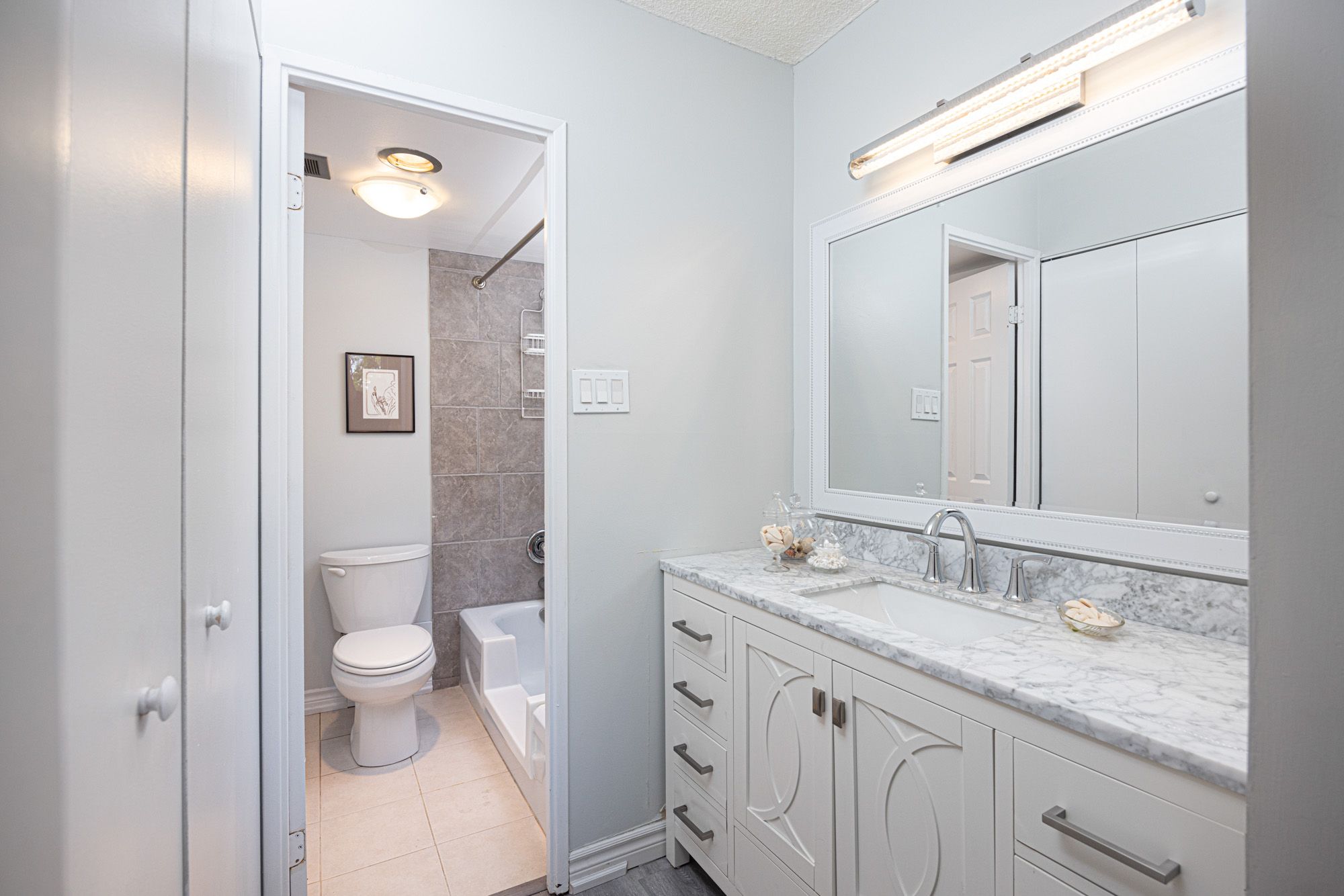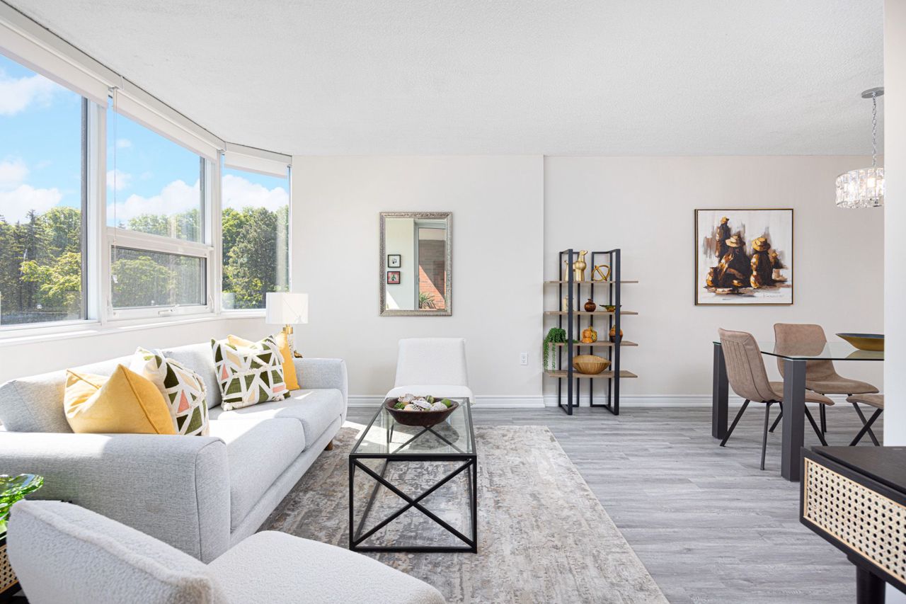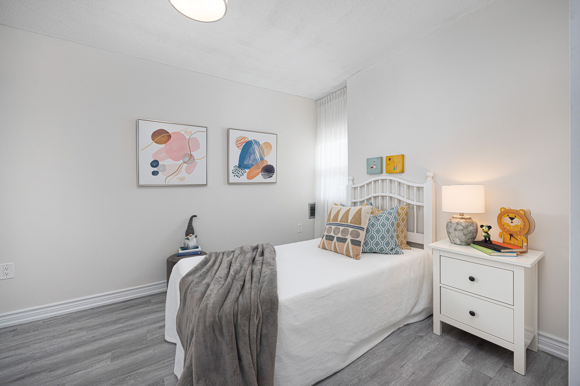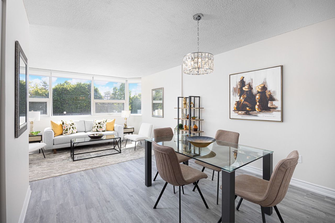 Are You Going To Scarborough Wood? Step Into This Gorgeous Renovated and Updated Two Bed, Two Bath Unit. The Eat-in Kitchen has Quartz Counters, Dishwasher (New), Fridge, Stove and Rangehood (New), Large Undermount Sink with Gooseneck Faucet and a Tiled Backsplash. The Primary Bedroom has Two Closets and Ensuite Bath with Separate Vanity. The Second Bedroom has a Closet, Double Entry Bifold Doors and a Window Overlooking the Balcony. There is Plenty of Storage Throughout with a Proper Laundry Room off the Tiled Entry Foyer, a Large Coat Closet and Linen Closet. Brand New Laminate Floors, Updated Lighting and Freshly Painted Throughout. Brand New Window Blinds in Living Room. Parking and Locker Included. Maintenance Fees Include Basic Cable TV and Water. Pets Restricted (No Dogs Allowed). Amenities Include a Fitness Centre, Party Room, Outdoor Pool, Visitor Parking, Underground Parking Garage, 24 Hour Security, Enter Phone System and a Tennis Court.Amazing Location Close To Kingston Road, TTC, Guildwood Go Station, No Frills, Food Basics, LCBO, M&M Meat Shops, Heron Park Community Centre, Joseph Brant Public School, Sir Wilfred Laurier C.I. And More!