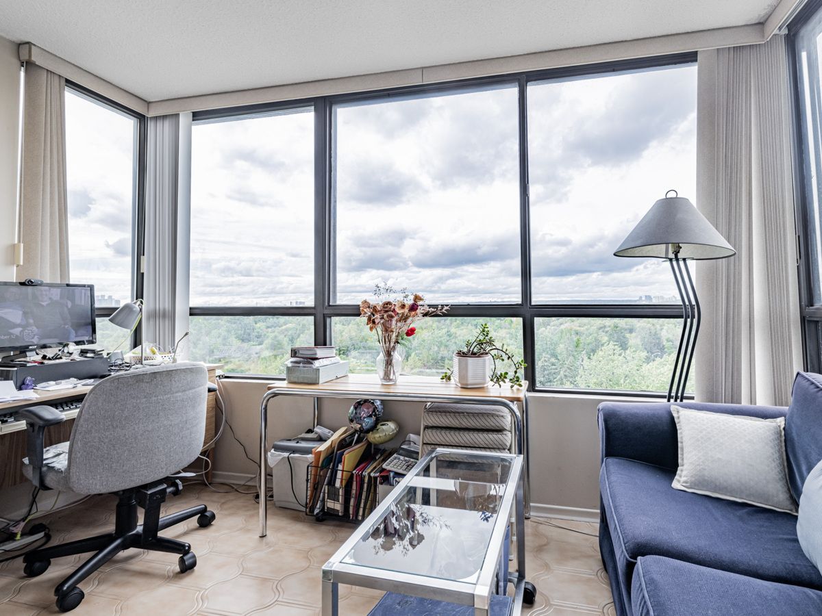 Welcome To The Hemispheres! Million Dollar View Overlooking The Lush Trees Surrounding The West Don -Over 350 Acres of Green Space. Look to the North and you have some of the best seats for the fireworks show put on by Wonderland seasonally. Over 1600 Square Feet Including A Newly renovated kitchen, Entertainers Living/Dining Space, Family Room Open to Kitchen, Solarium/ Office, Two Spacious Bedrooms And Great Storage. Great Building Amenities Include; Pool, Gym, Sauna, Party Room & More...See Attached Floor Plan for Room Measurements