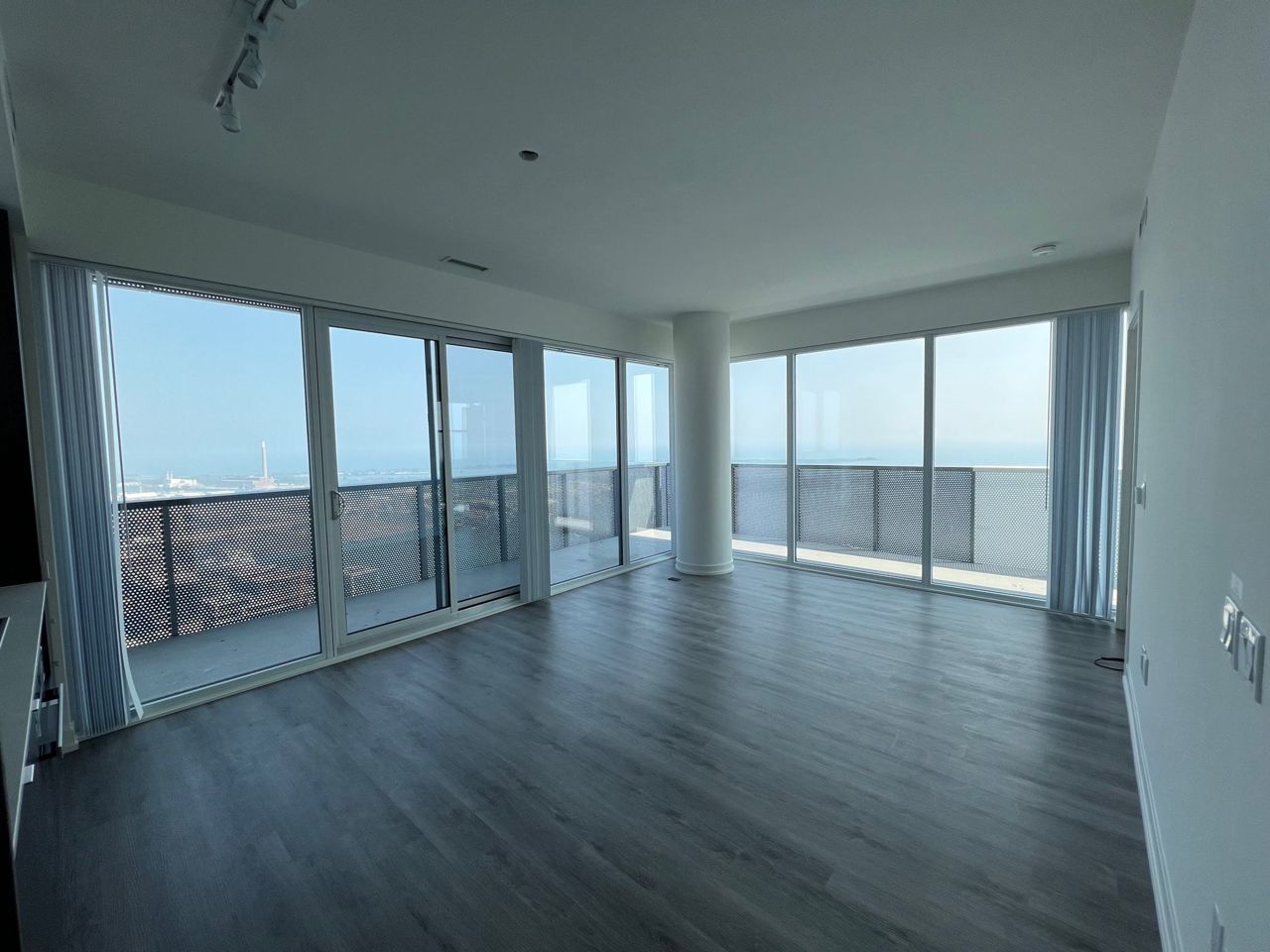 Welcome To The Brand New Suite at Most Sought After Sugar Wharf East Tower By Menkes! South east corner unit with 3 bedrooms and 3 bathrooms. 1 parking included. Stunning unobstructed lake and city views. 1011Sqft + 393 Sqft Wraparound Balcony. Bright unit with great layout and Floor to Ceiling Windows. Modern Kitchen with High End Appliances and Quartz Counter Top. Excellent location. walking distance to george brown, park, sugar beach, harbour front, st lawrence market, union station, financial district and mins access gardiner/QEW and much more.B/I Fridge, Electric Cooktop, B/I Oven, Rangehood, B/I Dishwasher, Microwave, Stacked Front Load Washer & Dryer, All Elfs & Window coverings. Internet Included!