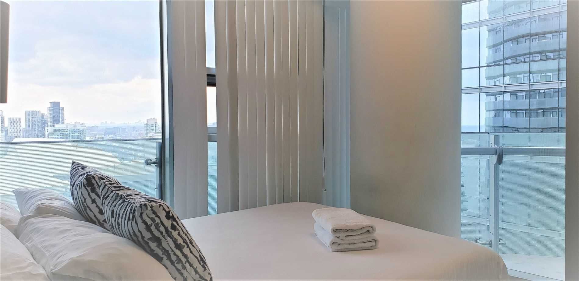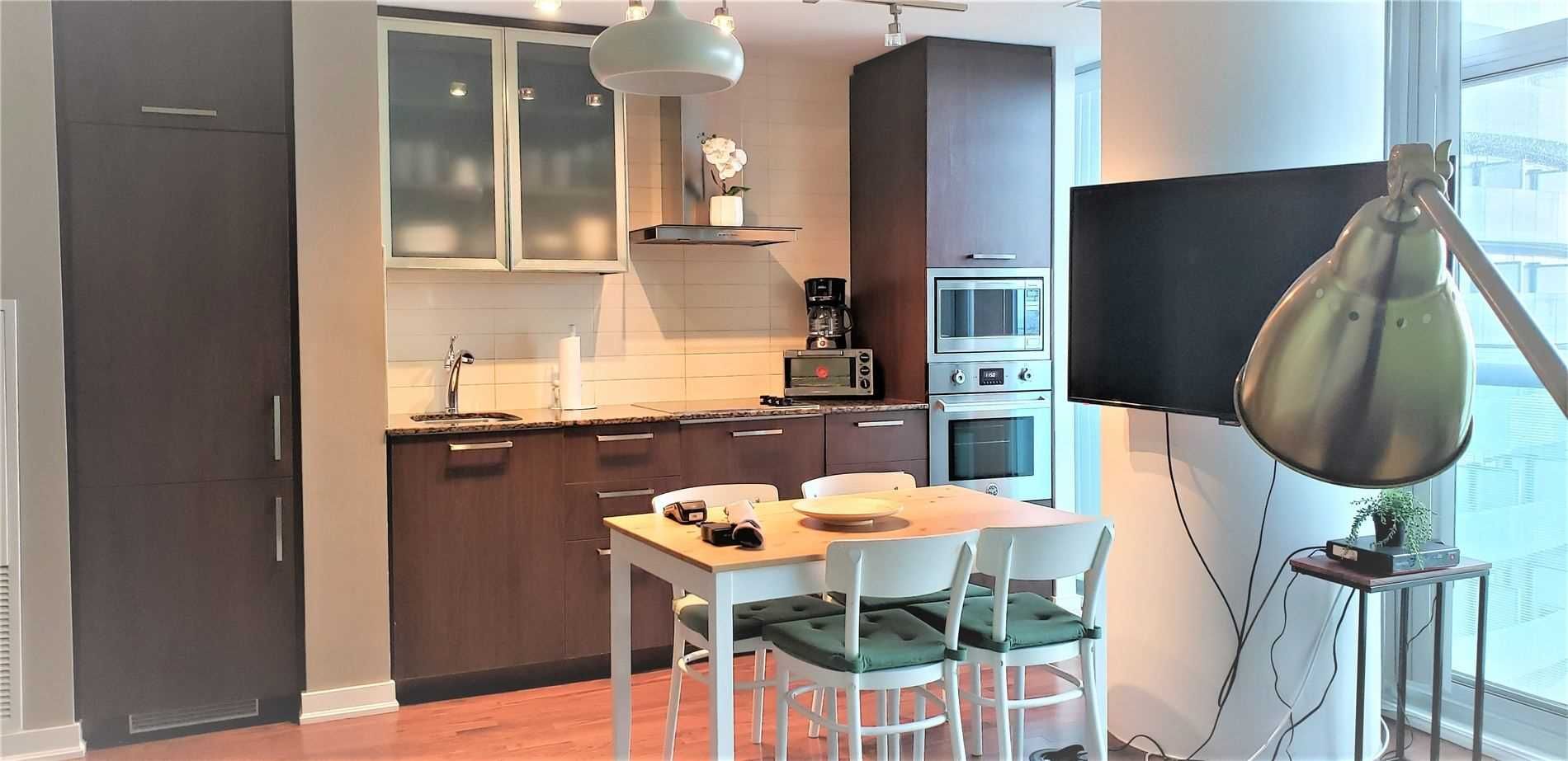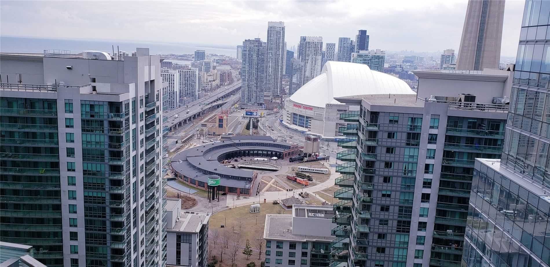 A Luxurious Open Concept Condo is located in the Heart Of Downtown In Waterfront Communities. Walking Distance To Air Canada Centre, C.N. Tower, Rogers Centre. Close To Theatre, Lakefront, Supermarket. Top Of Line Modern Amenities Include Spa With Dry Sauna, Steam Room, Swimming Pool, Hot Tub, Fitness Centre & Many More. Direct Access To Underground Pathway. Your Private large Balcony Allows For 365 Days Of Unobstructed West Views Of Daily Sunsets. Photos from previous listing.B/I Kitchen Appliances: Quartz Counters Stainless Steel Fridge, Stove And Microwave, Hood Fan. Stackable Washer And Dryer And All Electric Lights And Fixtures.