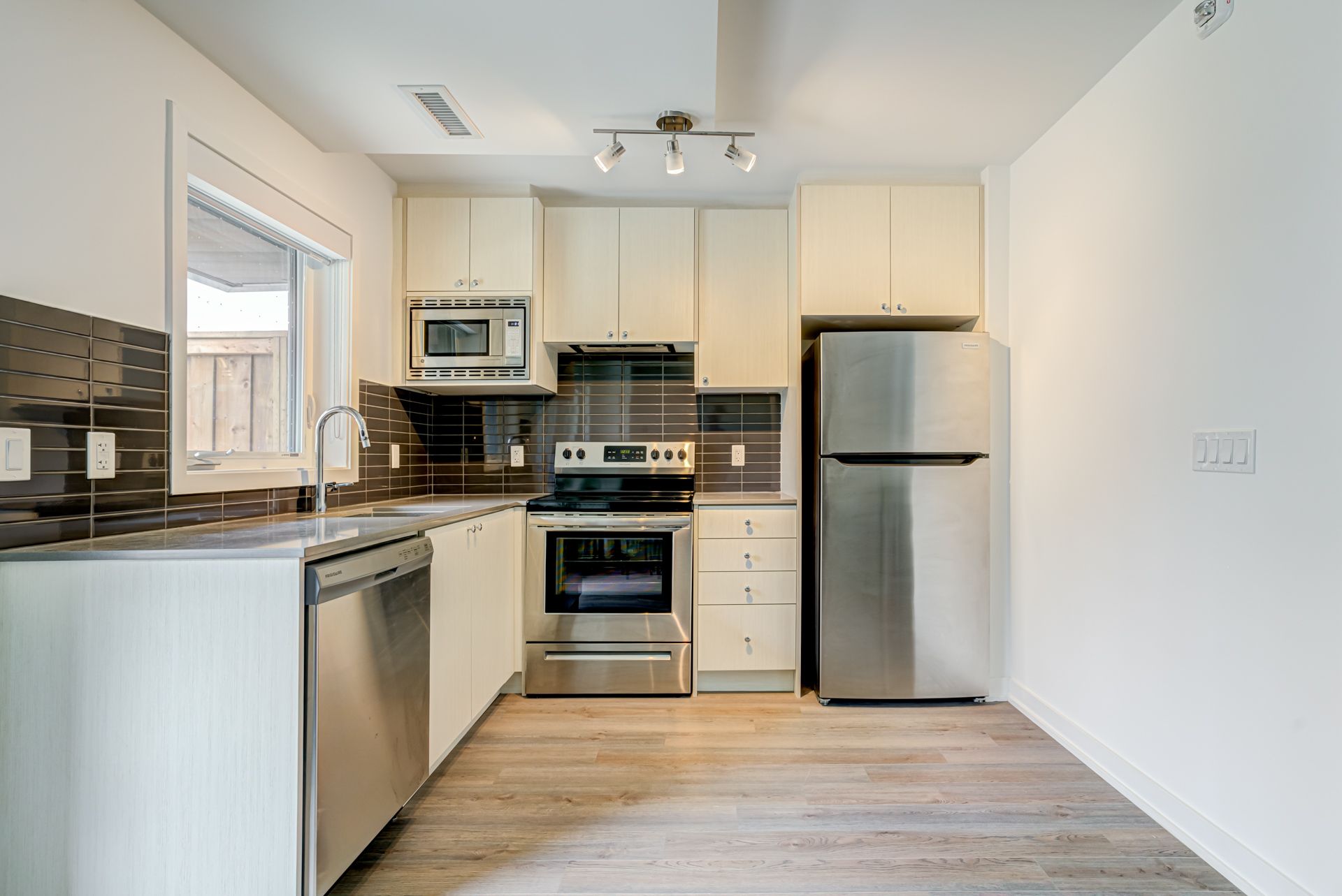 1 Yr New 2 Storey Condo w/ Large private terrace to BBQ in Downsview Park. Private entrance from Patio. Laminate flooring thru-out including bedrooms. Modern kitchen w/ Quartz Countertop, backsplash, and stainless steel appliances. 9 ft ceilings main fl in a sun-filled functional layout. Close to: Subway, Go, Yorkdale Mall, Supermarkets, and easy access to Hwy 401.Stainless Steel Fridge, Stove , Dishwasher, Microwave/Hood Fan. Stacked Washer + Dryer, B/I Roller Shades on all windows. 1 Parking 1 Locker. Property Virtually Staged. Existing Couch, coffee table, dining room table + 4 chairs, 1 mattress.