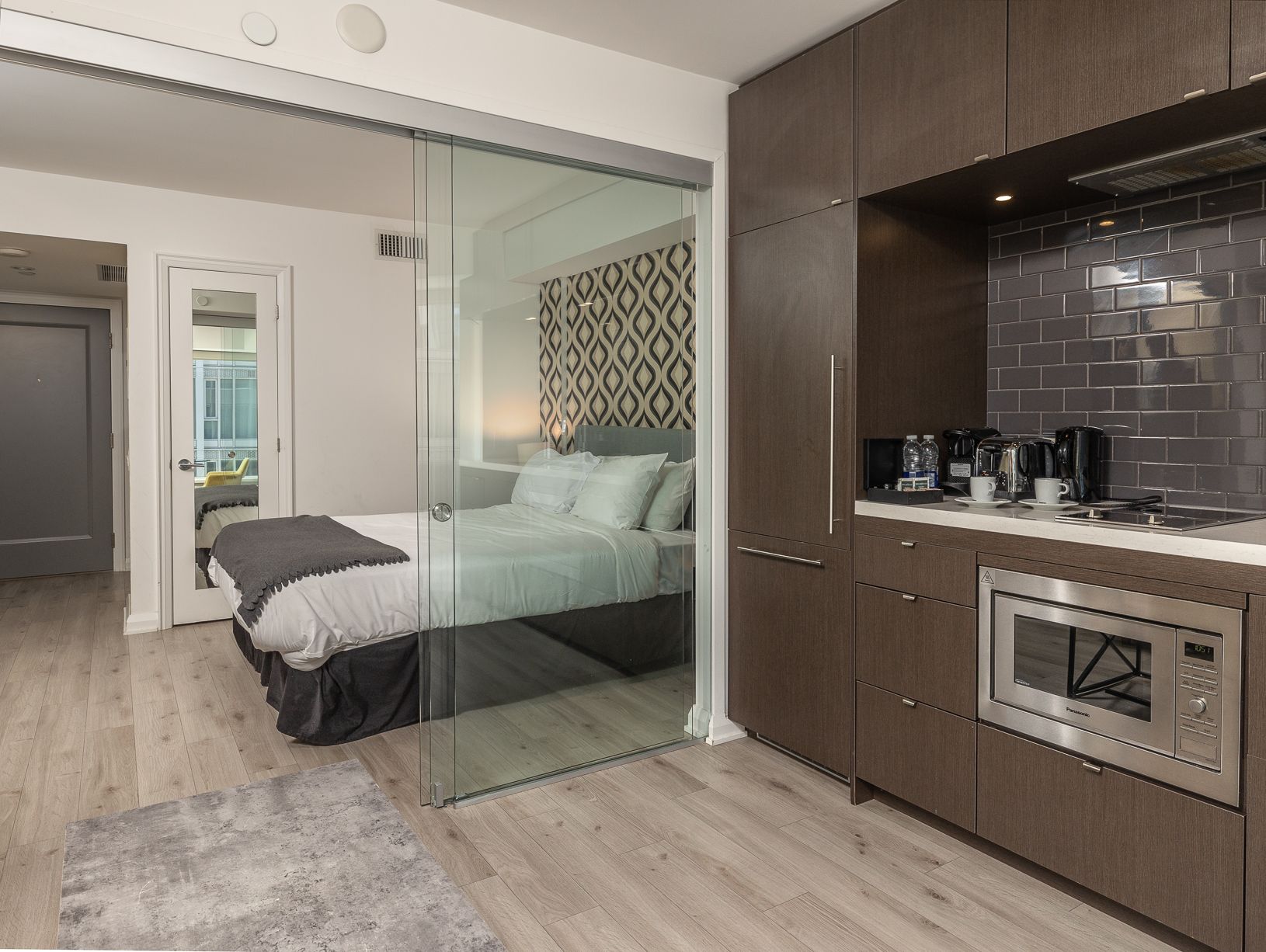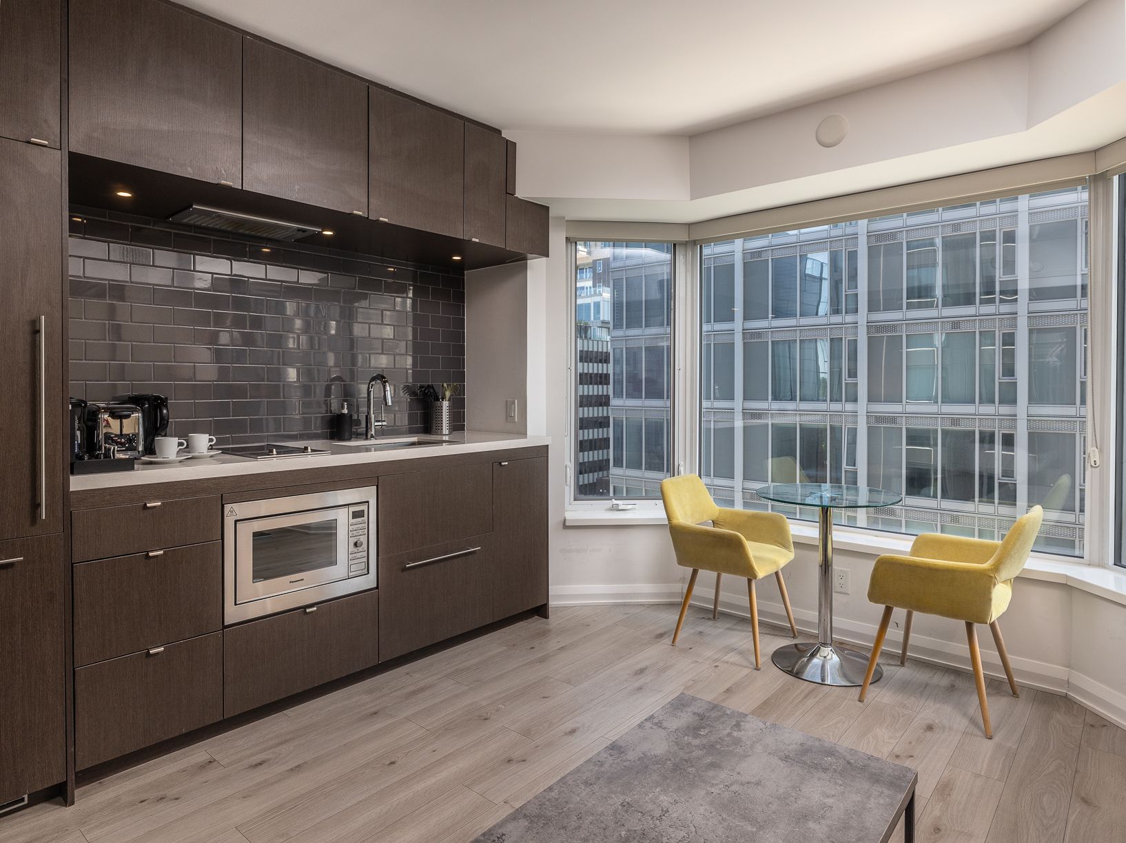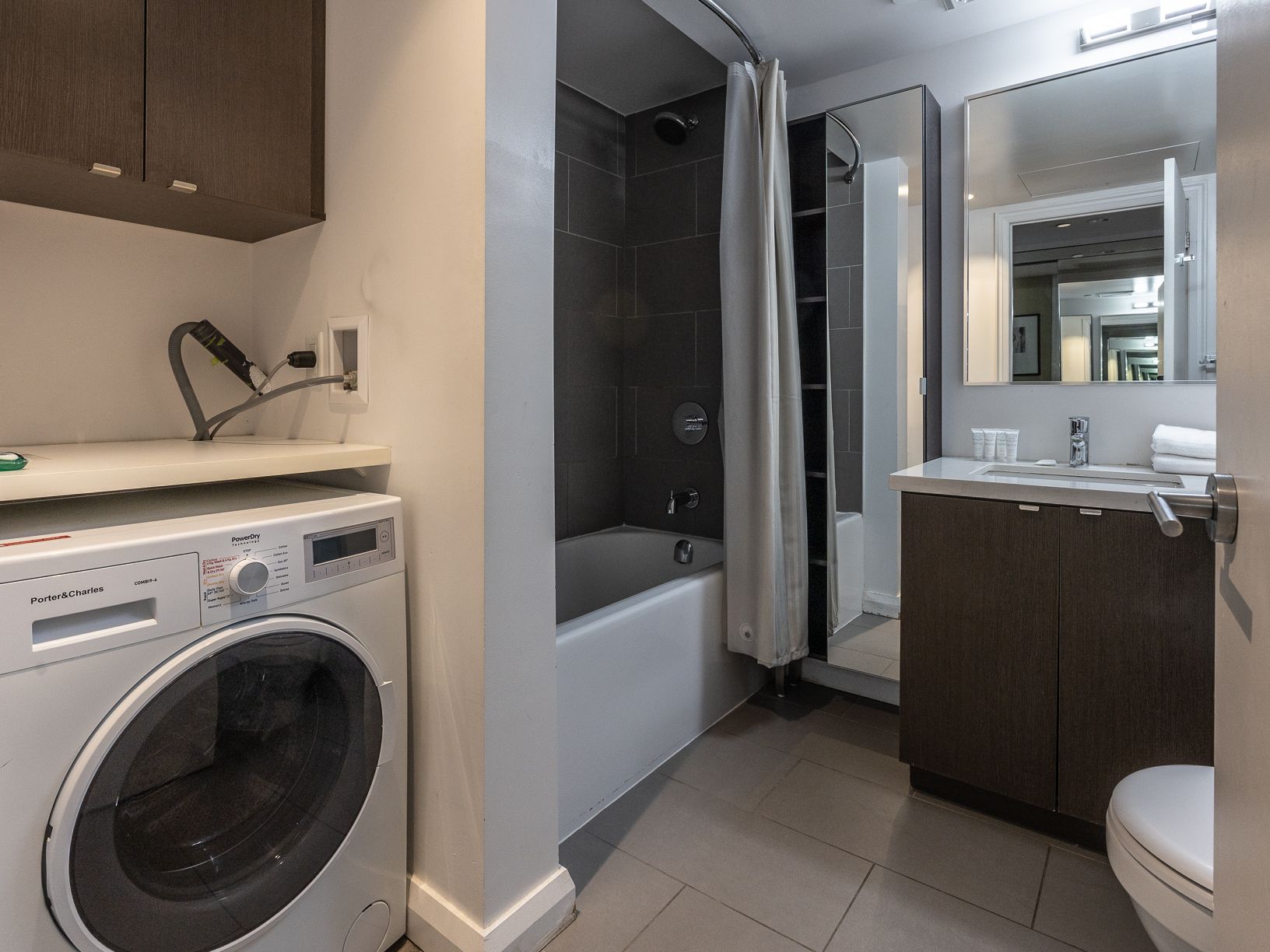 "Manhattan" setting in the heart of Yorkville. Immaculate unit. Ideal for first time buyers: move in and enjoy all this dynamic building/location have to offer! Or, assume tenant (tenant is a prof short-stay operator) for carefree income stream. Steps to transit, U of T, Eataly, Bloor Street, Whole Foods, Mink Mile, Hazelton and more.Fridge, cooktop, microwave/convection and dishwasher. Ensuite laundry in bathroom, sliding glass panel for BR privacy, roller blinds, electric light fixtures not belonging to tenant. Storage locker on same floor, #1010. 24 hour concierge.