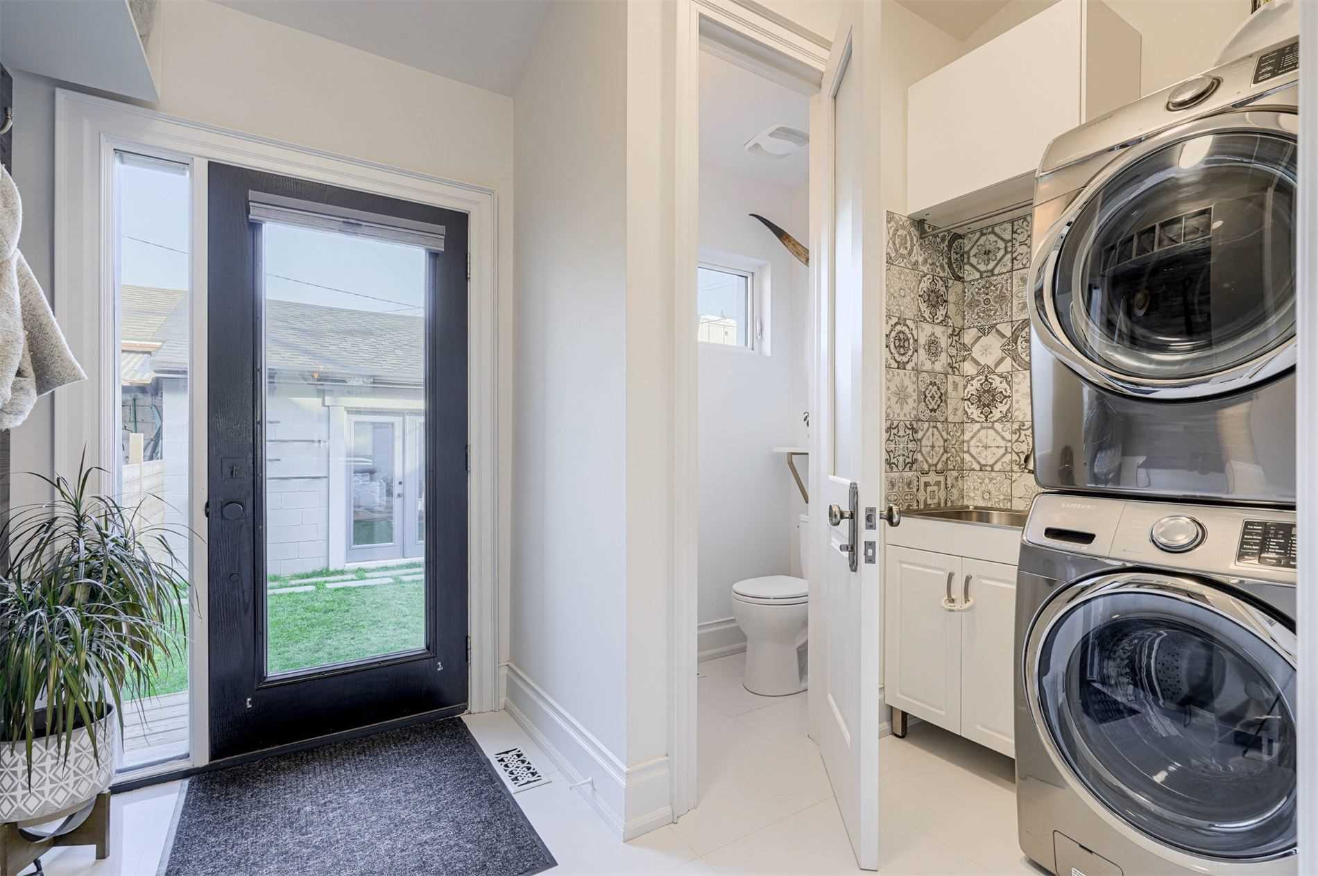 Porcelain Floor Combined W/Laundry O/Looks Backyard