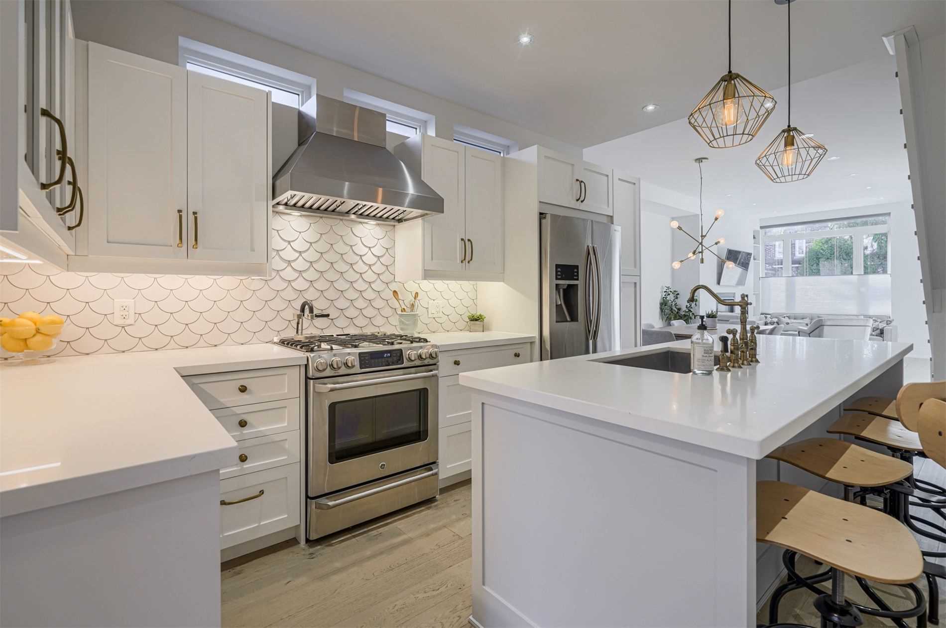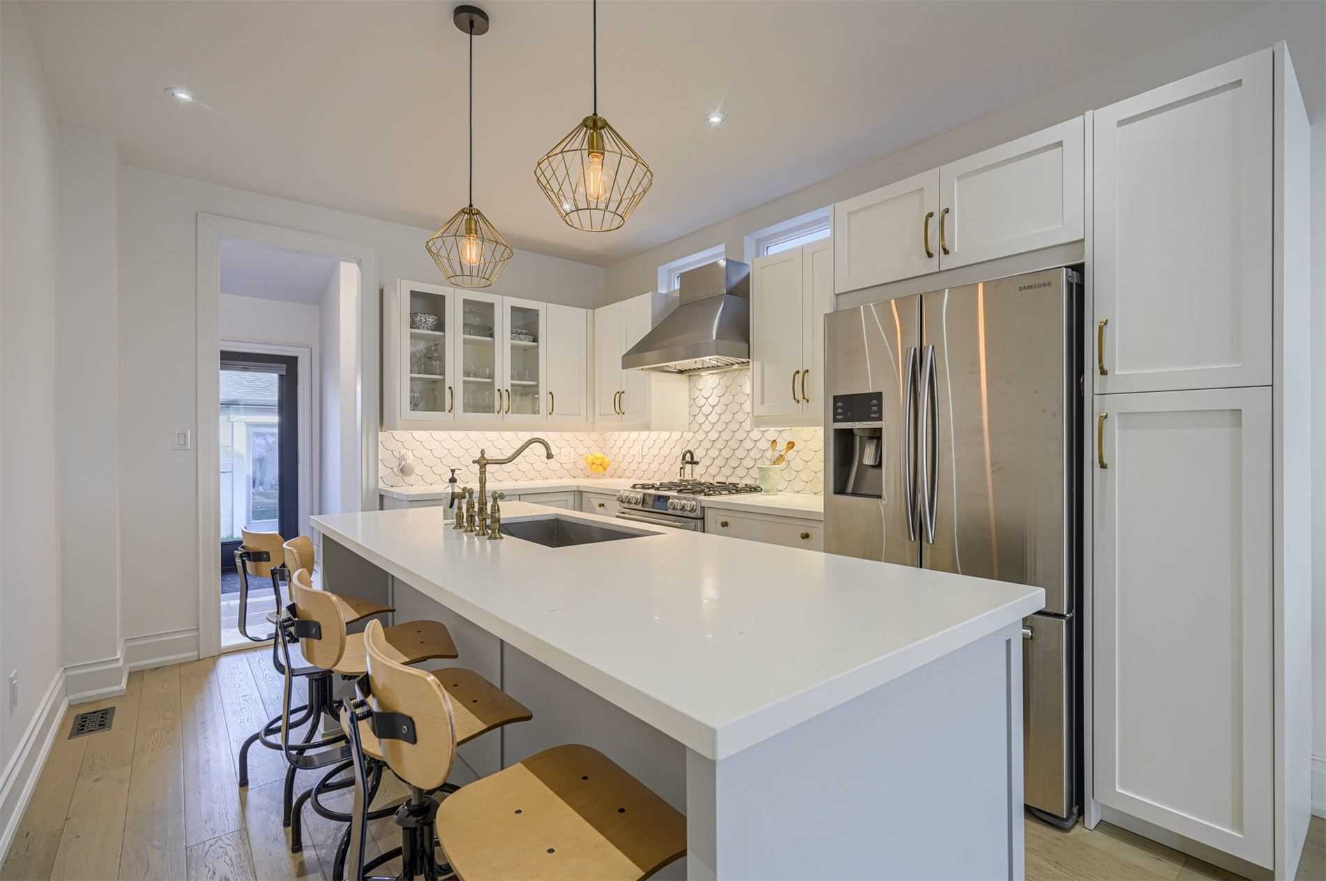 Hardwood Floor Quartz Counter Custom Backsplash
