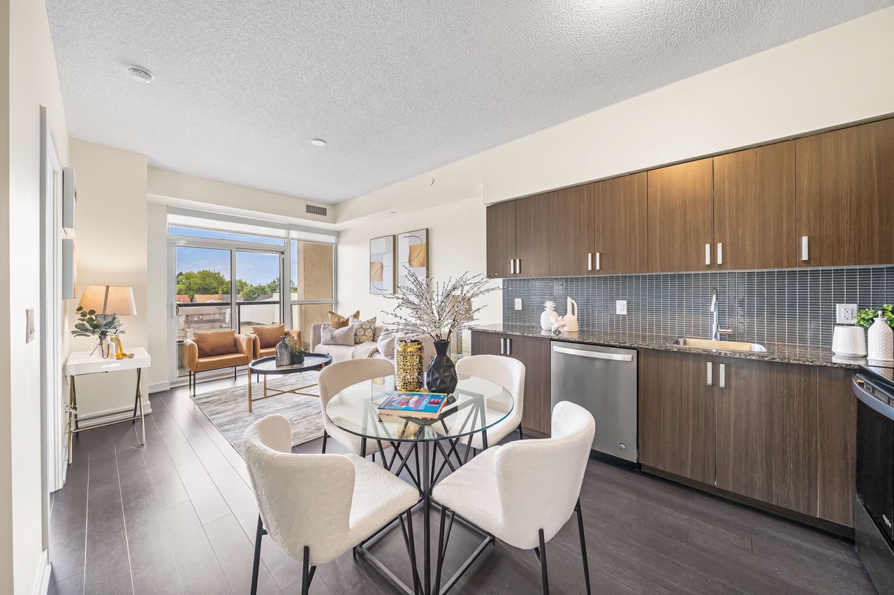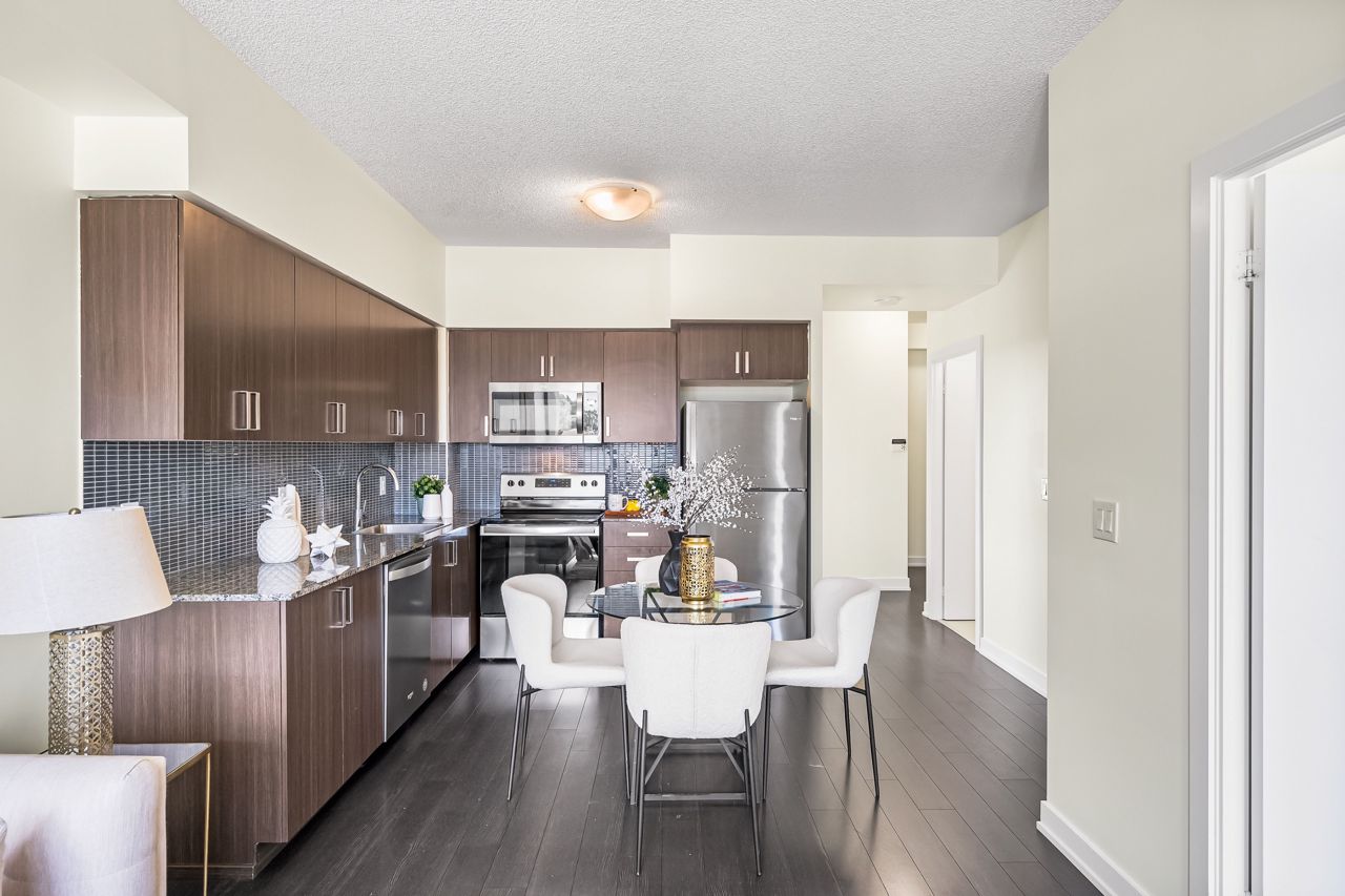 Empire Built Condo In A Prime Location! This Condo Features 2 Bedrooms, 2 Bathrooms, 9 Ft Ceilings, Luxury Kitchen With Stainless Steel Appliances, Backsplash, Modern Finishes, Private Balcony, Primary Bedroom With Ensuite. Fabulous Amenities Which Include Guest Suites, Party Room, Exercise Room, Yoga Room, Rooftop Deck, Bbq, Pet Wash, Bicycle Room. Located By Eglinton West Subway Station (8Min walk) And Oakwood LRT Station (across street). 2 min drive to 401HWY.S/S Stove, B/I S/S Microwave, S/S Fridge, S/S Dishwasher, Stacked Washer & Dryer, 1 Underground Parking, All Elfs, Window Coverings.