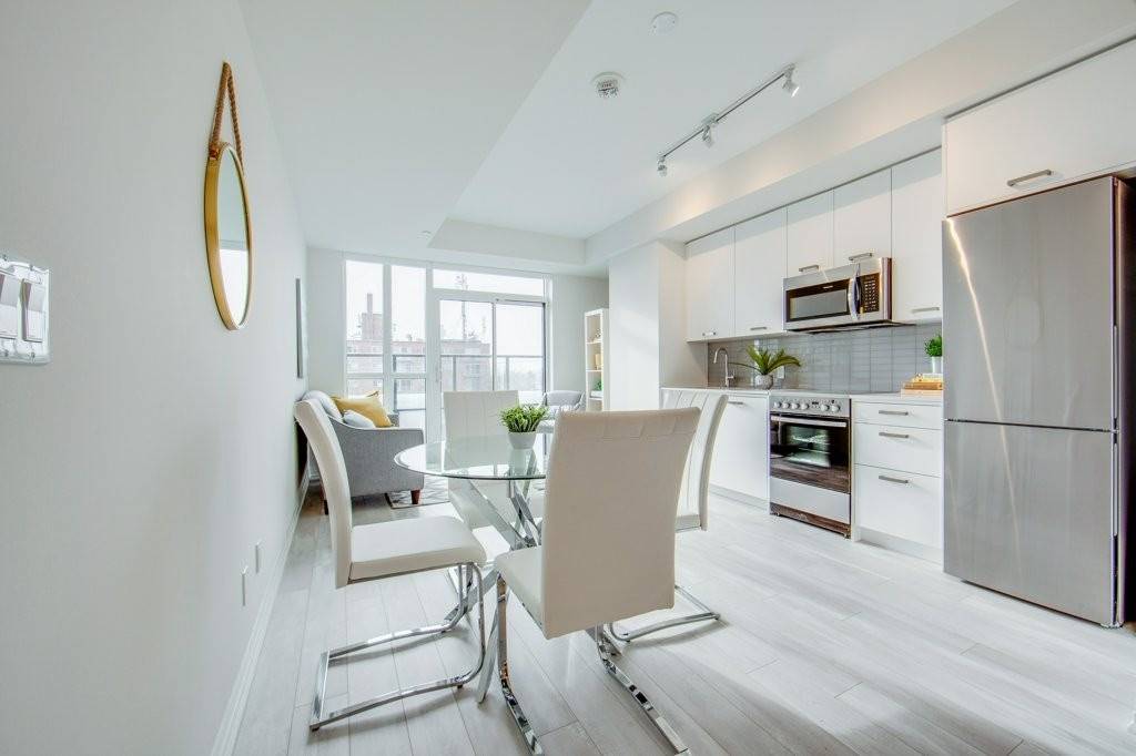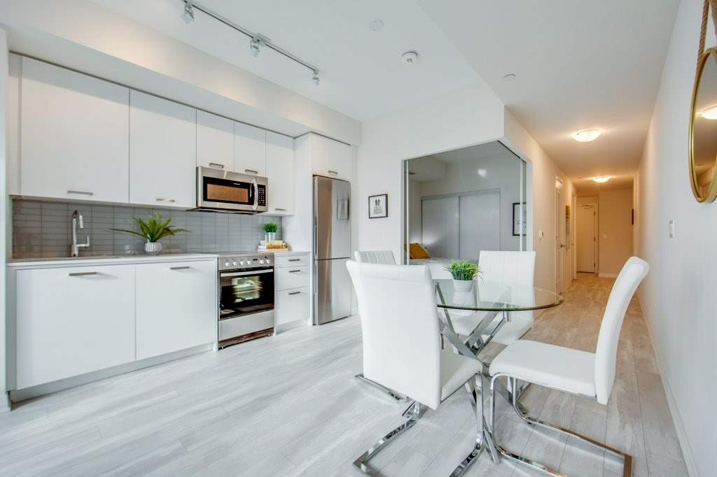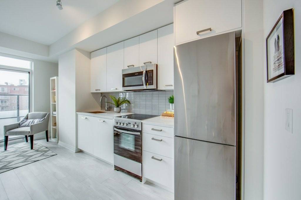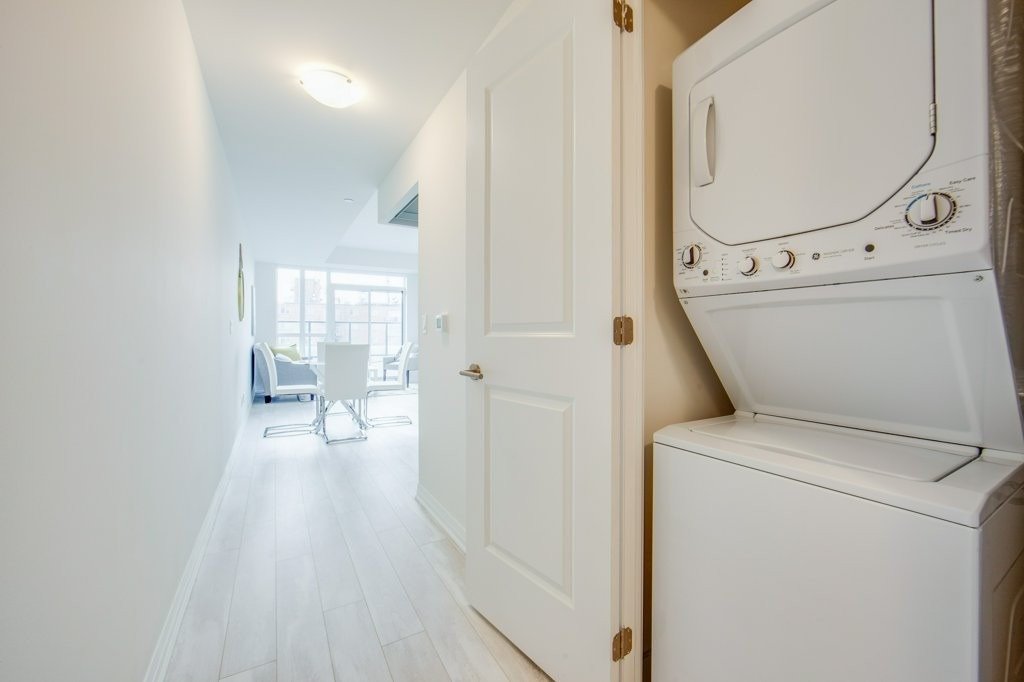 Enjoy Life In "The Beach" In This Spectacular Brand New Boutique Condo Development. With Great Southern Views Of Lake Ontario& Woodbine Park. This Well Thought Out Floorplan Offers 1 Bedroom, 1 Den, 1 Bathroom, A Locker And A Large Balcony. Enjoy Over 600 Sq. Ft Of Living Space, Along With 9Ft Ceilings To Really Enhance The Sense Of Space. Close To The Beach And All The Amenities It Has To Offer! Fabulous Rooftop Patio With Great Cityscape Views. Fridge, Stove, Dishwasher, Microwave Hood Vent, Washer, Dryer, All Electrical Light Fittings & Window Coverings. Virtually Staged.