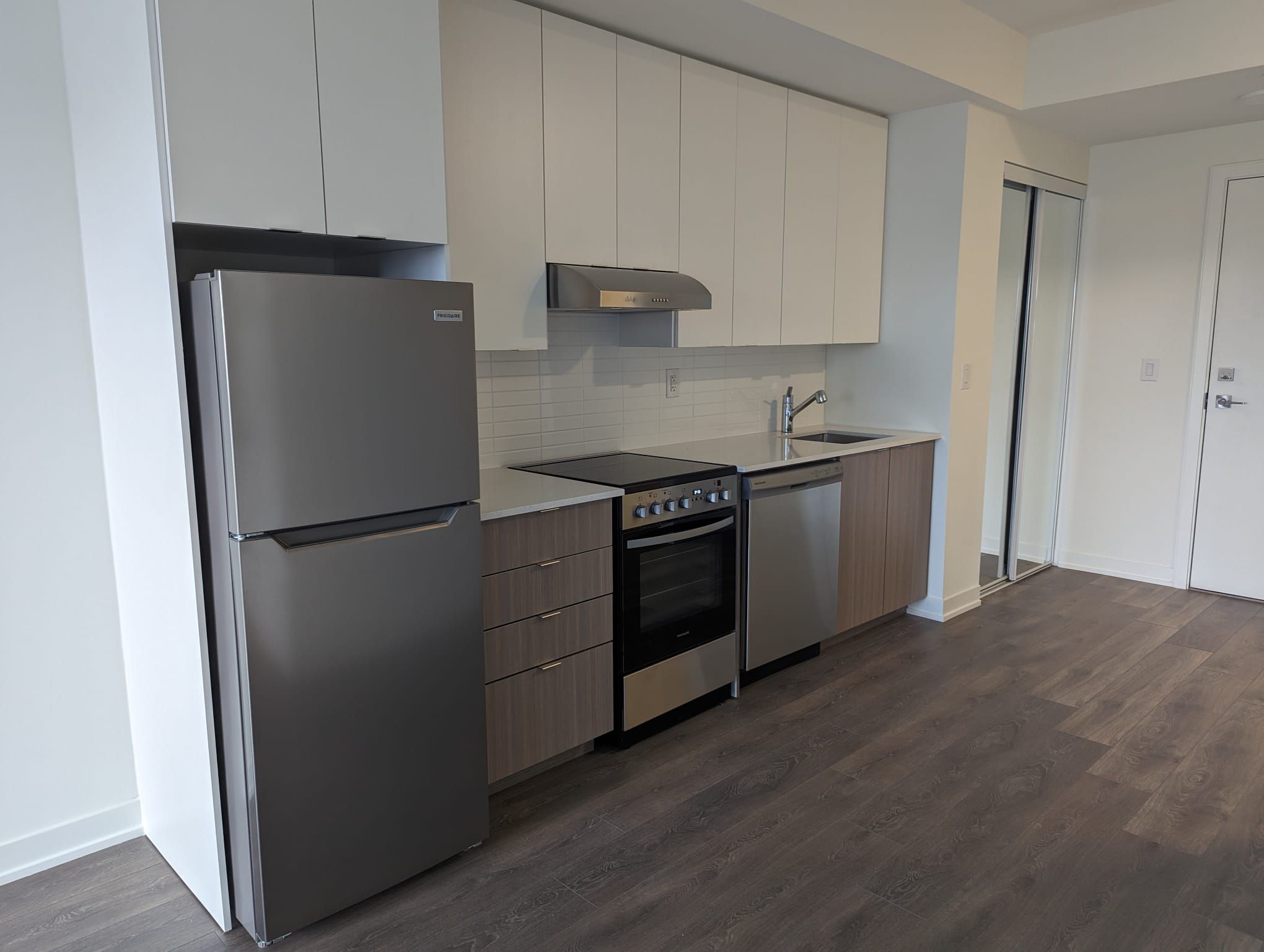 Brand New Spacious & Bright One Bedroom Plus Den Unit. Great Open Concept, Stainless Steel Appliances , kitchen cabinets, Engineered Hardwood Floor, High Ceiling and Functional Layout. Easy Access to Shopping, Restaurants & Entertainment Venues. Convenient Locations, Minutes to Eglinton LRT, TTC & Major Highways. (There is NO Parking)Stainless Fridge, Stainless Stove, Stainless Built-In Dishwasher , Washer & Dryer