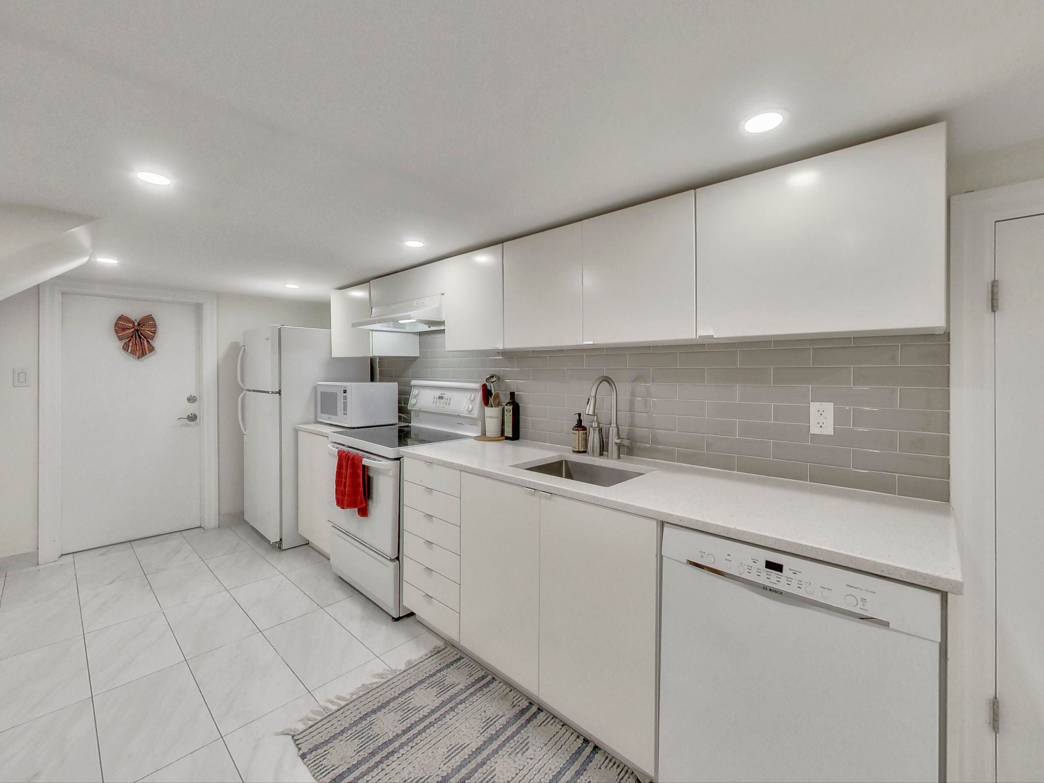 Updated 2-Bedroom + Bath Basement Apartment in Prime Corso Italia! Just steps from the vibrant Dufferin & St. Clair Intersection, approx. 774 Sq. Ft. of Modern Open-Concept Living Space with plenty of natural light form Above Ground Windows. The Contemporary White Kitchen features Quartz Countertops, Designer Backsplash, and Newer Appliances, while the upgraded spa-like bathroom includes a Glass Shower. Sleek Modern Radiators are powered by an eco-efficient gas combi system, ensuring both economical and environmentally friendly operation. Both bedrooms have windows and closet/storage areas. Walk or bike to Earlscourt Park and J.J.Piccininni Community Centre with indoor pool and outdoor ice rink. Walking distance to Toronto Public Library, St. Clair shops and restaurants - Tre Mari Bakery, Marcello's, Pizza e Pazzi, LCBO, No Frills. TTC at door, quick streetcar to St. Clair W station or short bus ride to Dufferin station.Fridge, Stove, Dishwasher; Quartz Counters, Blinds, Elfs, Individually Controlled Heating System (Gas Combi System), BBQ area, Shared Coin Laundry.