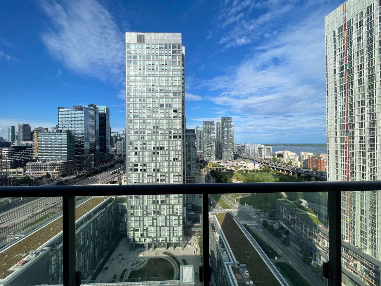 Luxury "Library Condo" 1 bedroom open concept on Higher Floor, facing east, Large Window in Bedroom and living room, Large Balcony, City & Lakeview. Spacious, Functional Layout, Stainless Steel Appliance, Close to Supermarket, Park, CN Tower, 24 hrs. Concierge.All Existing Light Fixture, Window Coverings, Fridge (2/2021), Stove, Dishwasher (10/2020), Washer & Dryer (7/2020).