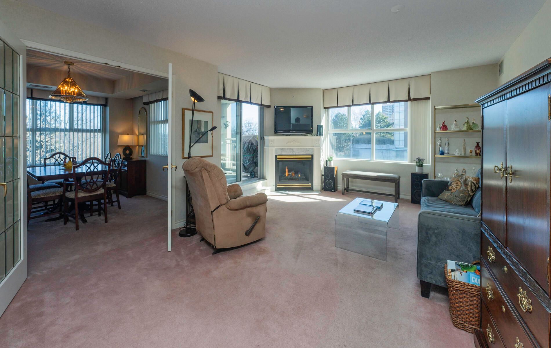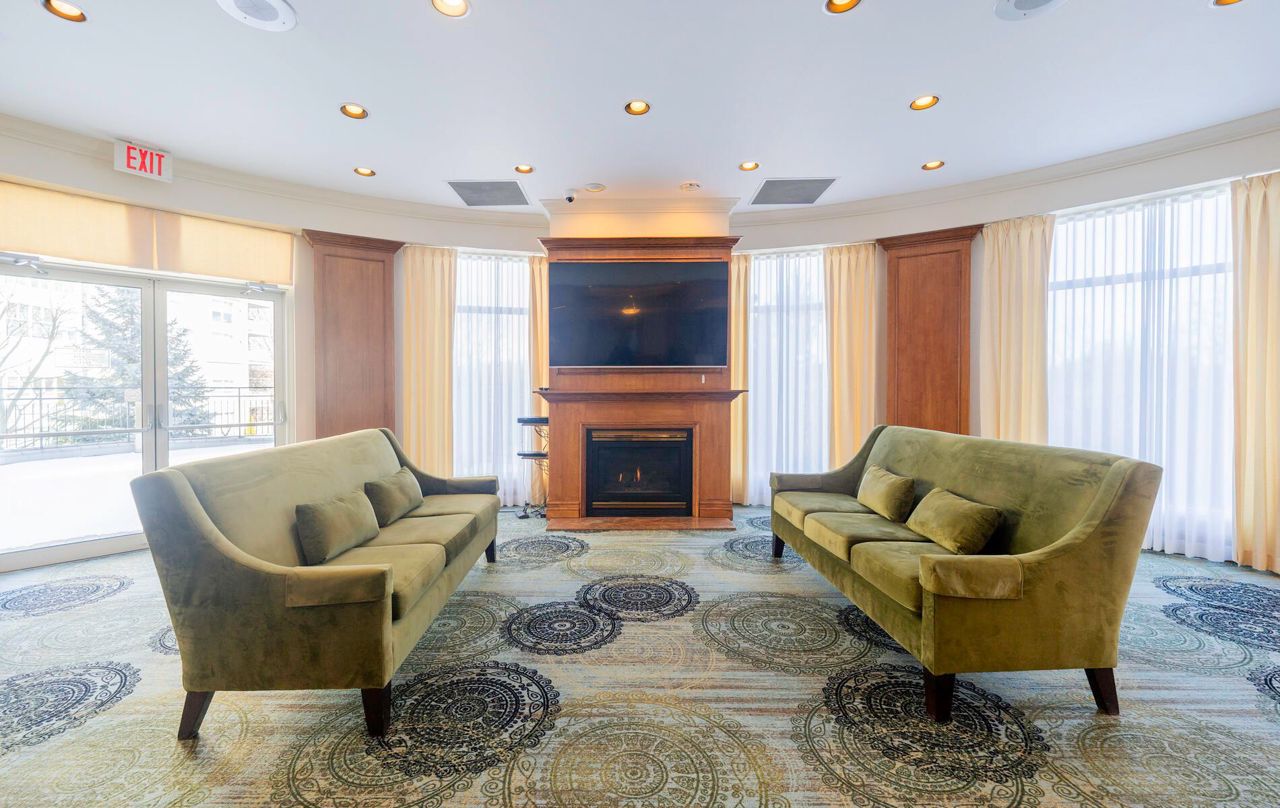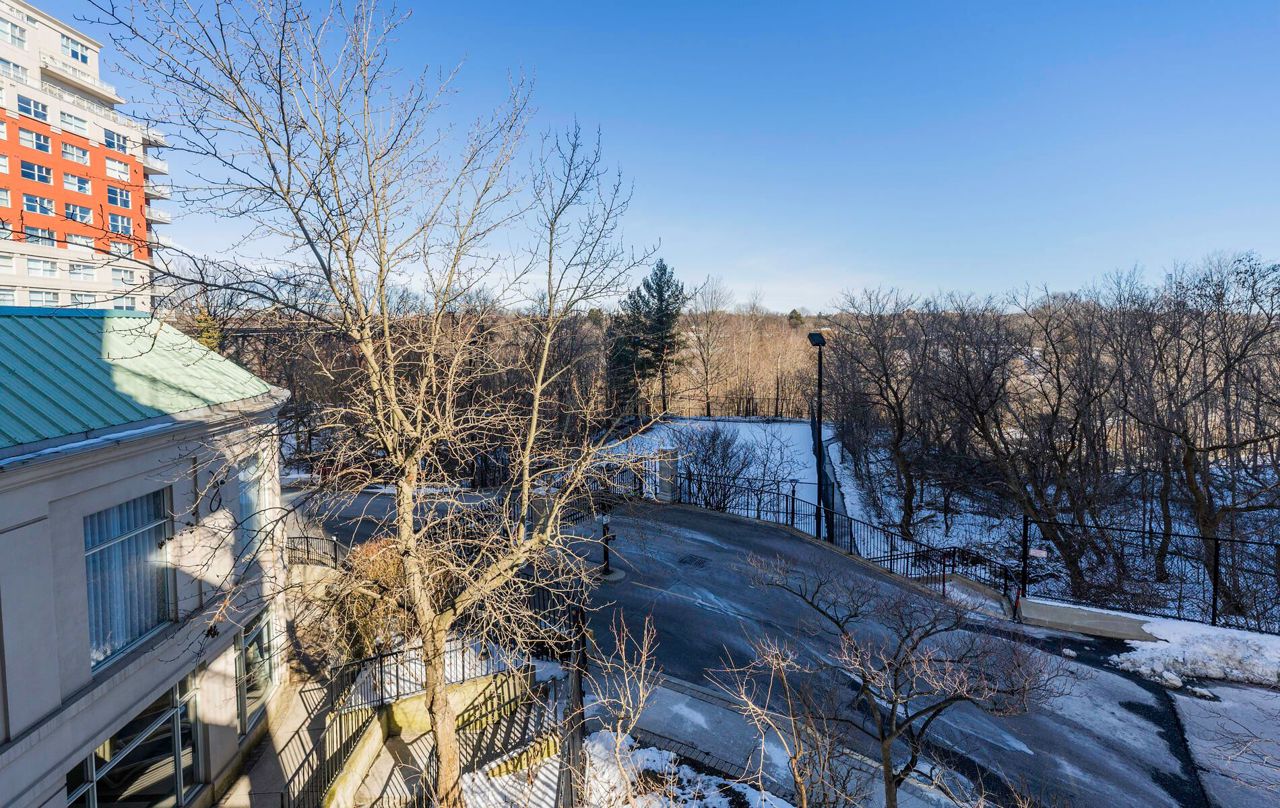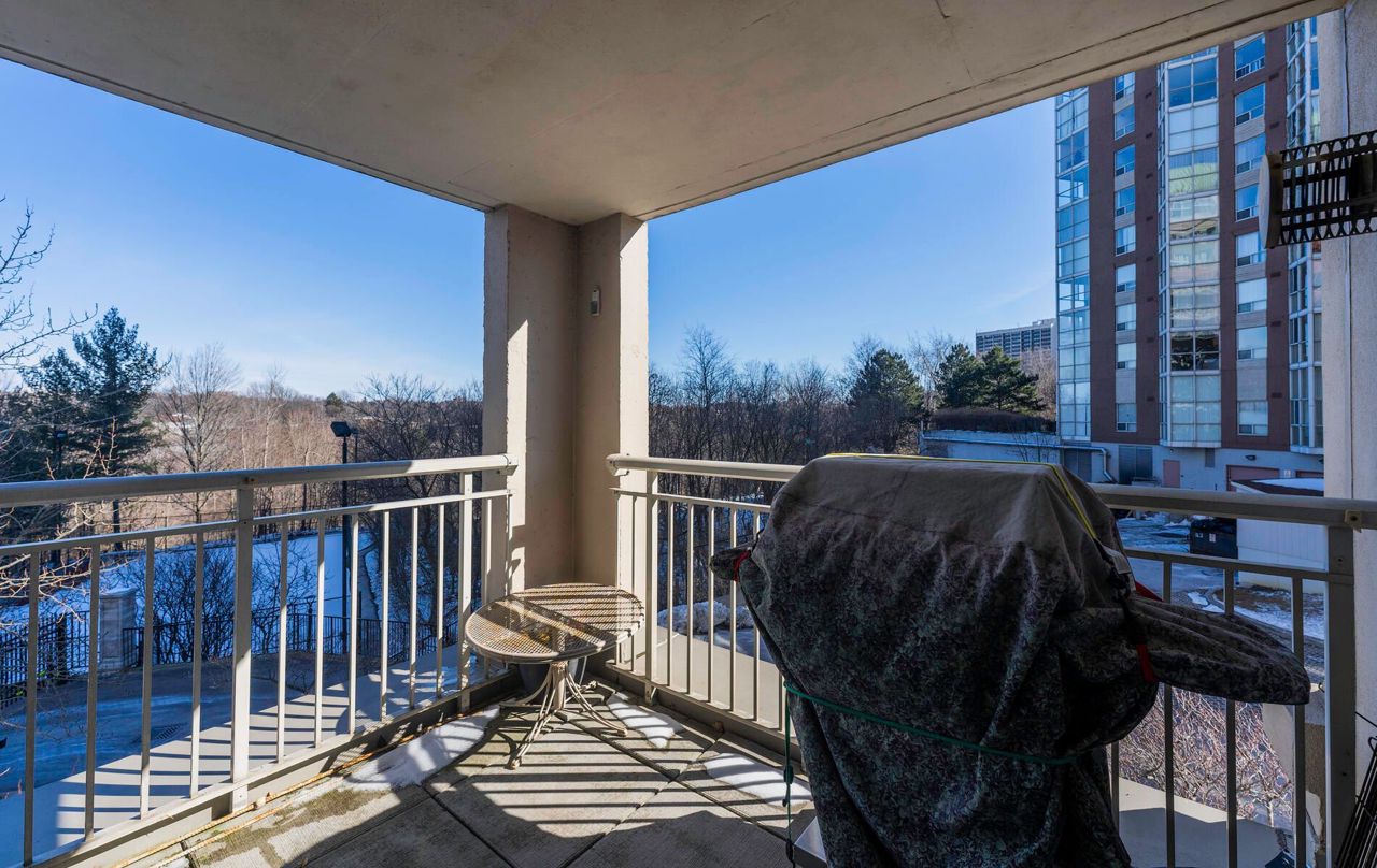 "The Courtyards" Luxury & location in the heart of Don Mills. Light filled corner suite approx. 1,550 sq. ft., Uniquely located in a quiet separate corridor with ONLY 6 suites * Parking is on same level as suite & steps into building **no need for elevator** Large kitchen is combined with den & overlooks ravine. Living room has cozy gas fireplace & walk out to balcony with a gas bbq! French doors open to dining room/or office. Primary bedroom fits a king bed! Large 2nd bedroom has double closet. Laundry/Utility Room. 2 heat pumps with individual climate controls to turn heat or A/C on/off at anytime. 60 gallon hot water tank. Spa-Like Amenities: Saline pool & whirlpool, gym, party room, billiards, friendly 24 Hour concierge, guest suite, visitor parking. Residents 9th floor rooftop terrace. Tennis court, car wash bay, bike room, garden plots & potting room. Close to Shops At Don Mills, Aga Khan Centre, & Super Centre. Ttc @ Door (Rush Hour X-Press Bus To Dt). Welcome Home!PARKING spot is located 3 spots from building entrance & near mail room & concierge! Unit 1-52. Locker is on UC (Upper Courtyard) level, locker #66. Pet friendly -1 dog & 1 cat max per suite + fenced dog run area.