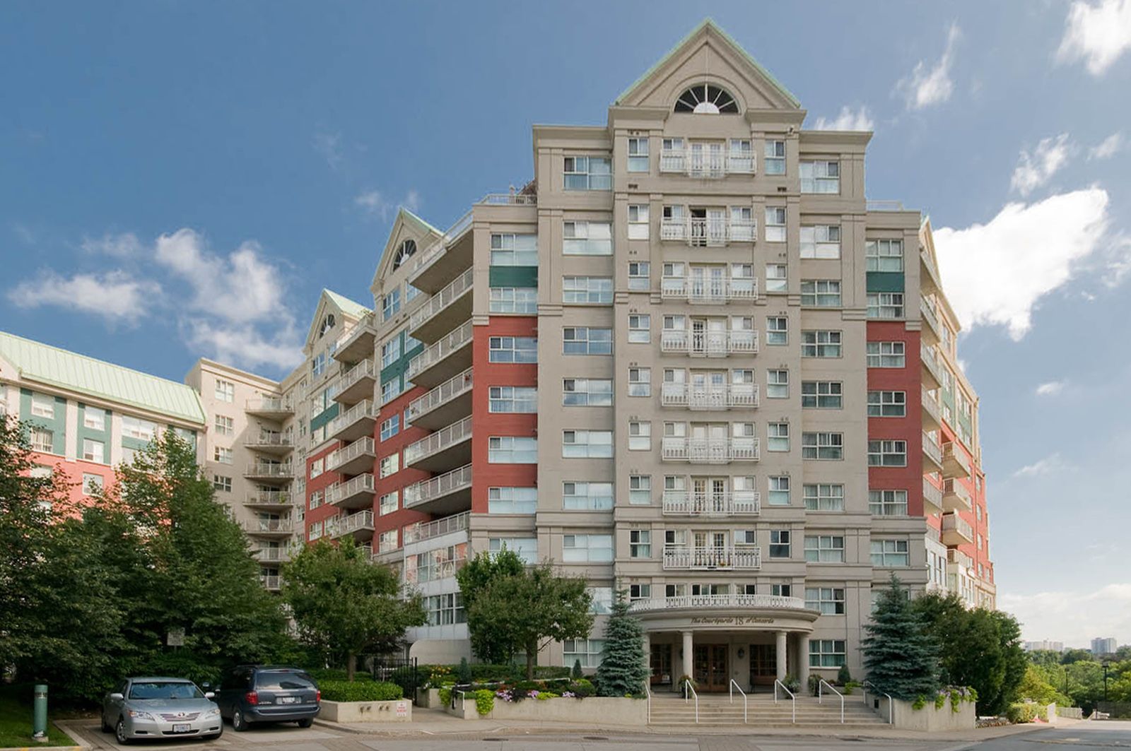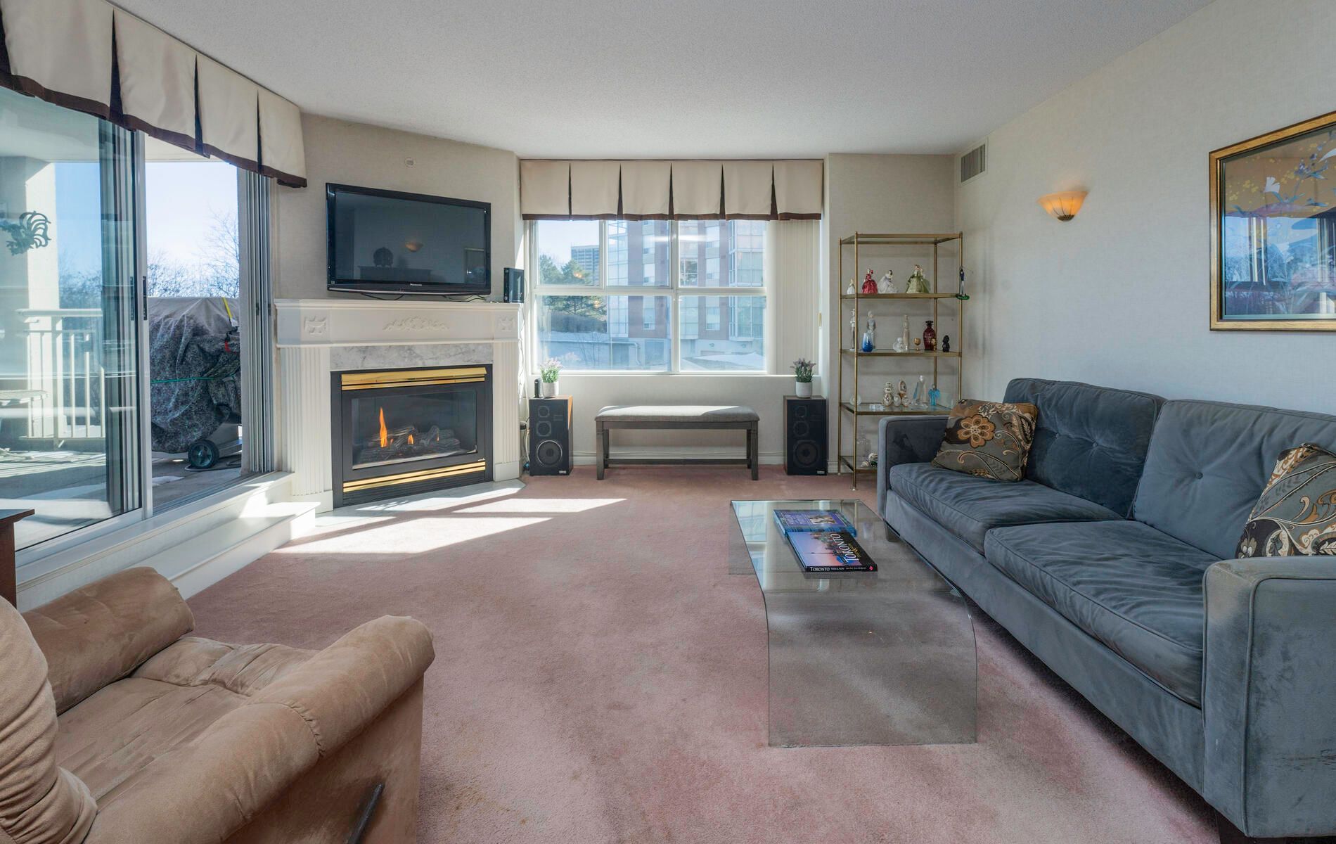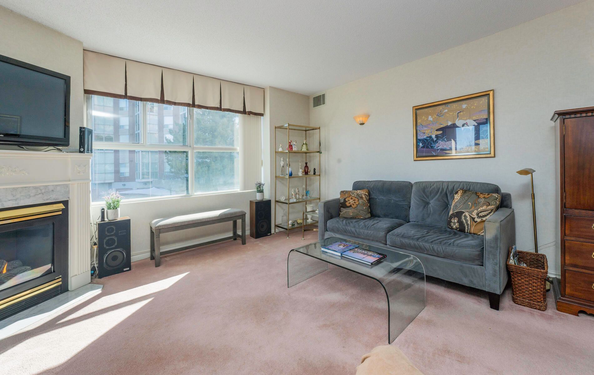 "The Courtyards" Luxury & location in the heart of Don Mills. Light filled corner suite approx. 1,550 sq. ft., Uniquely located in a quiet separate corridor with ONLY 6 suites * Parking is on same level as suite & steps into building **no need for elevator** Large kitchen is combined with den & overlooks ravine. Living room has cozy gas fireplace & walk out to balcony with a gas bbq! French doors open to dining room/or office. Primary bedroom fits a king bed! Large 2nd bedroom has double closet. Laundry/Utility Room. 2 heat pumps with individual climate controls to turn heat or A/C on/off at anytime. 60 gallon hot water tank. Spa-Like Amenities: Saline pool & whirlpool, gym, party room, billiards, friendly 24 Hour concierge, guest suite, visitor parking. Residents 9th floor rooftop terrace. Tennis court, car wash bay, bike room, garden plots & potting room. Close to Shops At Don Mills, Aga Khan Centre, & Super Centre. Ttc @ Door (Rush Hour X-Press Bus To Dt). Welcome Home!PARKING spot is located 3 spots from building entrance & near mail room & concierge! Unit 1-52. Locker is on UC (Upper Courtyard) level, locker #66. Pet friendly -1 dog & 1 cat max per suite + fenced dog run area.
