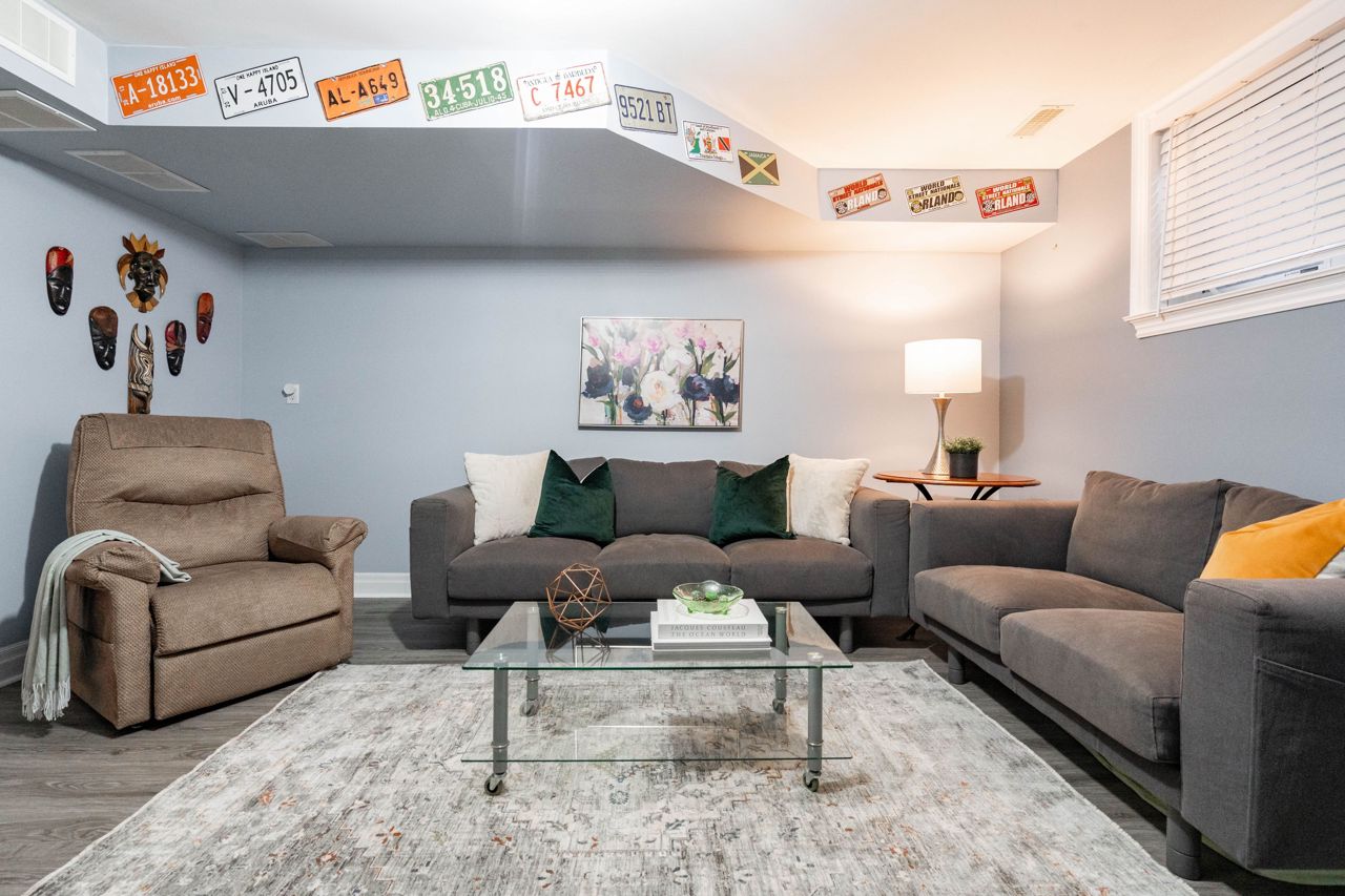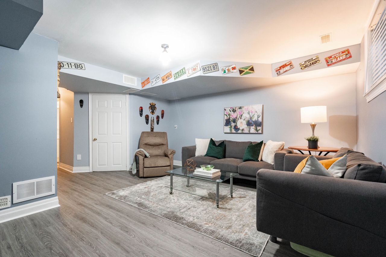 地下室设有独立入口,非常适合用作老人房或地下室公寓。它包括一间客厅、一间额外的卧室、一间四件套浴室和厨房的预留空间,为各种居住安排提供了灵活性。还有一个地窖,可用于额外储物或作为酒窖。