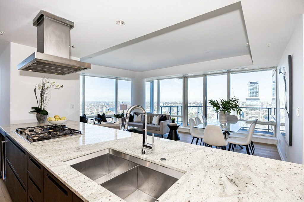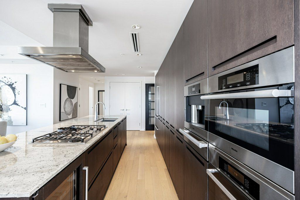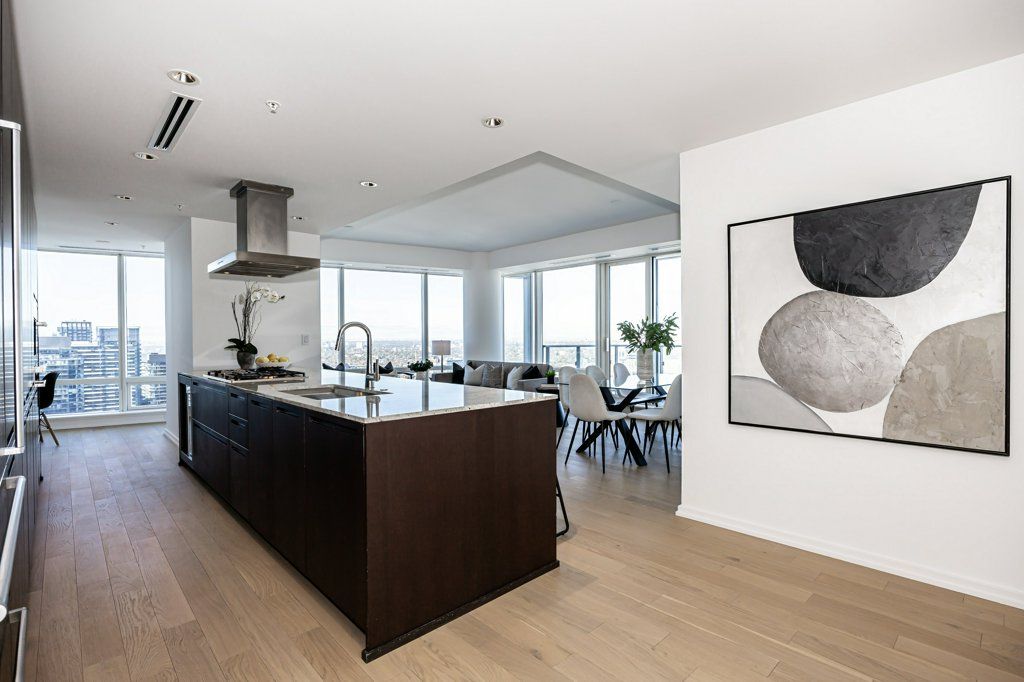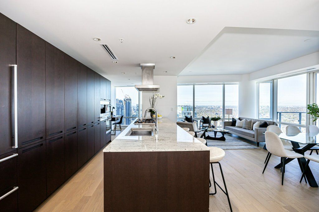A most beautiful corner suite. Surrounded by floor to-ceiling glass walls, panoramic views South, West and North are breath-taking from this 46th floor. Superbly upgraded, recent upgrades include engineered light oak hardwood flooring, new décor with improvements to cabinetry and washrooms. Top of the line Miele appliances compliment the Italian Boffi Kitchen. Note the separate Family Room/Den can easily be a Third Bedroom! This is a very special floor plan. The Shangri-La offers outstanding amenities and hotel conveniences. Enjoy a quiet world only steps from the vibrancy of some of the finest restaurants and entertainment venues, business towers, hospitals and schools. All transportation routes are at your valet assisted doorstep!