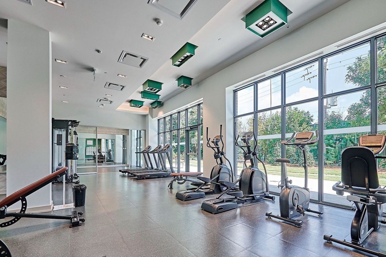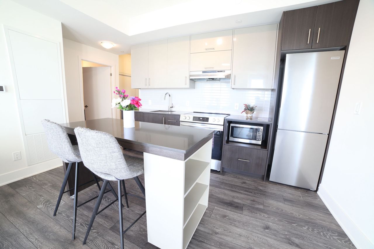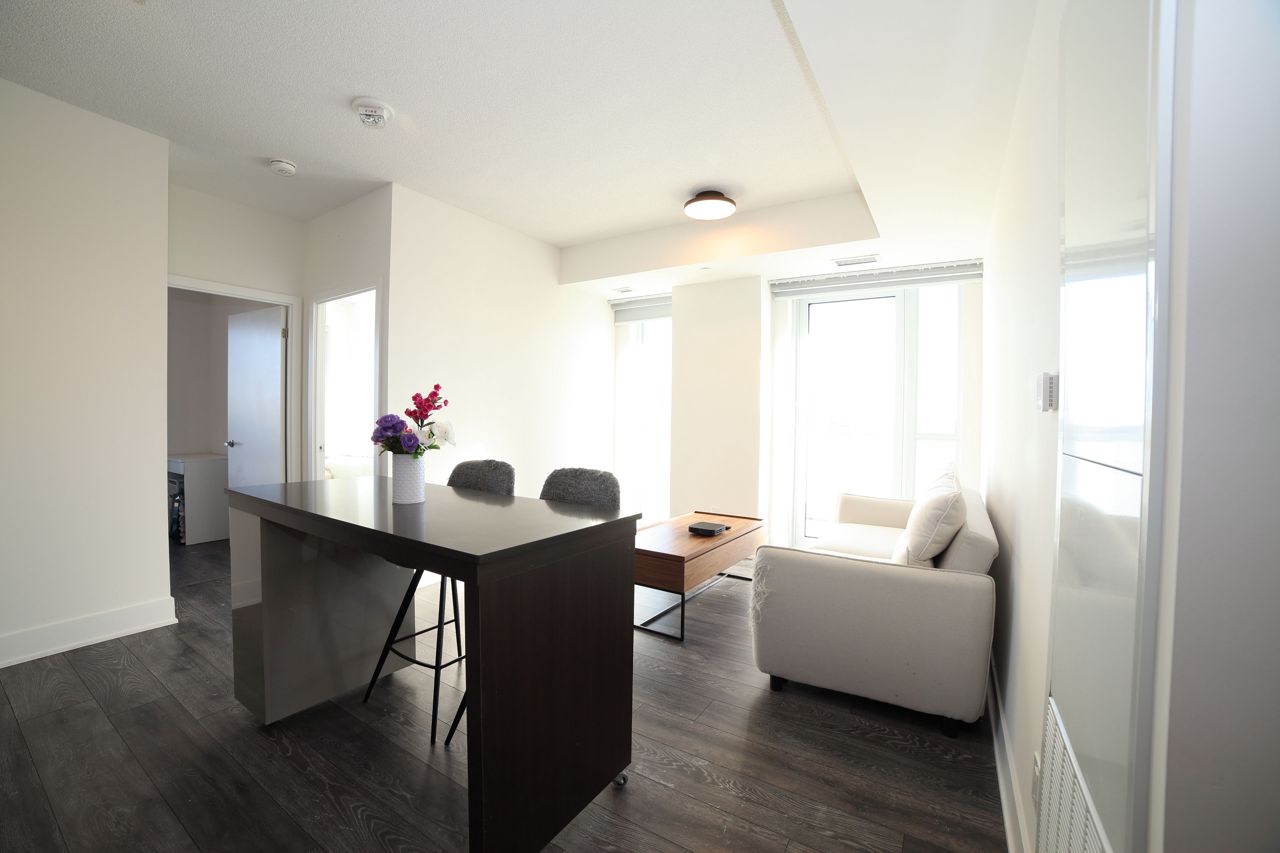 位于Verde Condo的一居室两卧单元,房龄仅一年!拥有无遮挡的东南向景观,配备两个独立阳台,阳光充足,层高9英尺,全屋铺设复合地板,厨房采用现代开放式设计。社区设施丰富,包括健身房、乒乓球室、屋顶露台、烧烤区以及24小时礼宾服务。步行即可到达Don Mills地铁站、Fairview购物中心、餐厅、银行、图书馆和学校,几分钟车程即可抵达404和401高速公路。