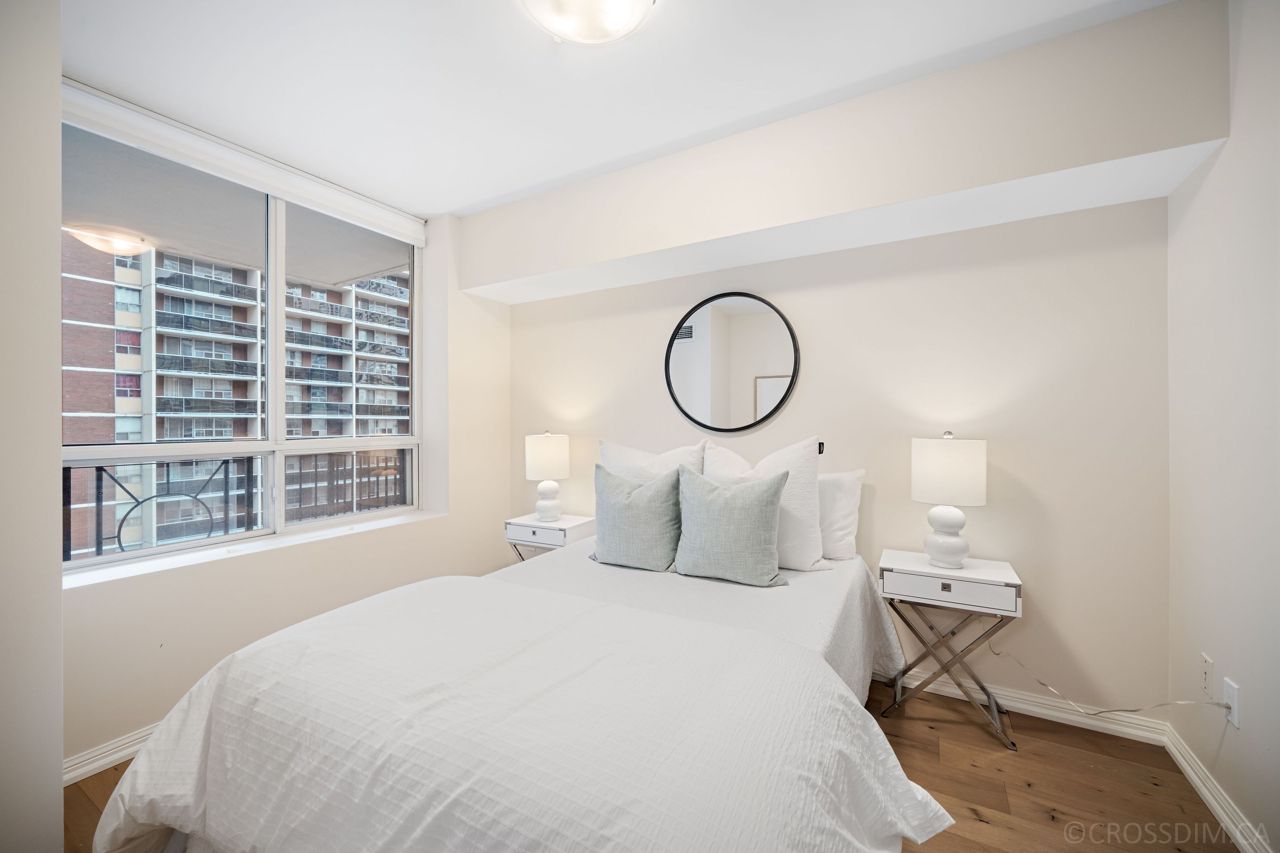 Amazing Low-Rise Building Features a ** Newly Renovated ** 1+1 2 Washroom Suite with Parking & Locker. This Fully Renovated Suite has Beautiful Engineered Hardwood Floors and Freshly Painted throughout With New Tiling in the Bathrooms & Laundry. As Well As This Unit Offers; New Vanities & Walk-in Shower Stall In the Primary Ensuite. Custom finishes throughout; Closets, Kitchen Cupboards. Updated Electrical, Light fixtures & Switches. The Den has a door for privacy with versatile use of space to use as a Bedroom or Office. Perfect Work From Home Office! New Frigidaire Kitchen Appliances, Frigidaire Washer & Dryer, Kohler Toilets, Moen Faucets. New Quartz Countertops with Under-Mount Lighting Under Cupboards and New Blinds Installed Giving Lots Of Light and Privacy When Needed. Enjoy The Evening Sitting On Your Private Balcony. Minutes From Yonge & Eglinton For Fine Dining, Shops, Public Transportation, Parks And Much More. Rare Find With Parking! This is a Must See!Frigidaire Fridge & Stove, Dishwasher, Microwave, Frigidaire Washer & Dryer, All New Appliances (December 2023 Aprx), All Light Fixtures, All Window Coverings, Bicycle Rack