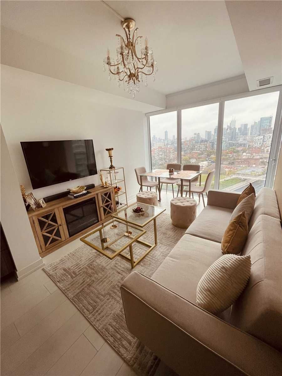 Welcome To Zen Condos! This Brand New Luxury Building Is One Of The Best In Liberty! Bright Eastern Exposure Featuring City/Water Views. Some Of The Best Amenities In The City Including 3000 Sqft Spa Facilities- Steam Room, Plung Pools, Treatment Rooms, Lounge Pool, 5000 Sqft Gym Space & 200M Olympic Sky Track. This Stylish And Functional 1 Bedroom Layout Has No Wasted Space. Sleek European Style Kitchen With B/I Appliances. Generous Bath W/ Deep Soaking Tub.Existing Fridge, Stove, Dishwasher, Microwave, Washer And Dryer. All Elf's, All Existing Blinds. Internet Included!! Steps To The Waterfront, Fort York, King West, Trinity Bellwoods, Streetcars, Metro, Lcbo, Restaurants, Exhibition & More!
